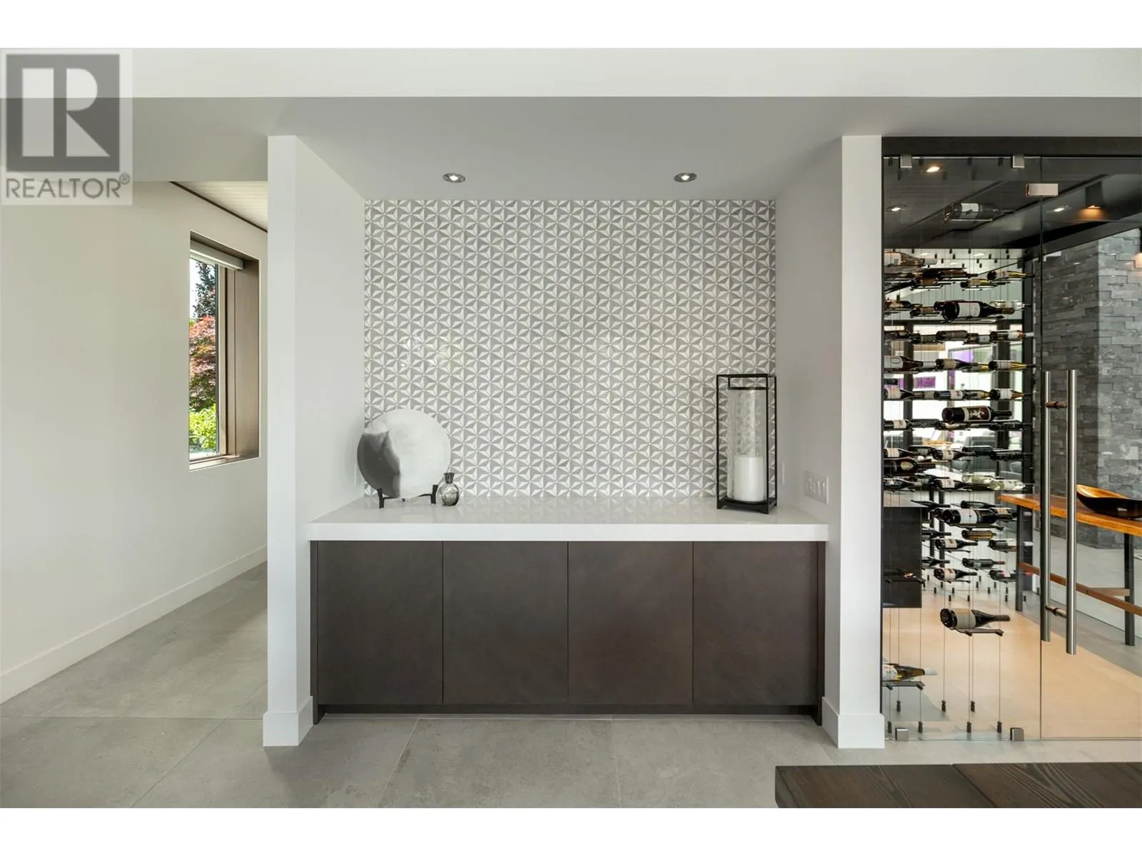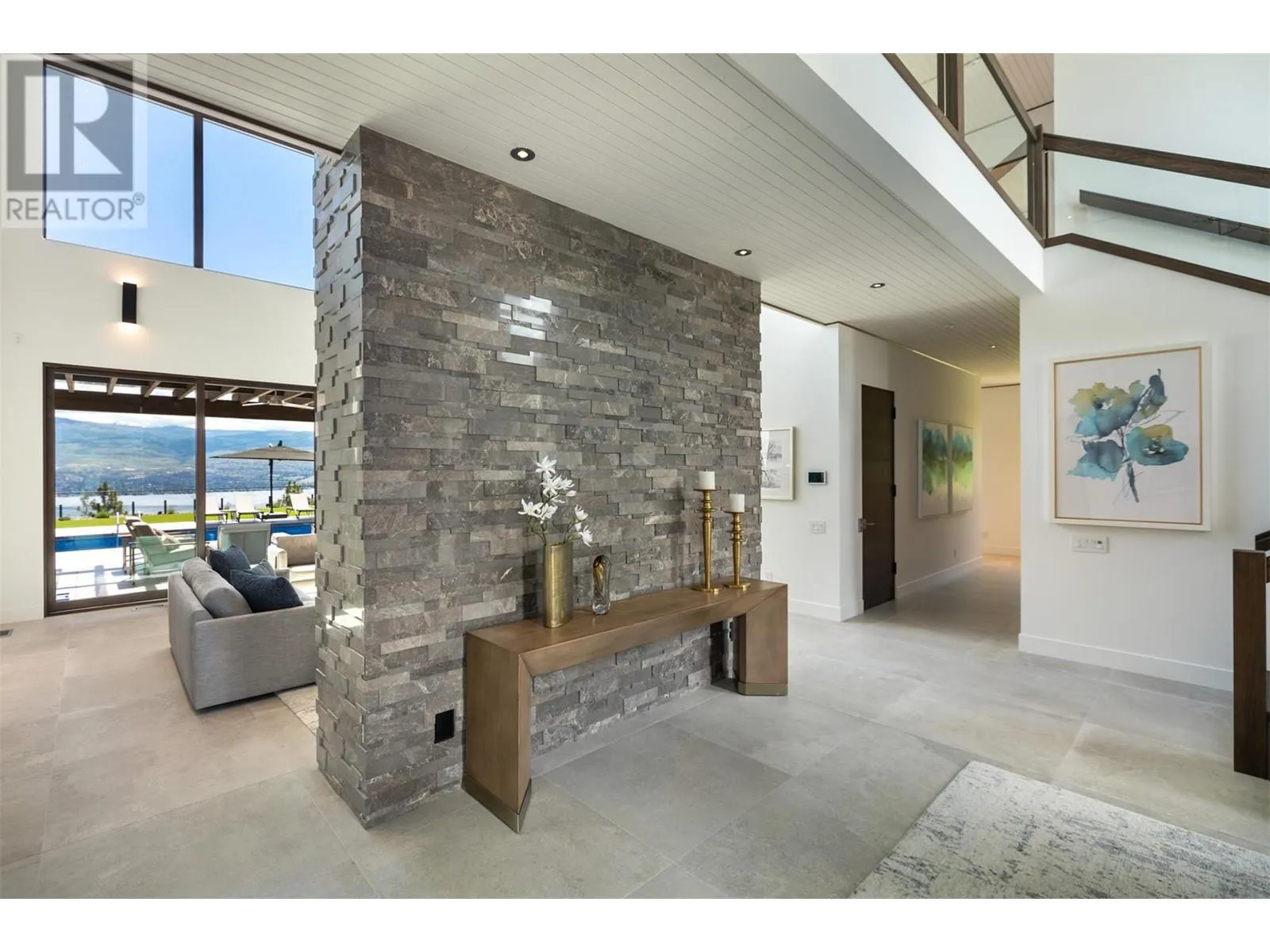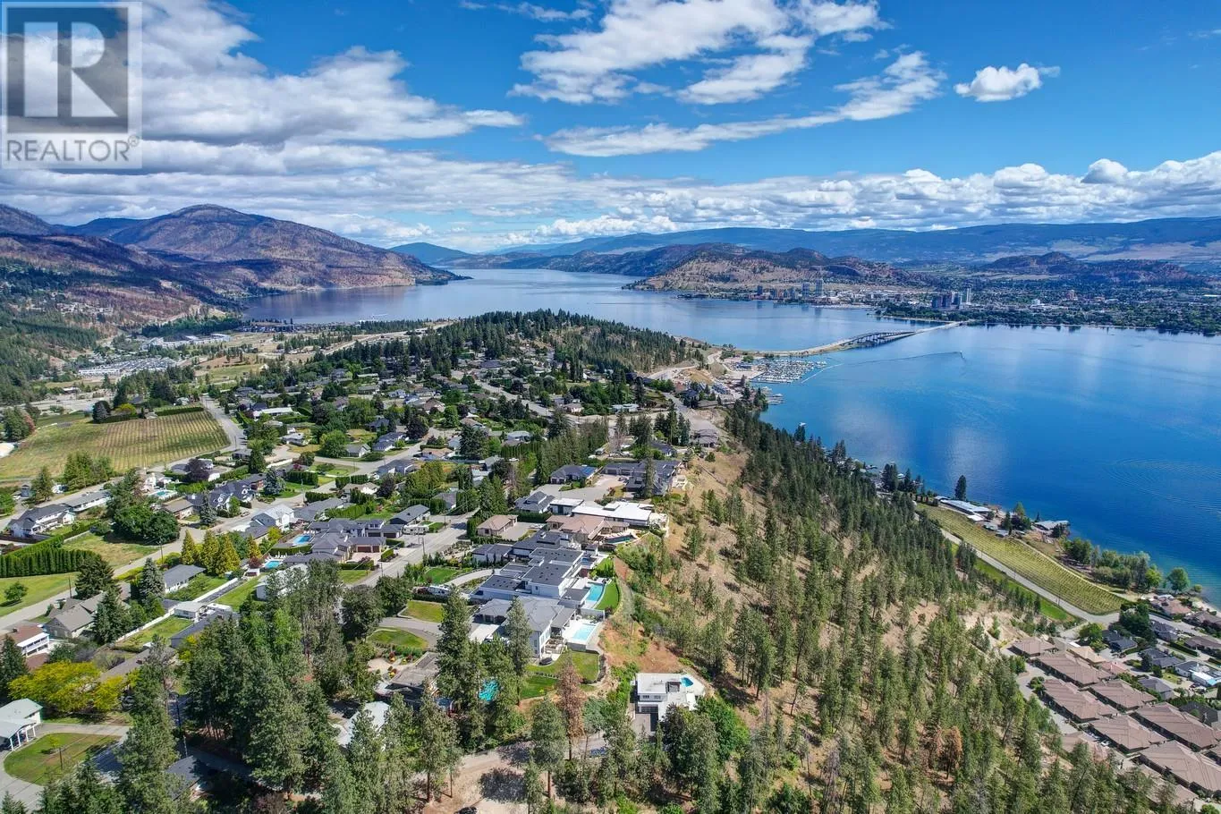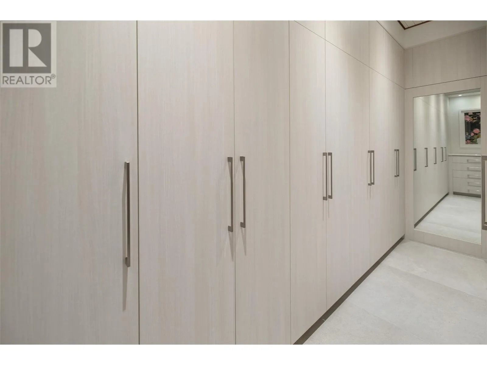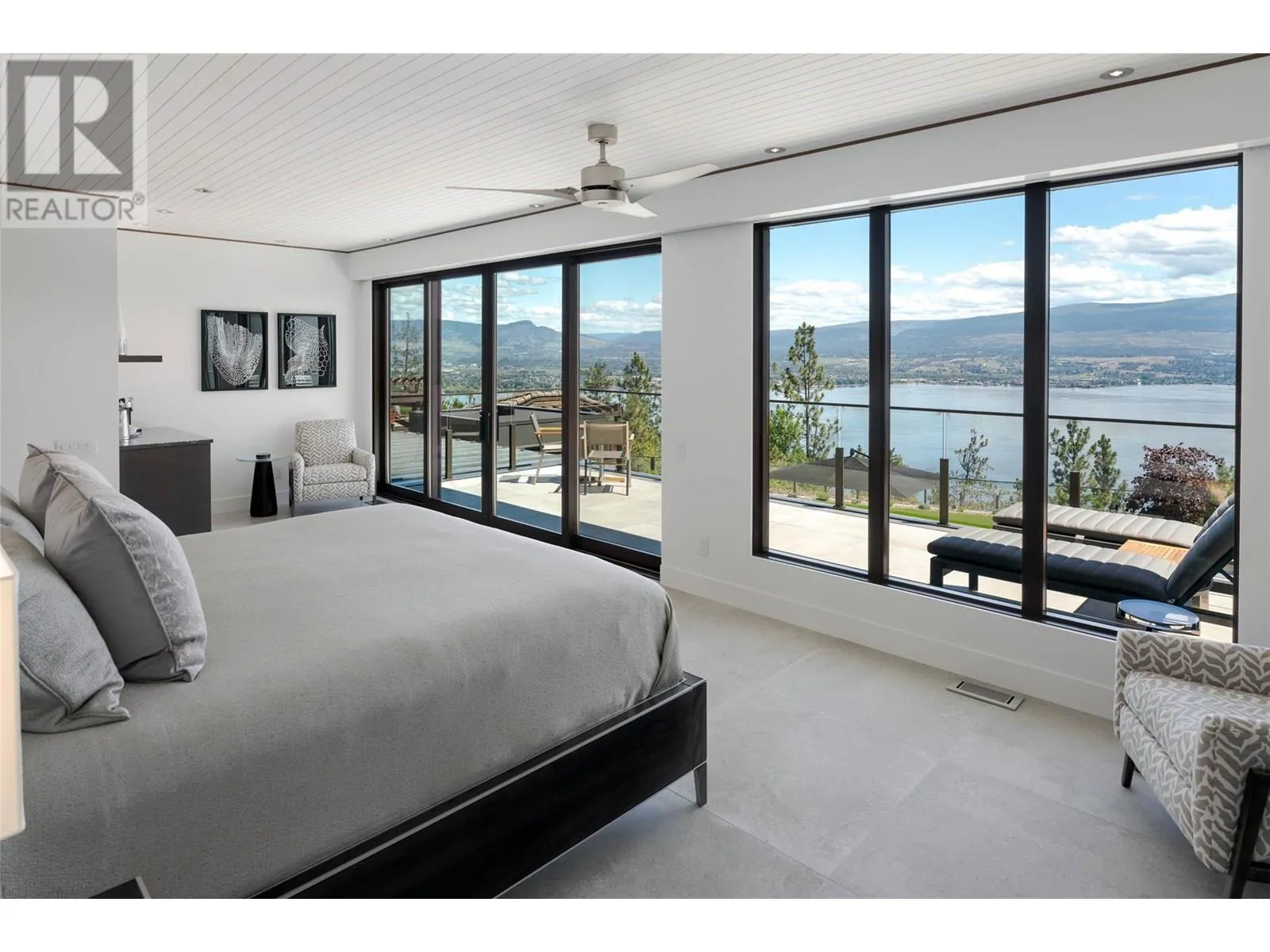 Custom SanMarc home on desirable Thacker Drive in Lakeview Heights. This property boasts exceptional attention to detail that is sure to impress. Expertly designed, it offers a remarkable layout inside & out for everyday living while maintaining its allure as a modern masterpiece.From nearly every room & the backyard, enjoy expansive, unobstructed Okanagan Lake views. A solid wood 12-ft pivot door welcomes you to the foyer with a 20-ft marble tiled entry wall leading to the catwalk on the 2nd level, connecting the 2 wings of the home. The great room boasts 23-foot ceilings, floor-to-ceiling windows, & an 80-inch linear gas fireplace. Gourmet kitchen w/ Carolyn Walsh-designed cabinetry, waterfall island, professional appliances & a window that fully retracts, creating a passthrough to the outdoor kitchen. Glass-enclosed 75+ bottle temperature-controlled wine room. Sliding doors on the main level open to a remarkable outdoor retreat: saltwater pool with auto cover, synthetic lawn, Jacuzzi hot tub, outdoor kitchen, $12K sound system, covered patio w/ glass ceiling. Luxurious main floor primary w/ pool access, spa-inspired 5-piece en suite with views of the lake, heated floors, custom closet, and a linear gas fireplace. Main floor living with elevator that accesses all three floors. Upstairs offers 4 large beds, all with en suites, and 2 featuring private lake view patios. Laundry on both levels. Oversized 3-car garage with built-ins, custom cabinetry, and prewired for EV. (id:27476)