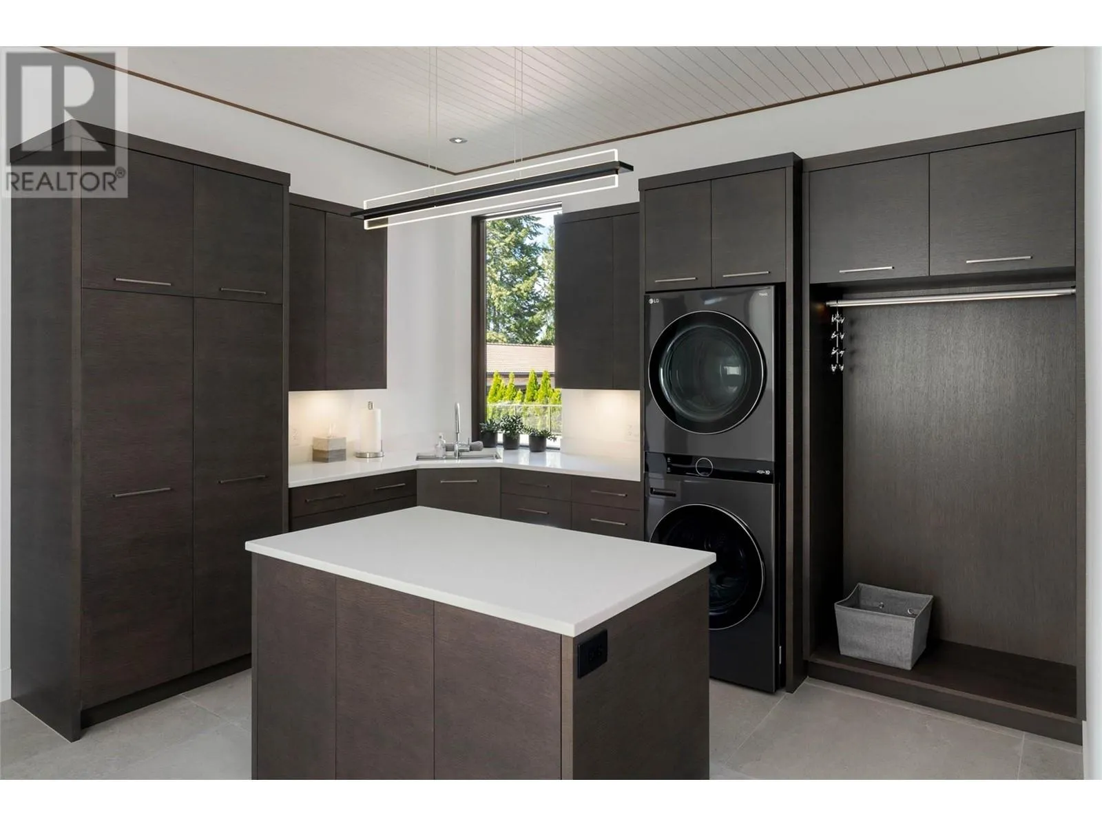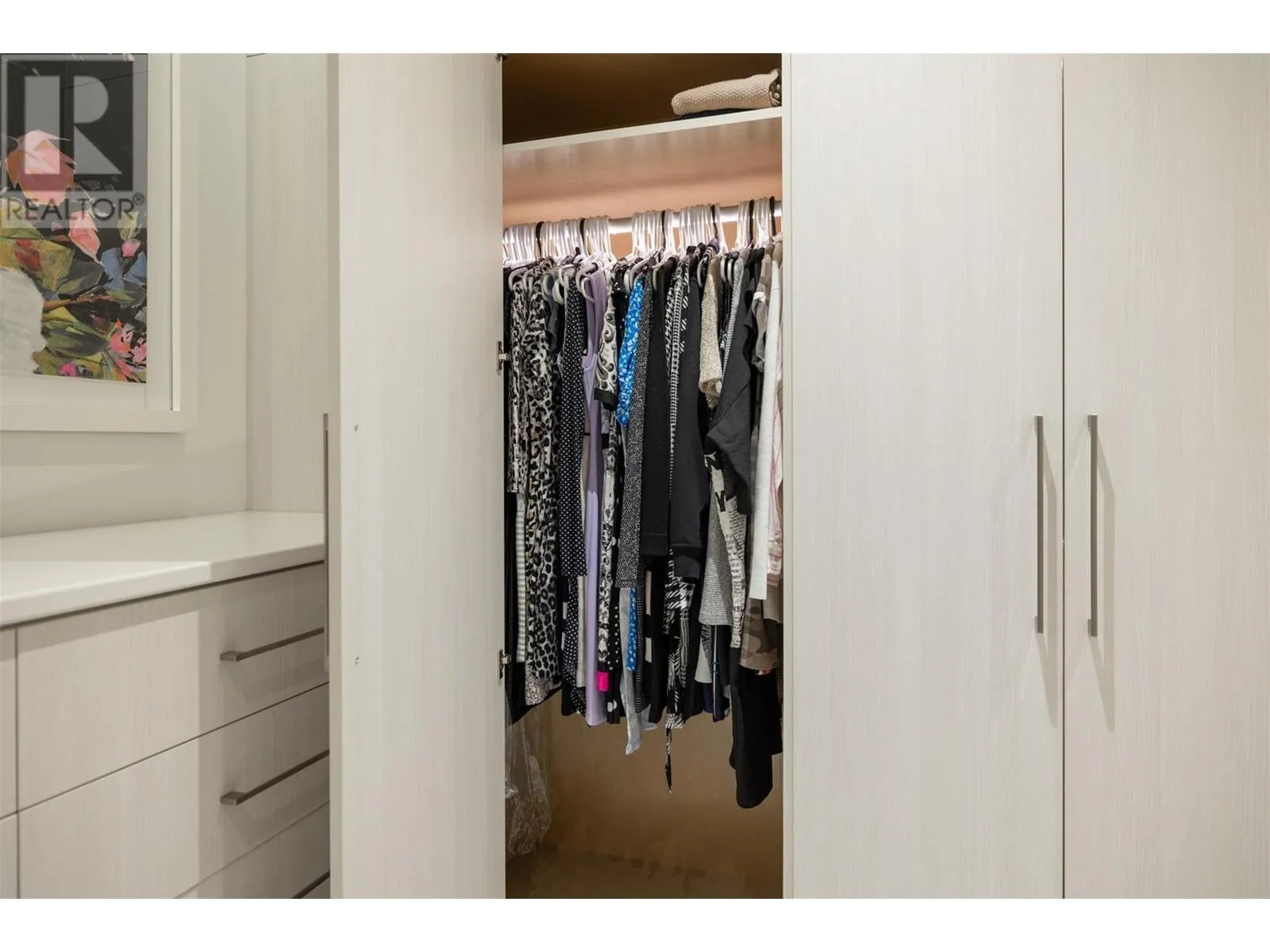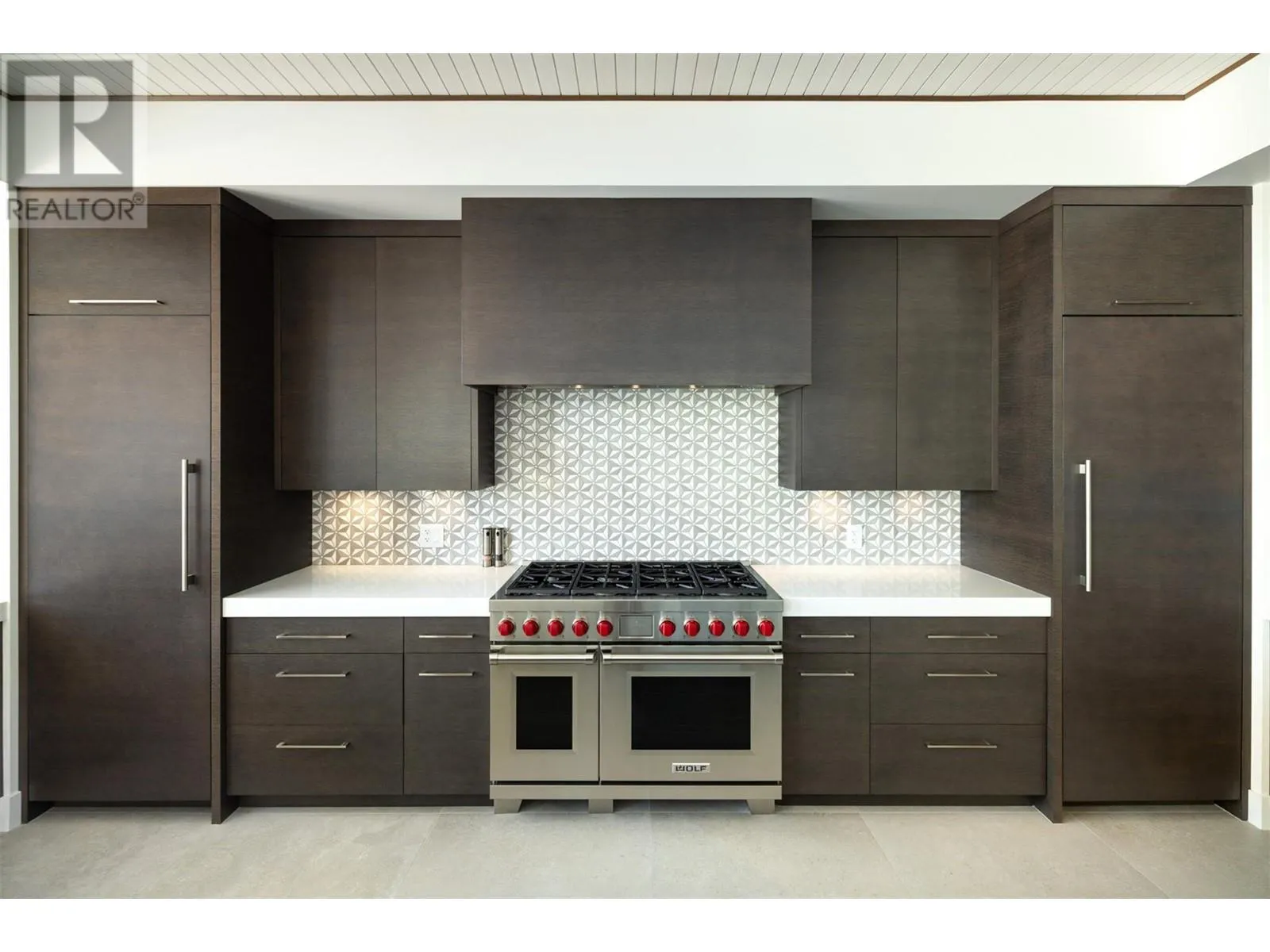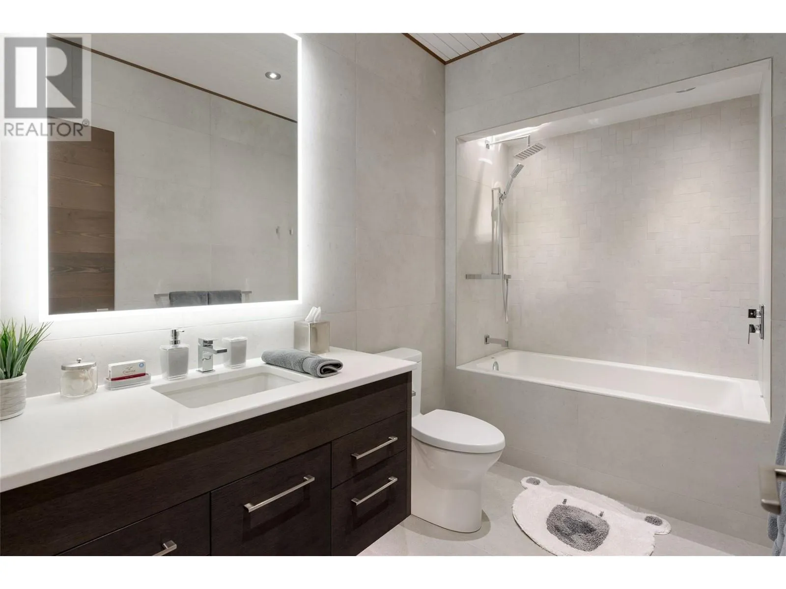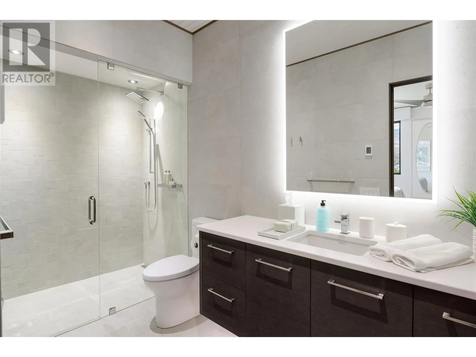 Custom SanMarc home on desirable Thacker Drive in Lakeview Heights. This property boasts exceptional attention to detail that is sure to impress. Expertly designed, it offers a remarkable layout inside & out for everyday living while maintaining its allure as a modern masterpiece.From nearly every room & the backyard, enjoy expansive, unobstructed Okanagan Lake views. A solid wood 12-ft pivot door welcomes you to the foyer with a 20-ft marble tiled entry wall leading to the catwalk on the 2nd level, connecting the 2 wings of the home. The great room boasts 23-foot ceilings, floor-to-ceiling windows, & an 80-inch linear gas fireplace. Gourmet kitchen w/ Carolyn Walsh-designed cabinetry, waterfall island, professional appliances & a window that fully retracts, creating a passthrough to the outdoor kitchen. Glass-enclosed 75+ bottle temperature-controlled wine room. Sliding doors on the main level open to a remarkable outdoor retreat: saltwater pool with auto cover, synthetic lawn, Jacuzzi hot tub, outdoor kitchen, $12K sound system, covered patio w/ glass ceiling. Luxurious main floor primary w/ pool access, spa-inspired 5-piece en suite with views of the lake, heated floors, custom closet, and a linear gas fireplace. Main floor living with elevator that accesses all three floors. Upstairs offers 4 large beds, all with en suites, and 2 featuring private lake view patios. Laundry on both levels. Oversized 3-car garage with built-ins, custom cabinetry, and prewired for EV. (id:27476)