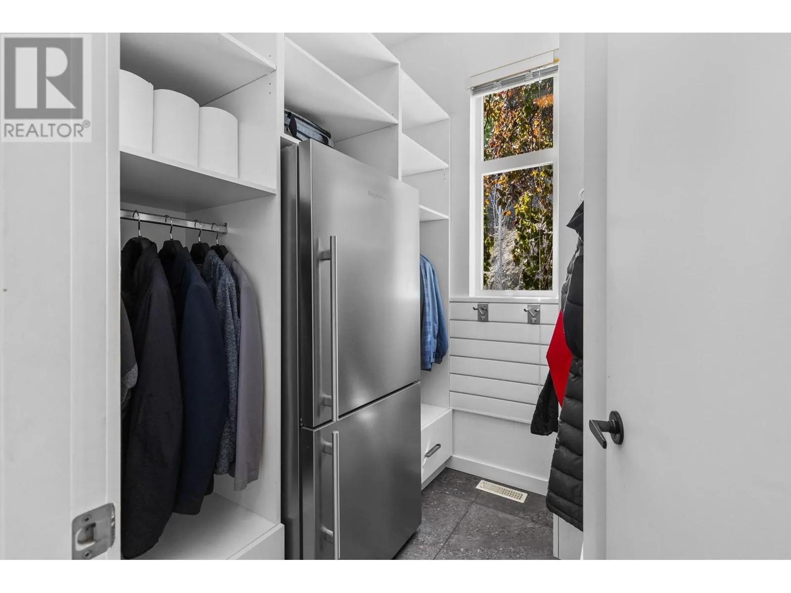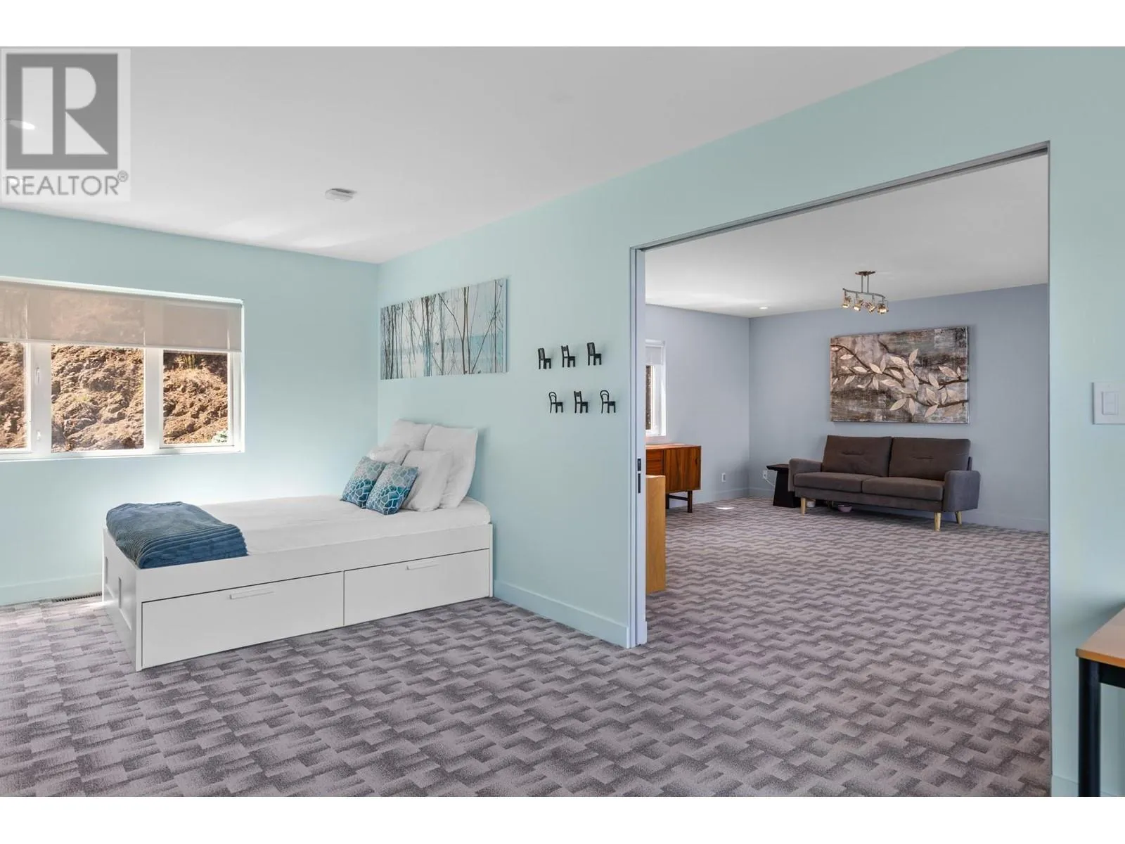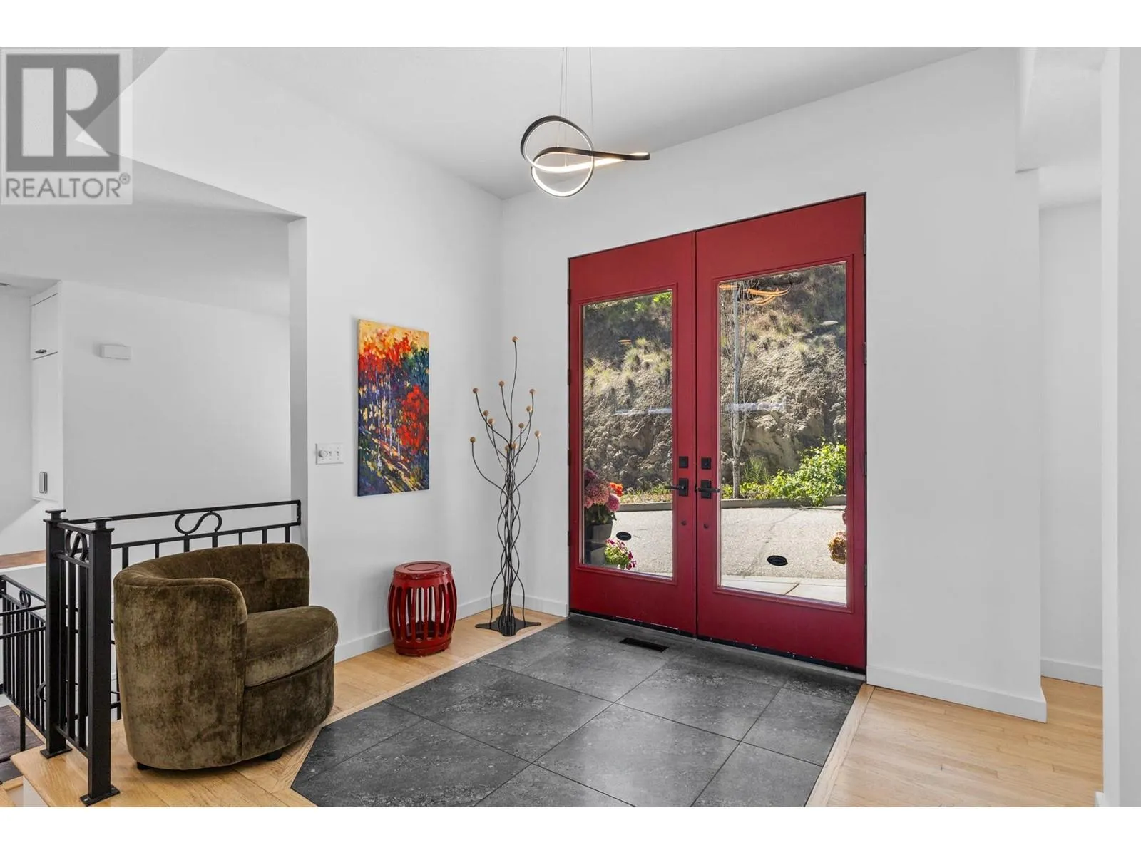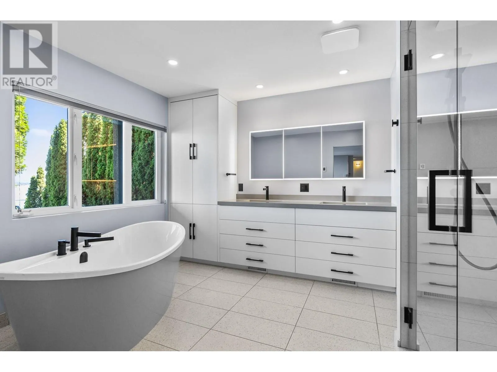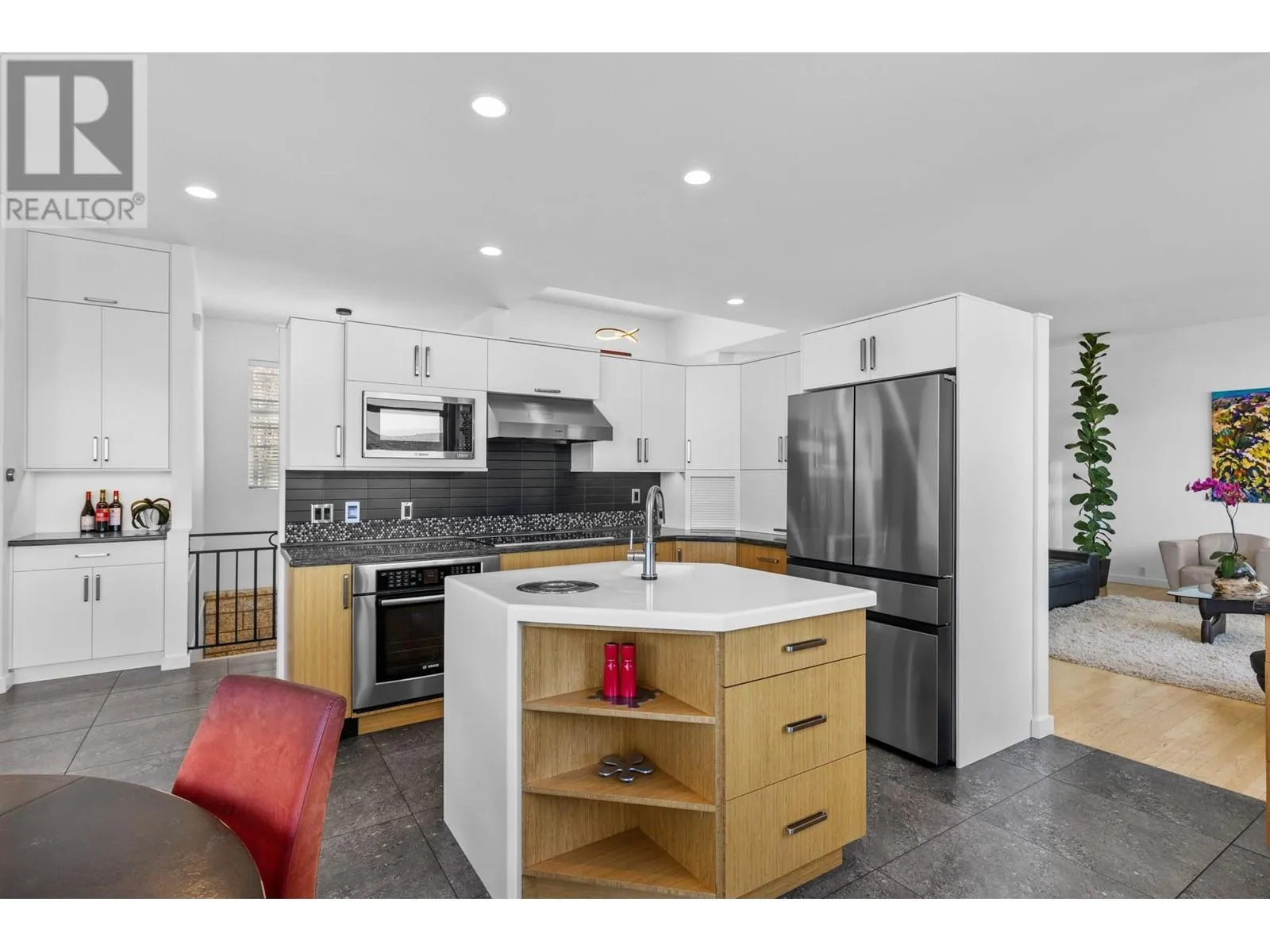 Situated just minutes from downtown Kelowna, this updated walk-out lakefront home is located in Sailview Bay, a quiet, gated community along Westside Road. Set on the cliffside with over 100 feet of private waterfront, the property captures panoramic views of Okanagan Lake and the downtown skyline, offering a peaceful setting by day and a backdrop of twinkling city lights at night. Designed to accommodate both everyday living and hosting guests, this five-bedroom home is well suited for families and visitors coming to enjoy the Okanagan lifestyle. The dock has been resurfaced with Sport Court tiles and offers direct access to the deep, clear waterâideal for swimming, paddleboarding, or diving. Just steps from the shoreline there is a generous open deck, covered outdoor bar, and a vaulted-ceiling cabana, perfect to relax by the water. Inside, the home has been thoughtfully renovated with warm finishes and a functional design. The kitchen features stainless steel appliances, a built-in oven and cooktop, two-tone custom cabinetry, and heated flooring. The open-concept layout connects the kitchen, dining, and living areas, all oriented to take in the lake and city views through large windows. Each waterfront property in Sailview Bay includes it's own private dock, accessed by stairs or a personal funicular. The community is known for its privacy, natural surroundings, and convenient locationâoffering a quiet retreat that remains close to the amenities of Kelowna and West Kelowna. (id:27476)