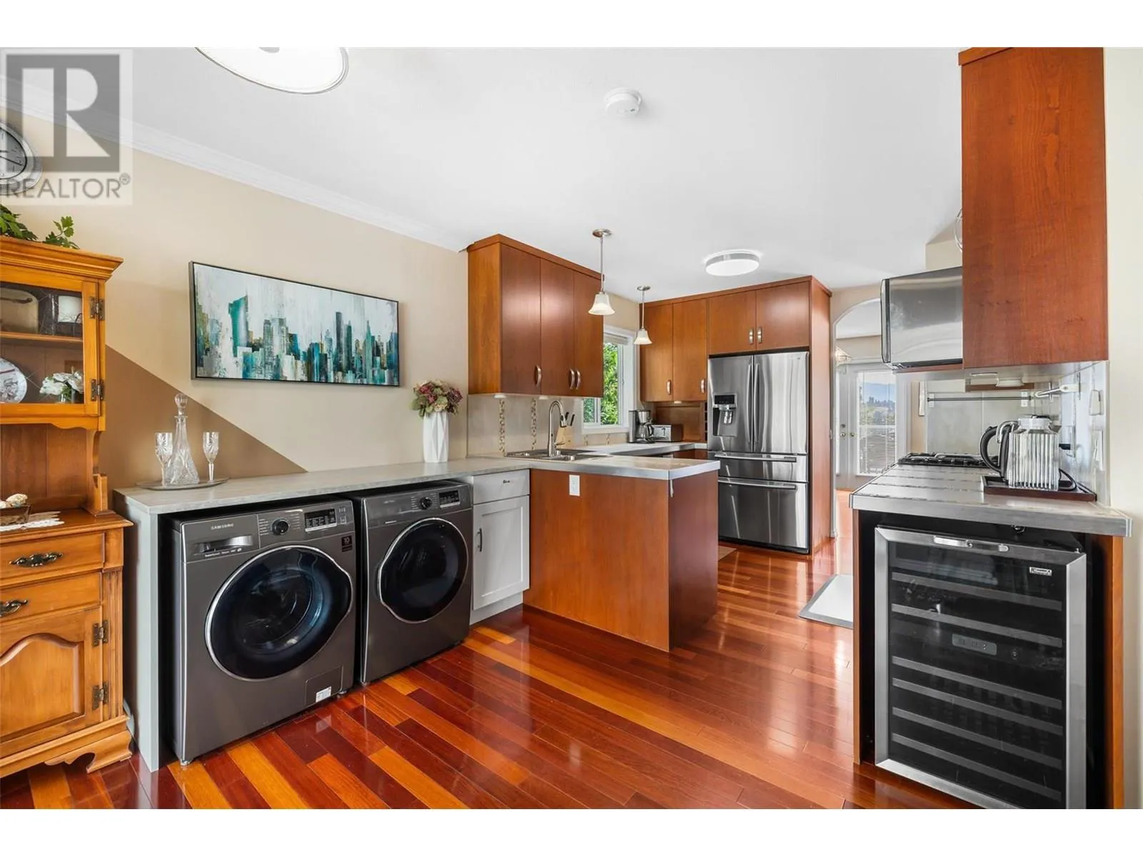 Nestled on a quiet cul-de-sac, this captivating 5-bedroom, 3-bathroom home offers the perfect blend of elegance, comfort, and nature. Brazilian hardwood flooring, exquisite Italian tile accents, and a beautifully updated kitchen showcase the home's meticulous craftsmanship. Enjoy practical luxuries like a central vacuum, an air-conditioned double garage, and dual washer-dryer sets on both levels. Relax in the sunlit solarium overlooking a landscaped garden with a tranquil waterfall and pond, or ascend to the private hillside gazebo for panoramic views of Mt. Boucherie and Grizzli Winery. Fruit trees and berry bushes flourish in the backyard oasis, nourished by an underground irrigation system. Located just 12 minutes from downtown Kelowna and 9 minutes from West Kelownaâs amenities, this home truly embodies the Okanagan lifestyle. (id:27476)
