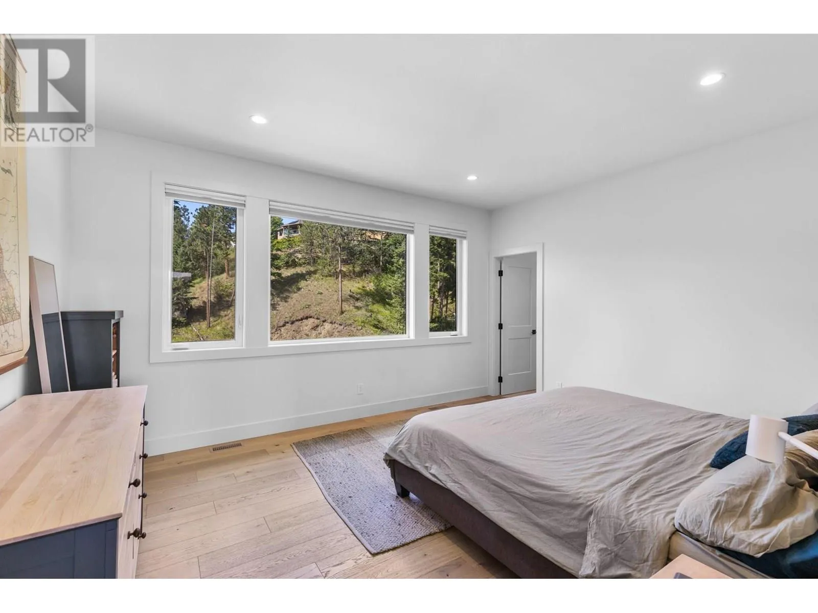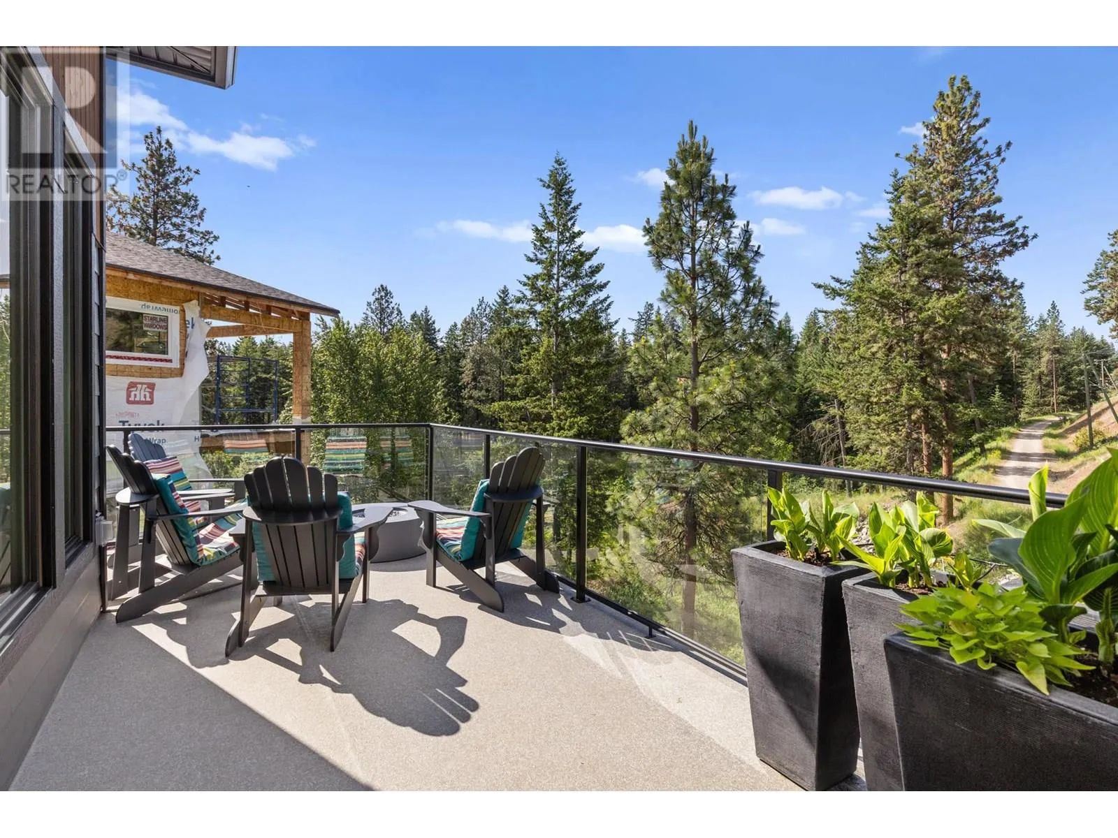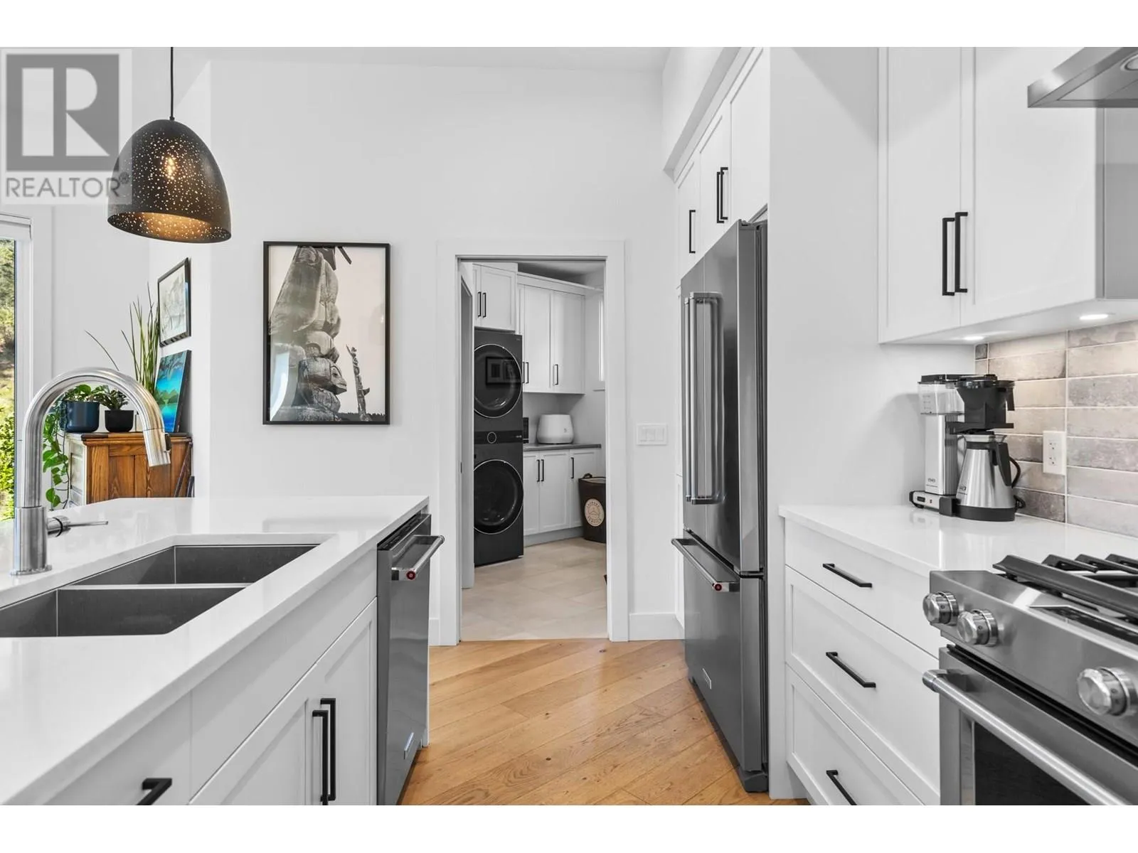 Discover this 2022-built, 3 level, 4-bedroom, 5-bathroom home in the desirable Keefe Creek community of West Kelowna Estates. Perfectly positioned on a quiet cul-de-sac and backing onto parkland, this nearly 3,000 sq. ft. home offers rare privacy, tranquil views, and immediate access to a trail which is ideal for dog walking and nature lovers. The main level welcomes you with a sleek, open-concept design highlighted by oversized windows, wide-plank hardwood flooring, and a striking gas fireplace. The designer kitchen features quartz counters, a gas range, tiled backsplash, and a spacious island with a waterfall edge. Step outside to a balcony overlooking the well maintained yard and natural green space beyond. Upstairs, unwind in the luxurious primary suite with a walk-in closet and spa-inspired ensuite bathroom complete with two sinks, a tiled shower, and a soaker tub. Two additional bedrooms and a full bathroom round out the upper level. Downstairs offers a large recreation/media room, powder room, and a fully self-contained 1-bedroom suite with its own entranceâideal for extended family or rental income. Located just minutes to downtown Kelowna or into West Kelowna schools, grocery stores, amenities and hiking, this is stylish living with space, serenity, and income potential. (id:27476)