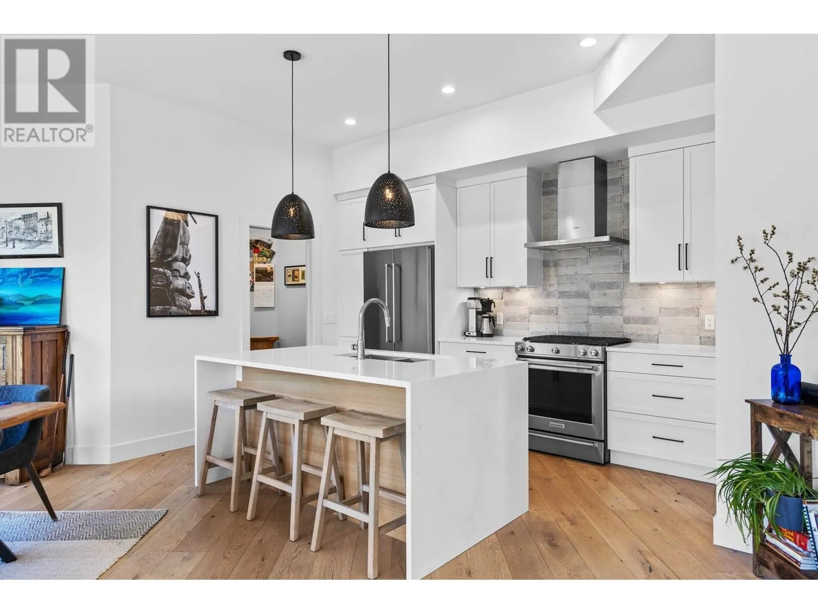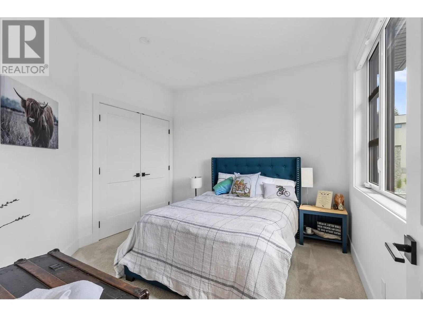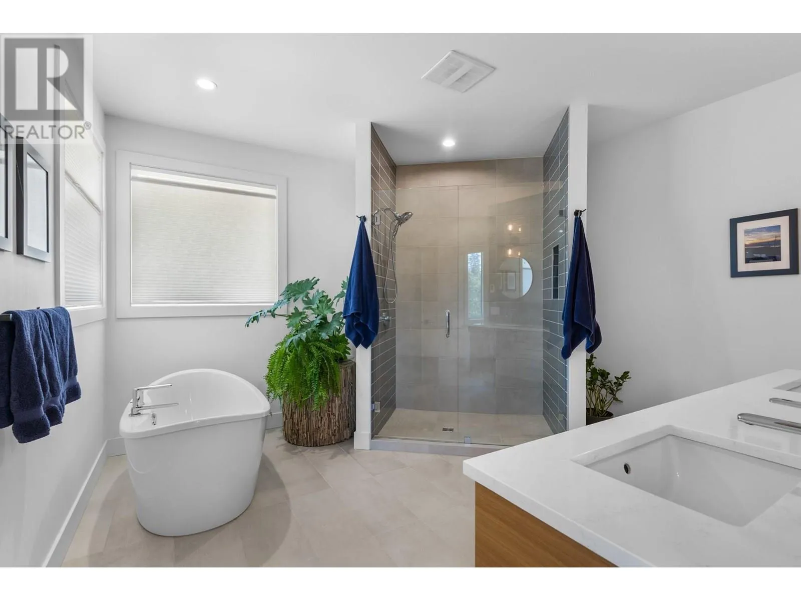 Discover this 2022-built, 3 level, 4-bedroom, 5-bathroom home in the desirable Keefe Creek community of West Kelowna Estates. Perfectly positioned on a quiet cul-de-sac and backing onto parkland, this nearly 3,000 sq. ft. home offers rare privacy, tranquil views, and immediate access to a trail which is ideal for dog walking and nature lovers. The main level welcomes you with a sleek, open-concept design highlighted by oversized windows, wide-plank hardwood flooring, and a striking gas fireplace. The designer kitchen features quartz counters, a gas range, tiled backsplash, and a spacious island with a waterfall edge. Step outside to a balcony overlooking the well maintained yard and natural green space beyond. Upstairs, unwind in the luxurious primary suite with a walk-in closet and spa-inspired ensuite bathroom complete with two sinks, a tiled shower, and a soaker tub. Two additional bedrooms and a full bathroom round out the upper level. Downstairs offers a large recreation/media room, powder room, and a fully self-contained 1-bedroom suite with its own entranceâideal for extended family or rental income. Located just minutes to downtown Kelowna or into West Kelowna schools, grocery stores, amenities and hiking, this is stylish living with space, serenity, and income potential. (id:27476)