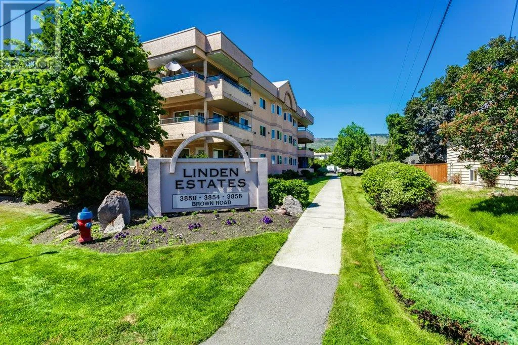 Immaculate two bedroom condo in desirable Linden Estates. Low strata fees of only $375 and open RV parking makes this apartment the perfect downsize. Walk to shopping, dining and medical or take a short drive to the lake. This 1073 square foot condo boasts all new vinyl planking throughout most of the home, newer appliances and fresh paint through out. The new wall A/C unit keeps the space nice and cool and the skylight allows for ample natural light. Enjoy your enclosed deck all year around. It even has a small outside BBQ space so you can do all your cooking outdoors if you like! Recent updates to the complex include a new roof, new elevator and new garage doors. Rentals are now allowed and one cat or dog up to 14"" at the shoulder. Call today for your personal tour. (id:27476)