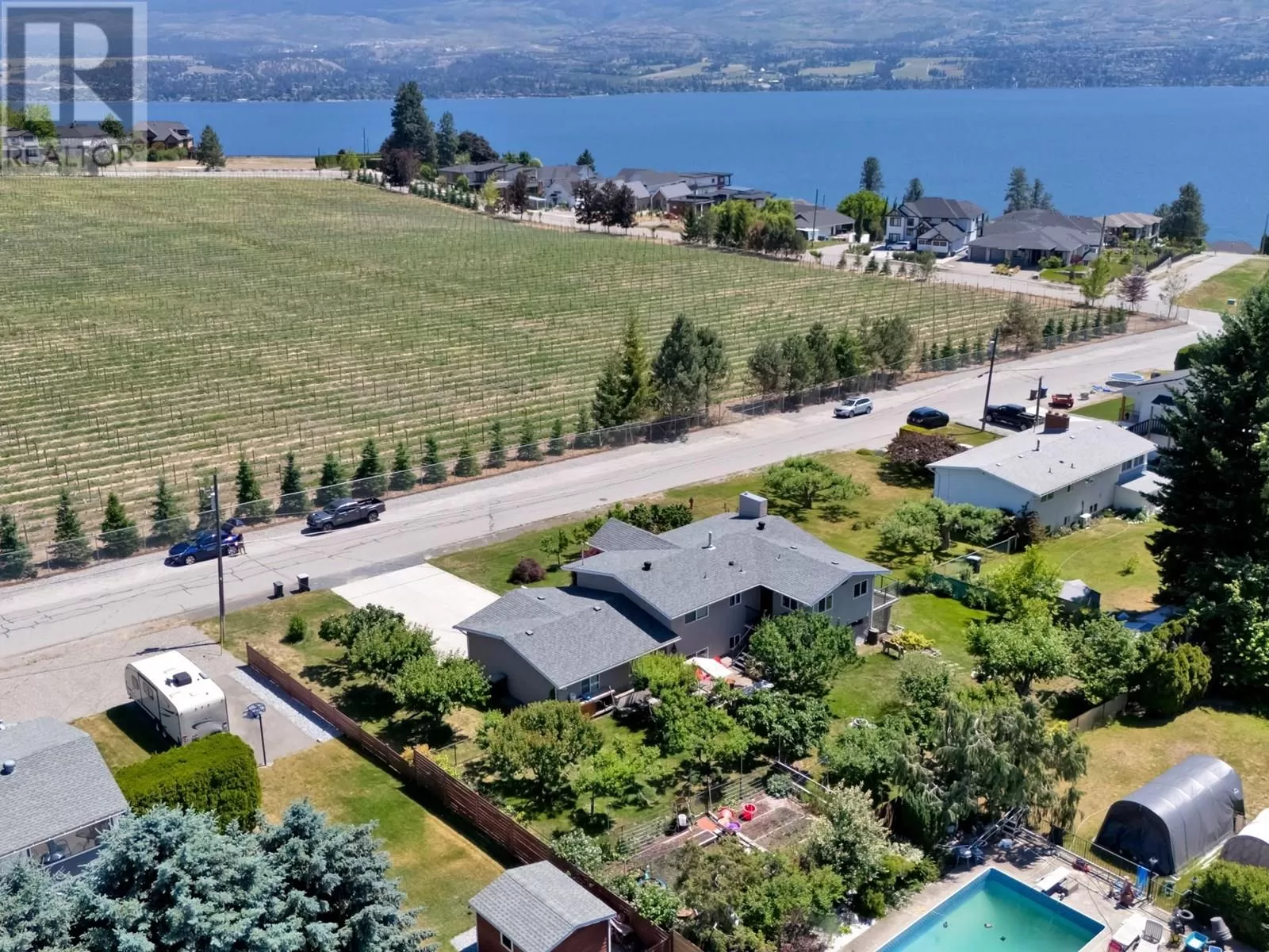 Welcome to this incredible opportunity in the heart of West Kelownaâs most sought after neighborhood, Lakeview Heights. Situated on a flat one-third acre lot, this charming property is surrounded by mature fruit trees including peaches, cherries, grapes, plums, and walnuts. Enjoy views of the lake, valley, mountain and surrounding vineyards from the partial wraparound deck, which captures morning sunrises to the East and serene lake views to the South. You are also minutes to the incredible beaches and trails of Kalamoir Park among others such as Pritchard, Pebble, Gellatly Bay and Rotary Beach. Inside, the home offers excellent flexibility with a separate entrance and in-law suite, ideal for multi-generational living or a mortgage helper. The main level features a bright, open living area that flows seamlessly into the kitchen and a partially separated dining or flex room with direct access to the backyard oasis. Also on the main floor are two generous bedrooms and a well-appointed four-piece bathroom. Downstairs offers two more bedrooms, another full bathroom, and walkout access to the beautifully landscaped, fruit-filled yard. This move-in ready home is perfect for families and includes stylish leather couches, a BBQ, multiple outdoor benches, two TVs, garden tools, ladders, rain barrels and more, all included in the sale price. Don't miss your chance to own a versatile and well cared for home in one of West Kelowna's most desirable locations. (id:27476)