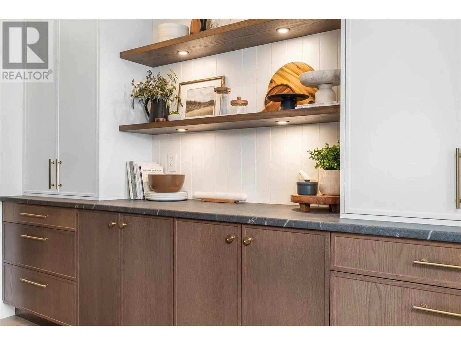 Step inside this Everton Ridge Built Okanagan Contemporary show home in Shorerise, West Kelowna â where elevated design meets everyday functionality. This stunning residence features dramatic vaulted ceilings throughout the Great Room, Dining Room, Entry, and Ensuite, adding architectural impact and an airy, expansive feel. A sleek linear fireplace anchors the Great Room, while the oversized covered deck â with its fully equipped outdoor kitchen â offers the perfect space for year-round entertaining. With 3 bedrooms, 3.5 bathrooms, and a spacious double-car garage, thereâs room for the whole family to live and grow. The heart of the home is the dream kitchen, complete with a 10-foot island, a large butlerâs pantry, and a built-in coffee bar â ideal for both busy mornings and relaxed weekends. Every detail has been thoughtfully designed to reflect timeless style and effortless livability. (id:27476)