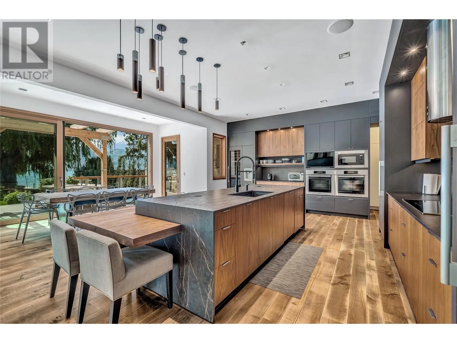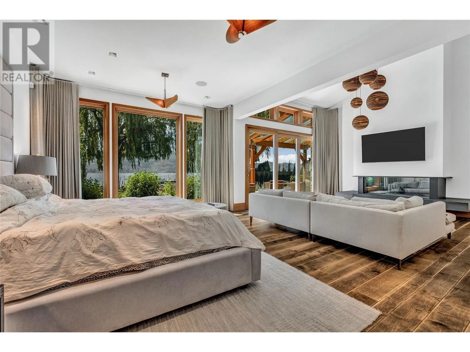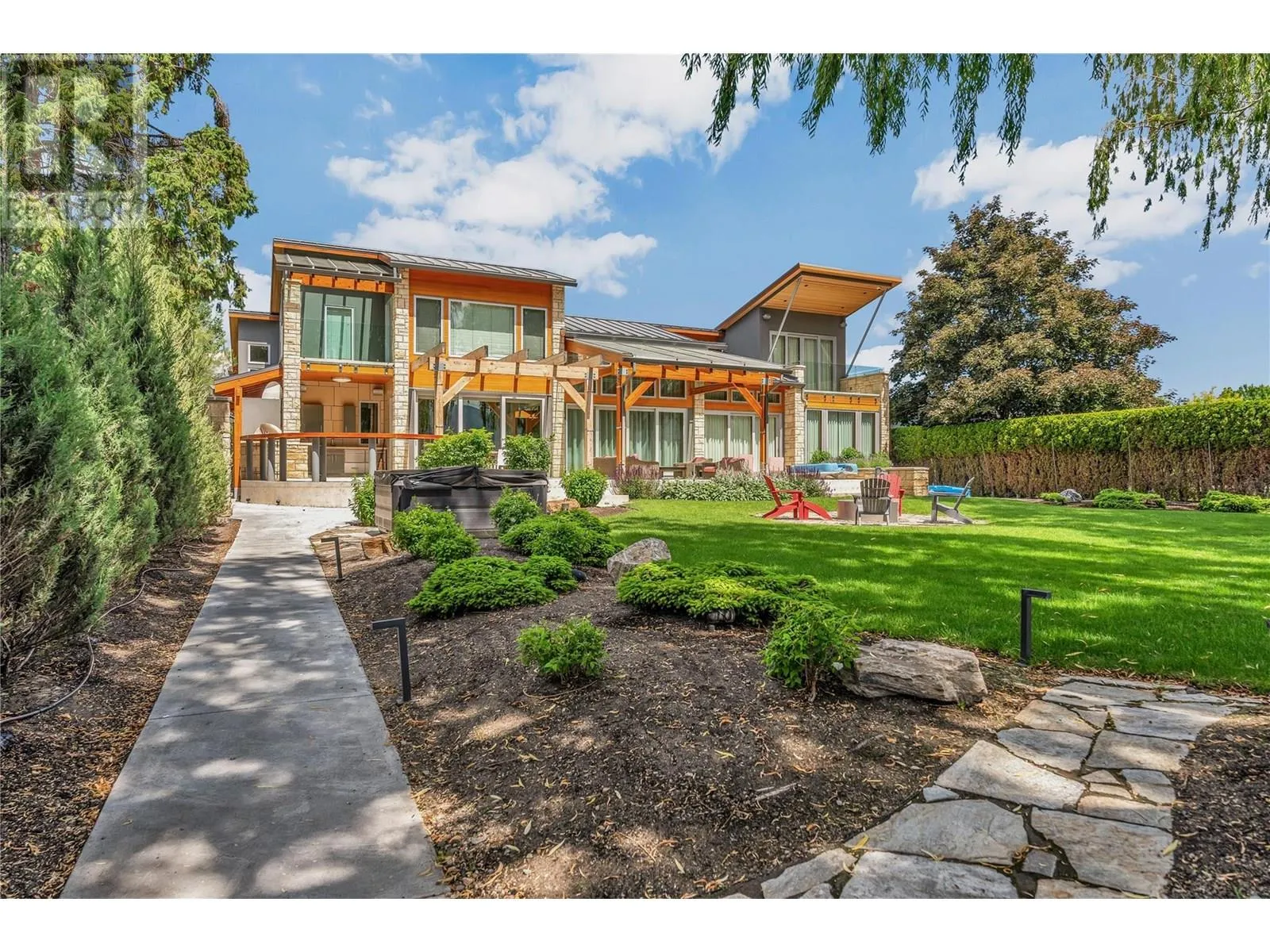 Escape to your private lakeside sanctuary on prestigious Whitworth Road. This magnificent 7,000+ square foot gated waterfront estate transforms everyday living into a resort experience. Step through floor-to-ceiling sliding doors from your open-concept living space onto a backyard paradise featuring luxury hot tub, gas fire pit, full outdoor kitchen, private shower, and multiple patios. The large dock with dual boat lifts is your gateway to endless lake adventures. Every inch has been meticulously renovated including a dramatic ceiling-height gas fireplace and reimagined gourmet kitchen with massive center island and Dekton countertops. The main floor primary wing offers your personal retreat with fireplace seating area, opulent ensuite, generous walk-in closet, and private office loft with lake view patio access. Four additional bedrooms include a stunning lake view primary with ensuite and patio, plus a self-contained guest suite. Complete with home theater and 4-car garage. Nestled on a peaceful half-acre lot, this stone, stucco, and wood masterpiece offers ultimate privacy while floor-to-ceiling windows frame spectacular water views. This isn't just real estateâit's your chance to own a lifestyle most only dream of. (id:27476)
