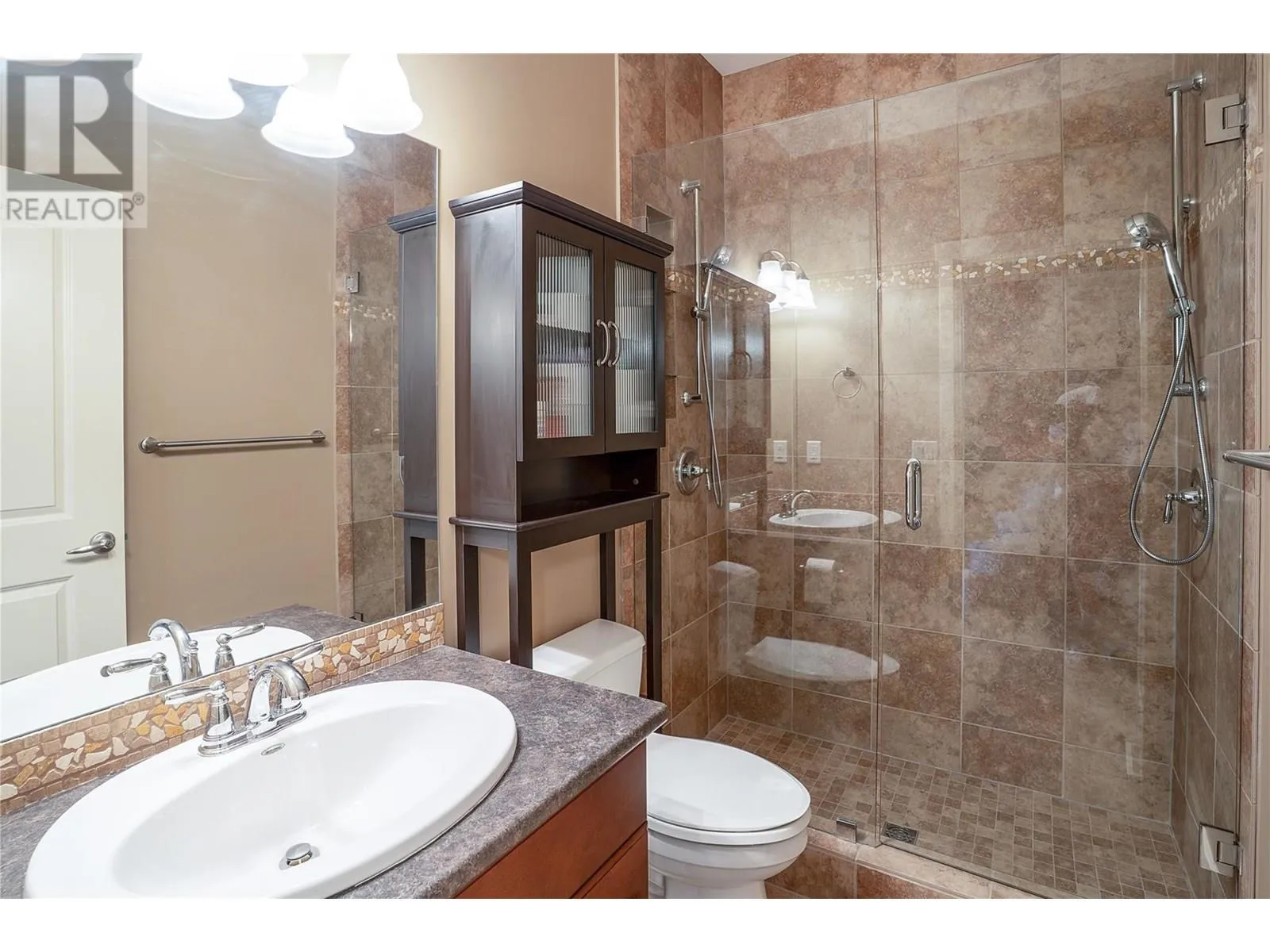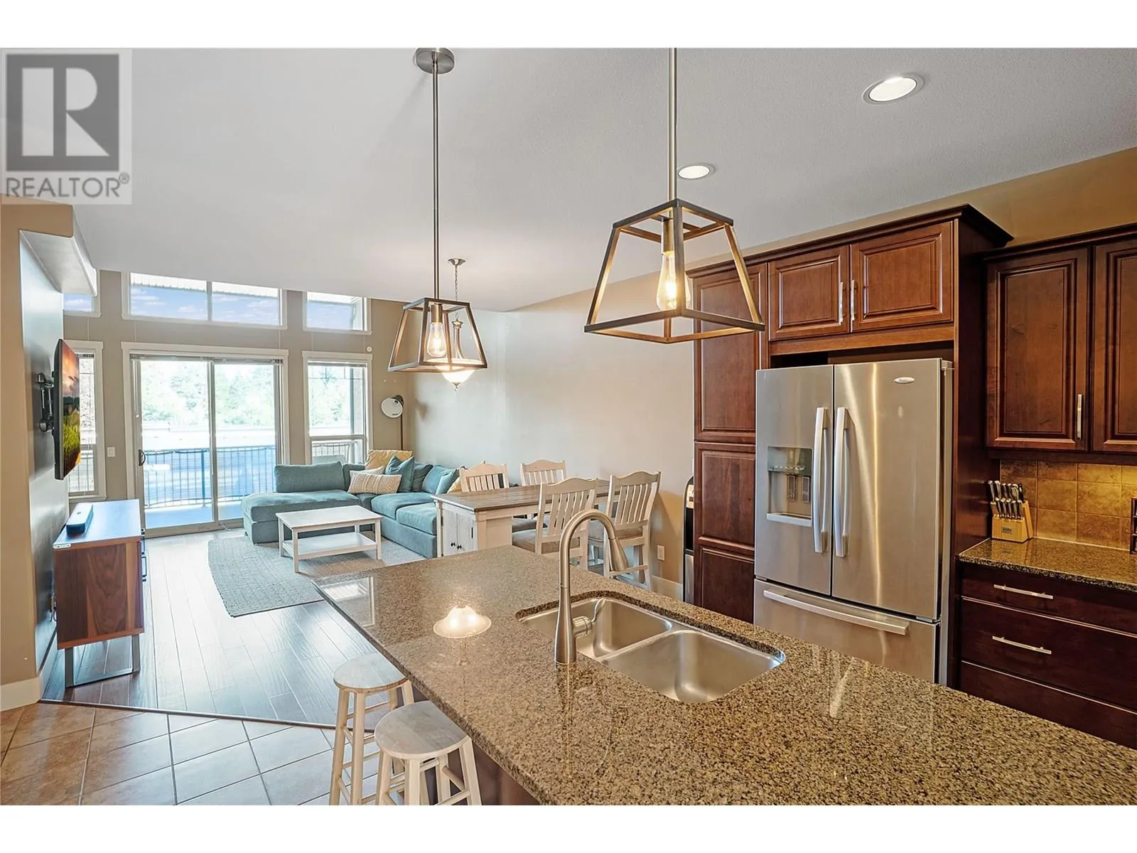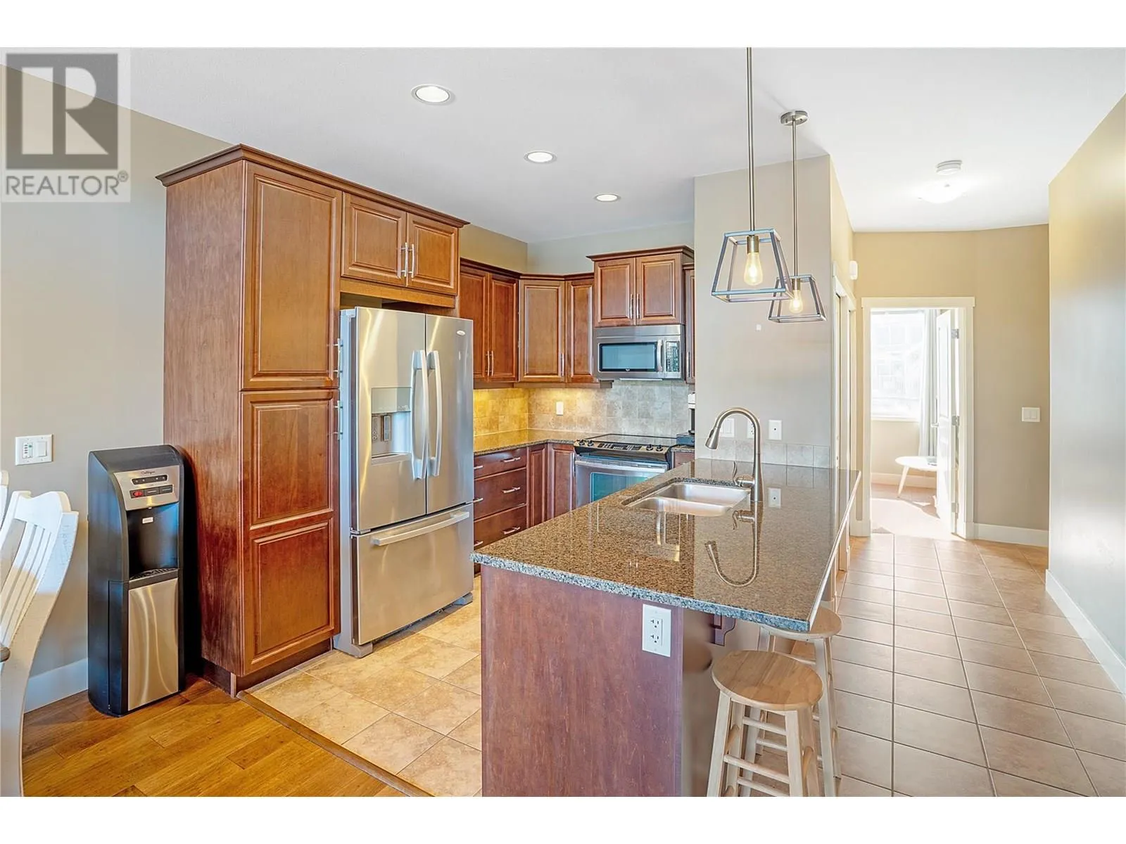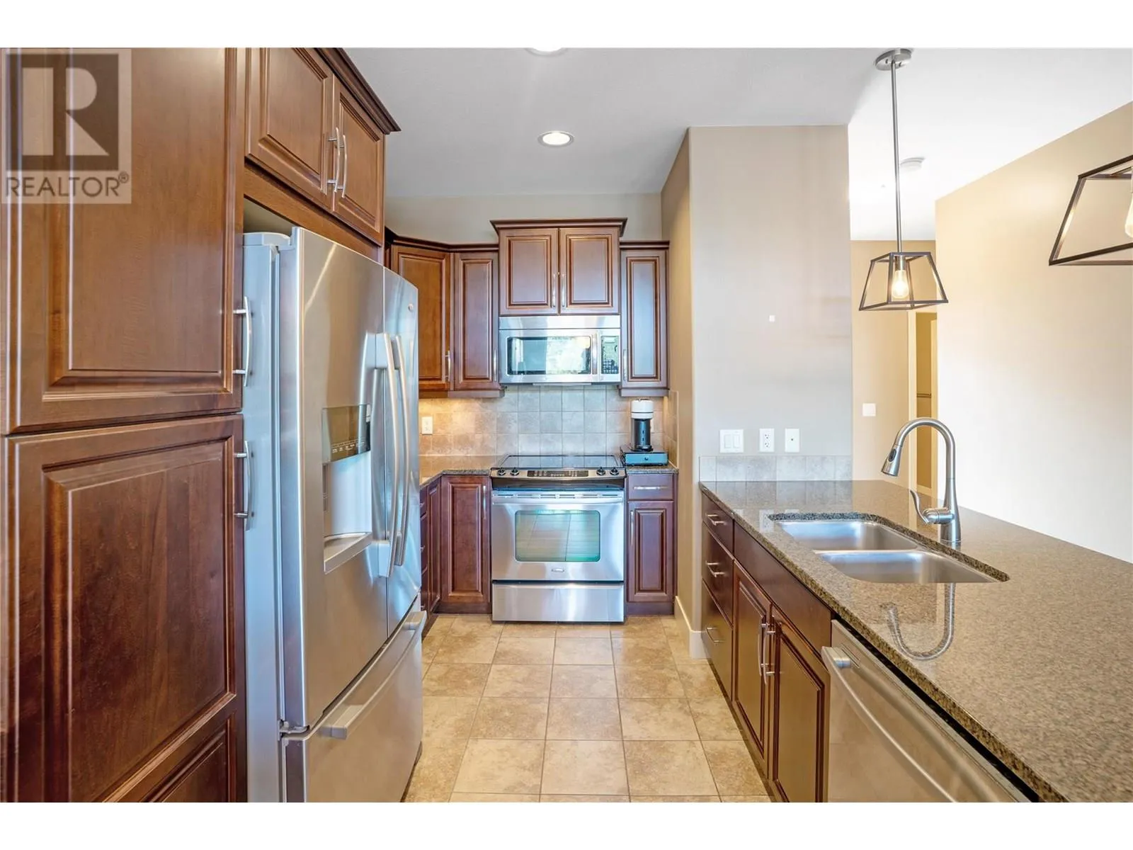 TownHomes for Toys â RV Living, Elevated! Welcome to Tesoro Arca, a premier development designed with the RV enthusiast in mind! NEW FURNACE & A/C. Each home features a custom oversized garage with full motorhome storage, complete with interior water, power, and sewer hookups. Wide enough to extend your slide-outs, this space is the ultimate in RV convenienceâright at home. Step inside this beautifully appointed 2-bedroom townhome, where luxury and practicality come together. A private elevator connects both levels for easy access. On the main floor, enjoy open-concept living with a gourmet kitchen featuring soft-close cabinetry, granite countertops, under-cabinet lighting, and stainless steel appliances. The spacious dining area flows into a cozy living room with a natural gas fireplace, creating an inviting atmosphere for everyday living or entertaining. Outside, the expansive patio is an entertainerâs dream, complete with natural gas BBQ hookup, power for a hot tub, and breathtaking lake and valley viewsâperfect for those unforgettable Okanagan sunsets. A guest bedroom and full bathroom with a glass-enclosed, dual-head shower complete the main level. Upstairs, retreat to your generous primary suite featuring a walk-in closet with custom shelving and a spa-inspired ensuite with a jetted tub and custom tile shower. Located close to shopping, golf courses, outdoor recreation, and diningâincluding the famous Westside Wine TrailâTesoro Arca offers a true Okanagan lifestyle. Enjoy nearby access to Okanagan Lake, Shannon Lake, and direct highway connections to both the North and South Okanagan. With a prepaid 99-year lease, this is a rare and exciting opportunity. Donât miss your chance to own in one of the regionâs most unique and RV-friendly communities! (id:27476)