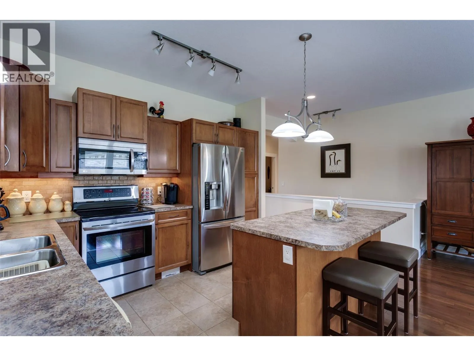 Charming 2 bed plus den 2 baths townhome in the highly sought-after gated community of Canyon Ridge Estates. This bright and beautifully maintained townhome features 2 spacious bedrooms, 2 bathrooms and versatile den perfect for your home office or hobby space. Enjoy cooking in the spacious kitchen equipped with a central island and stainless steel appliances perfect for entertaining or everyday dining. Retreat to the generously sized primary bedroom that boasts a walk-in closet and a private ensuite. The second bedroom is conveniently located near the main bathroom, ideal for hosting guests or accommodating family. The den/office features French doors that ensure privacy while being just off the foyer. Step outside to your front patio and large rear patio, which is equipped with a motorized awning for shade and comfort. Perfect for gatherings or simply enjoying the outdoors. The full unfinished basement offers endless possibilities - rough-in plumbing is already in place for an additional bathroom and a third bedroom, allow you to customize the space to suit your needs. Enjoy the convenience of a double garage with additional space in the driveway for two vehicles. Prime location just steps away from the clubhouse. This 55 plus community is perfect for those looking for a peaceful and engaging environment. Schedule a viewing today! (id:27476)