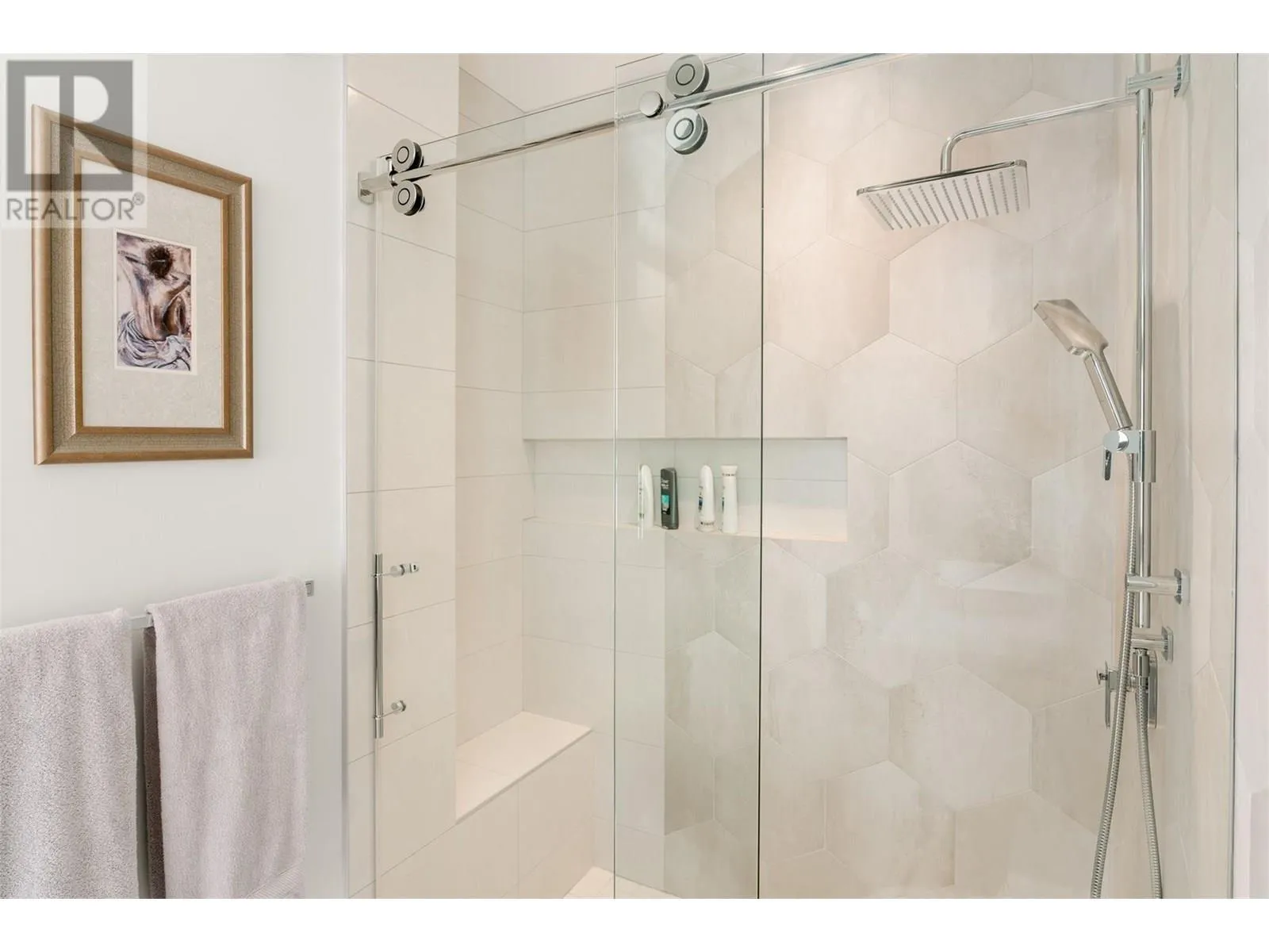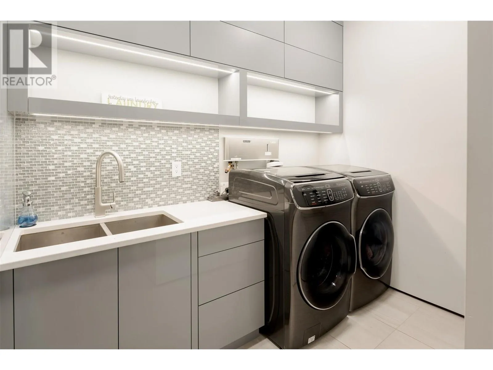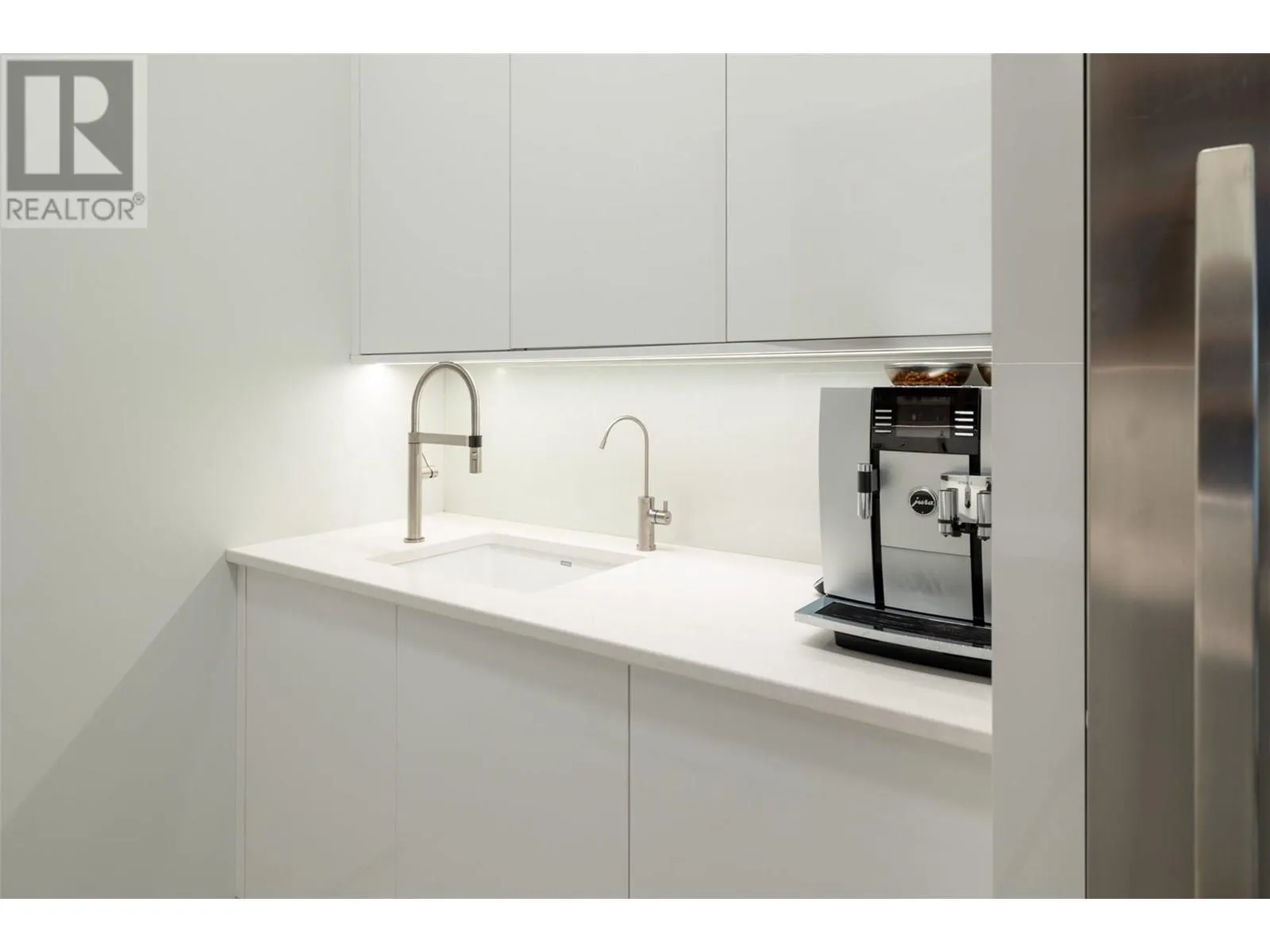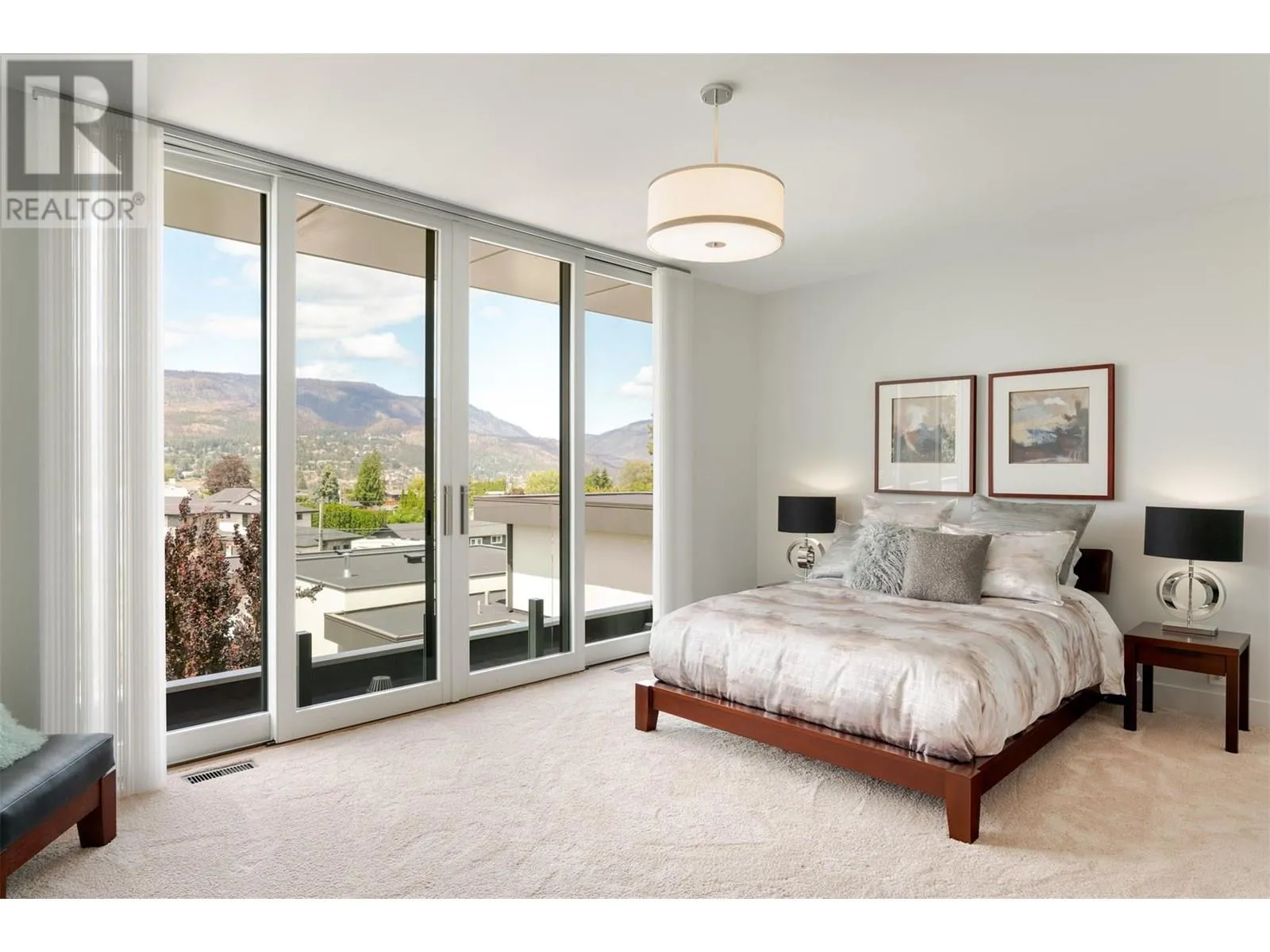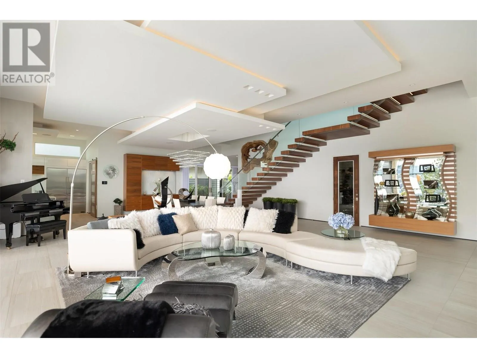 Discover unparalleled luxury at this magnificent custom Okanagan home. As you pass through the gate, you'll immediately be captivated by its design. The modern aesthetic seamlessly integrates the home with its landscaping, creating a harmonious experience. The entry features a mesmerizing floating roof design inspired by a museum in Spain, and light filled courtyard to display custom artwork Inside, entertain at the custom bar, enjoy a cinematic experience in the state-of-the-art home theatre, and store your prized vintages in the 1,500-bottle wine room. For seamless indoor to outdoor living all the sliding doors open to a completely private backyard offering a sensational living experience: prepare a culinary feast in the outdoor kitchen, lounge by the expansive saltwater vanishing edge pool, or soak in the hot tub, all while enjoying the relaxing ambiance of the waterfall and 180-degree views of Okanagan Lake. Take the floating walnut staircase or the elevator upstairs. The primary bedroom is a retreat like no other, with a private patio, luxurious lake view en suite, and a stunning custom closet. Three additional bedrooms each have their own en suite. For the car enthusiast, this home boasts 2 levels of garages with parking for 7+ vehicles. Exquisite finishes include porcelain tile floors, Cambria quartz, &unmatched glass and walnut woodwork by Shawn Truit. This custom home stands as a masterpiece of design and engineering. (id:27476)