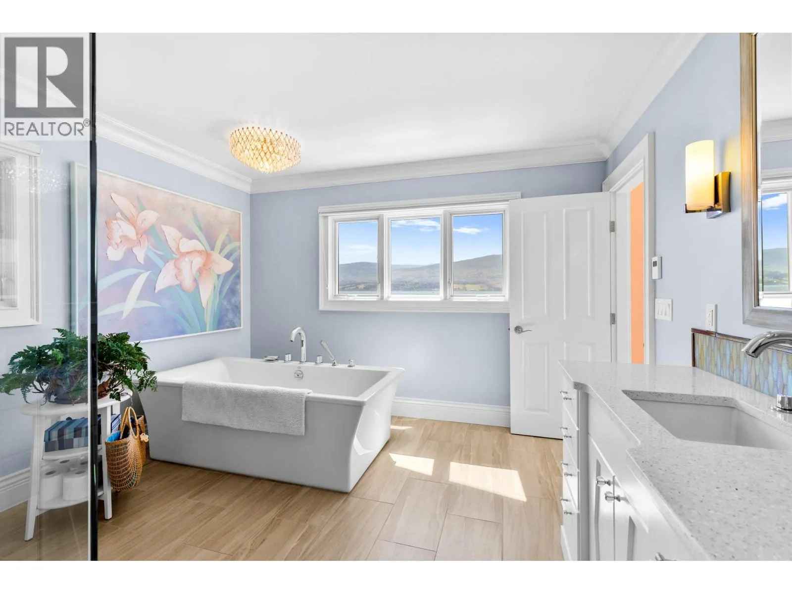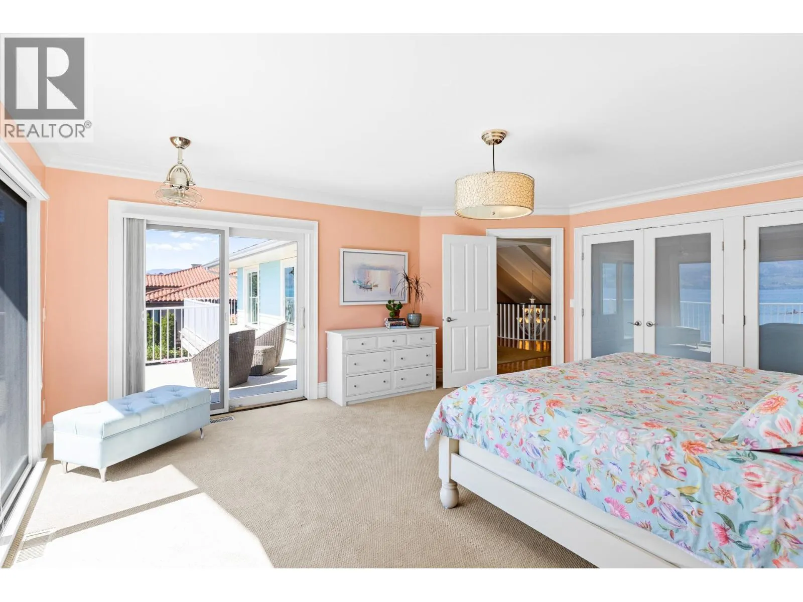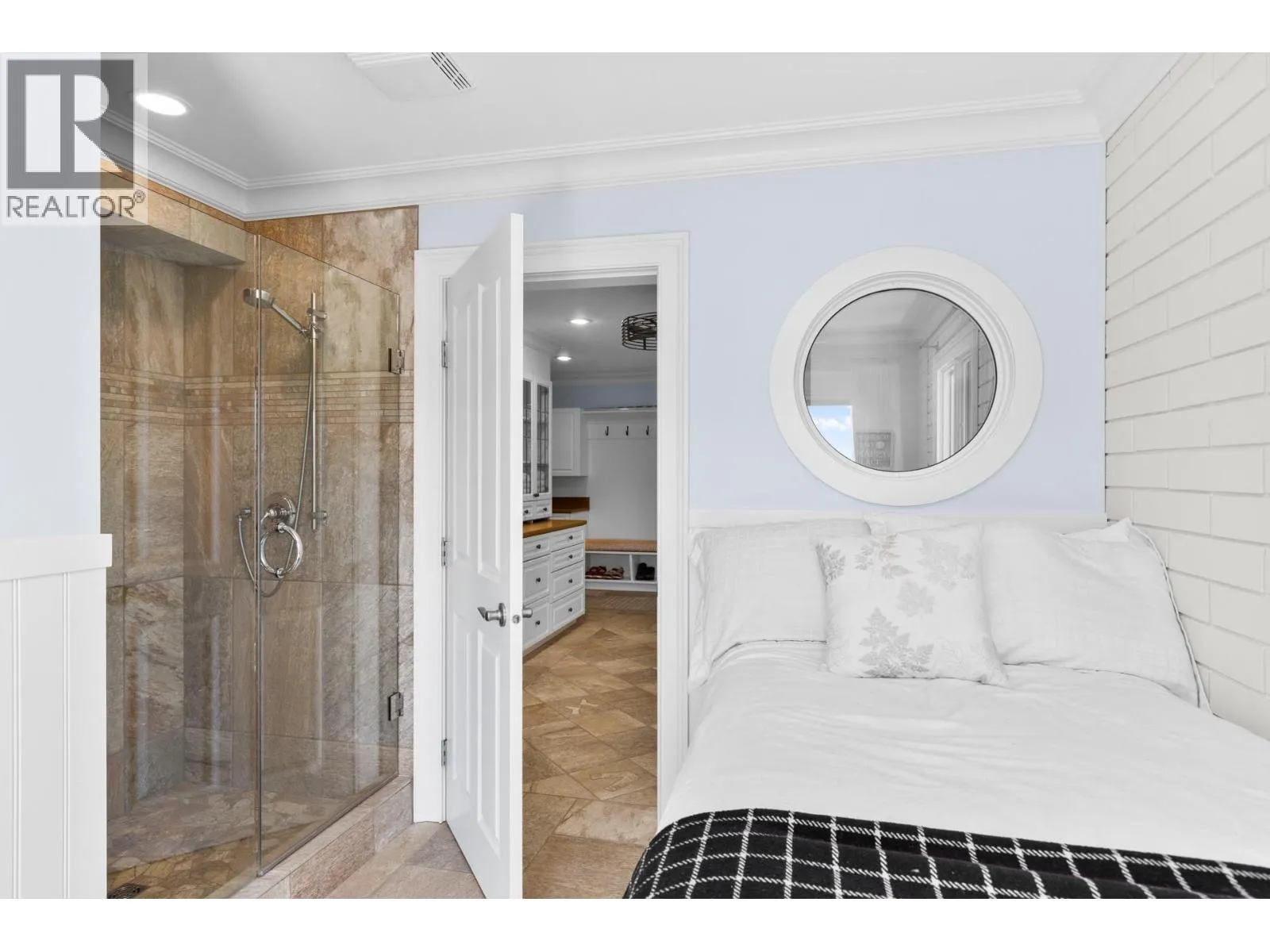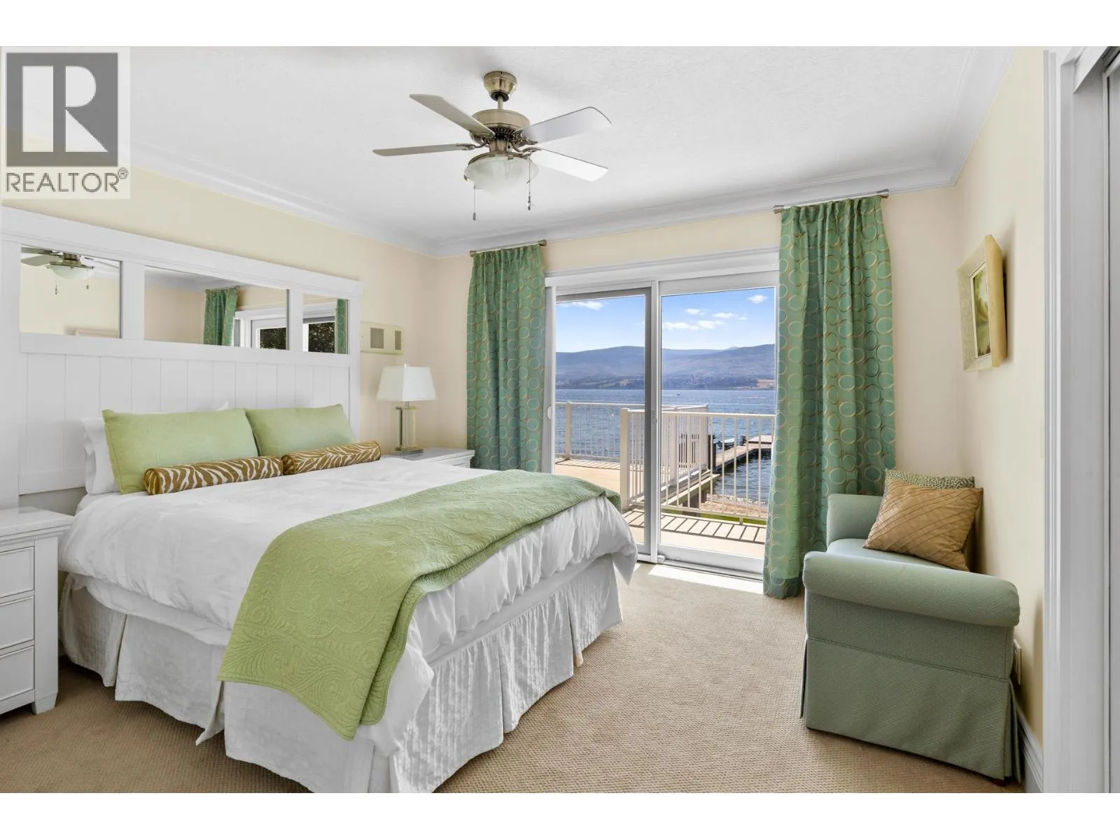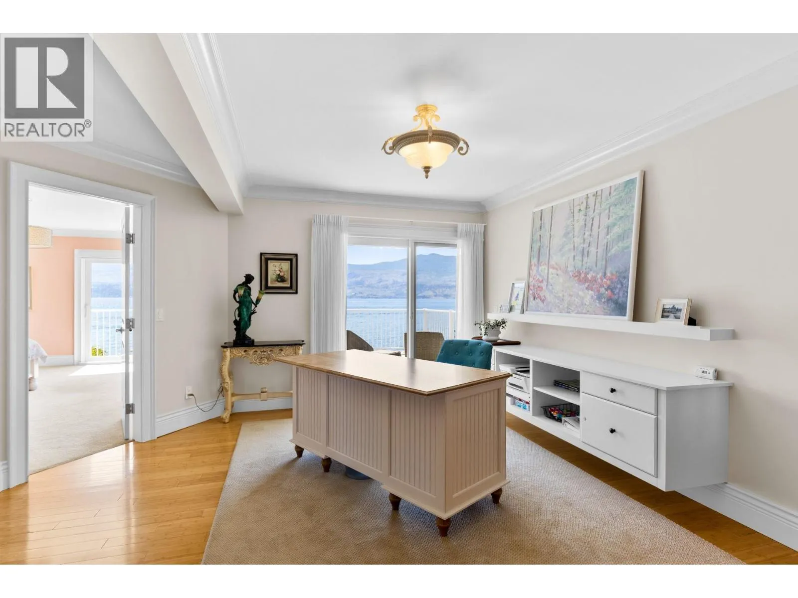 Live your Okanagan Lakefront dream with 128' of flat pristine beachfront on nearly .5 of an acre. Enjoy your licensed dock with 2 lifts, a boathouse for lake toys, and a lush irrigated yard with maple,pine,fruit trees, and beautiful flowers. The Chef's kitchen offers a Thermador fridge, Induction cooktop, wine fridge, and inspiring lake views, perfect for entertaining, or quiet mornings. The main floor boasts Inside,bamboo flooring,large windows, and a seamless flow between laundry room, recently renovated bedroom and bathroom, den with elegant wainscotting, sunken living room and dining area. A European sauna upstairs offers you your own private spa, while the Primary bedroom is a perfect sanctuary with stunning lake views, an ensuite that makes one feel spoiled, and large patio deck so one can capture the lake and mountain views. A newer furnace(2022),and AC ensure year round comfort. An oversized 2-auto garage with workspace area, and plenty of driveway parking for guests. From morning paddles to sunset gathering ,embrace lakeside living at its finest on Lake Okanagan. (id:27476)