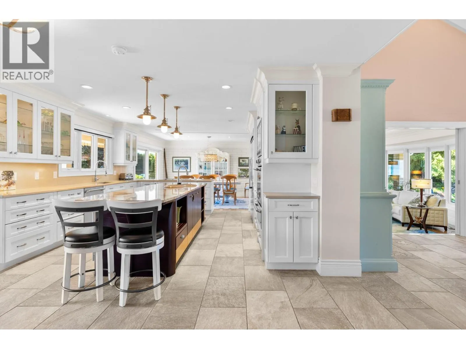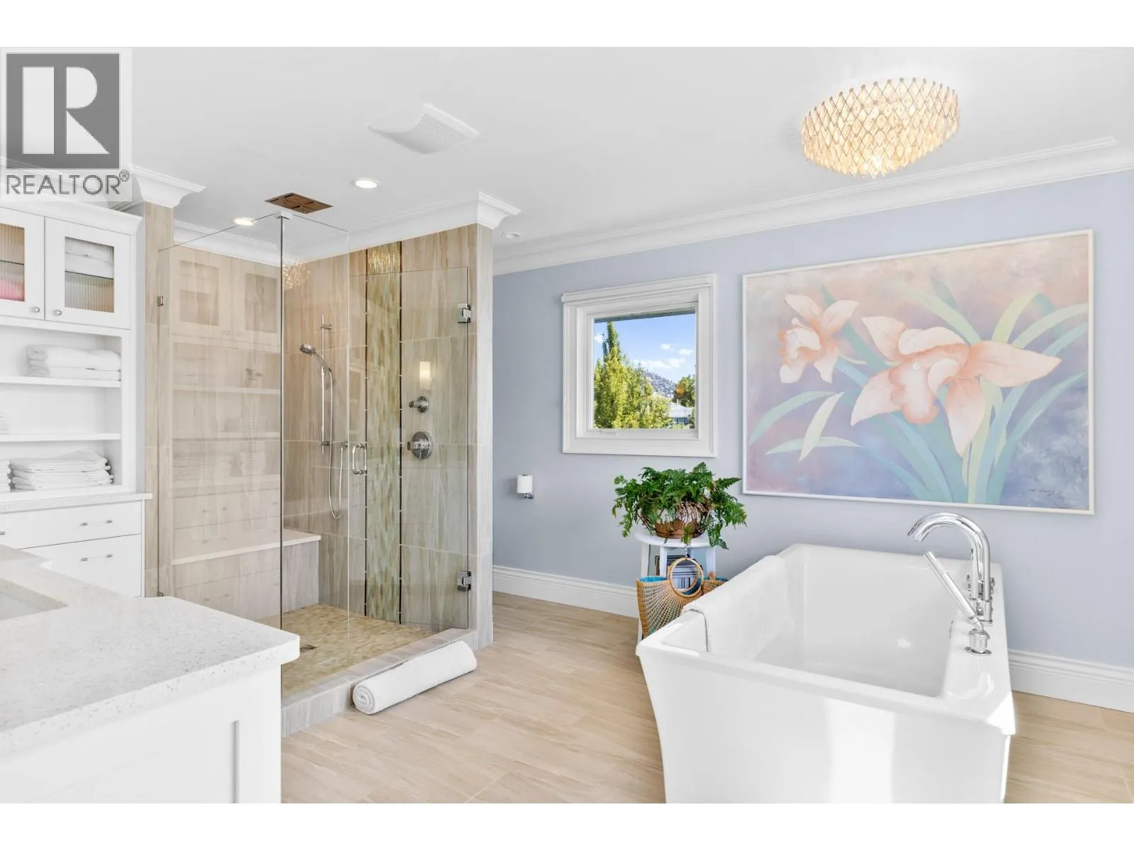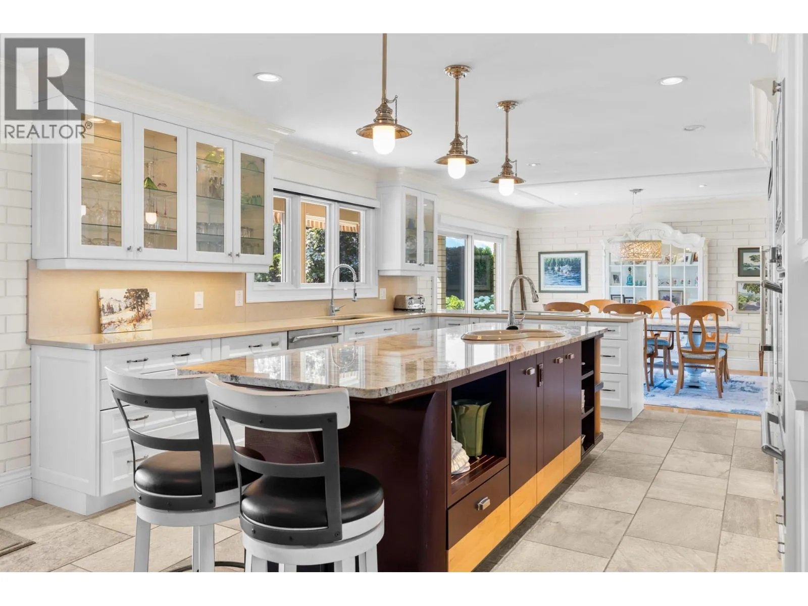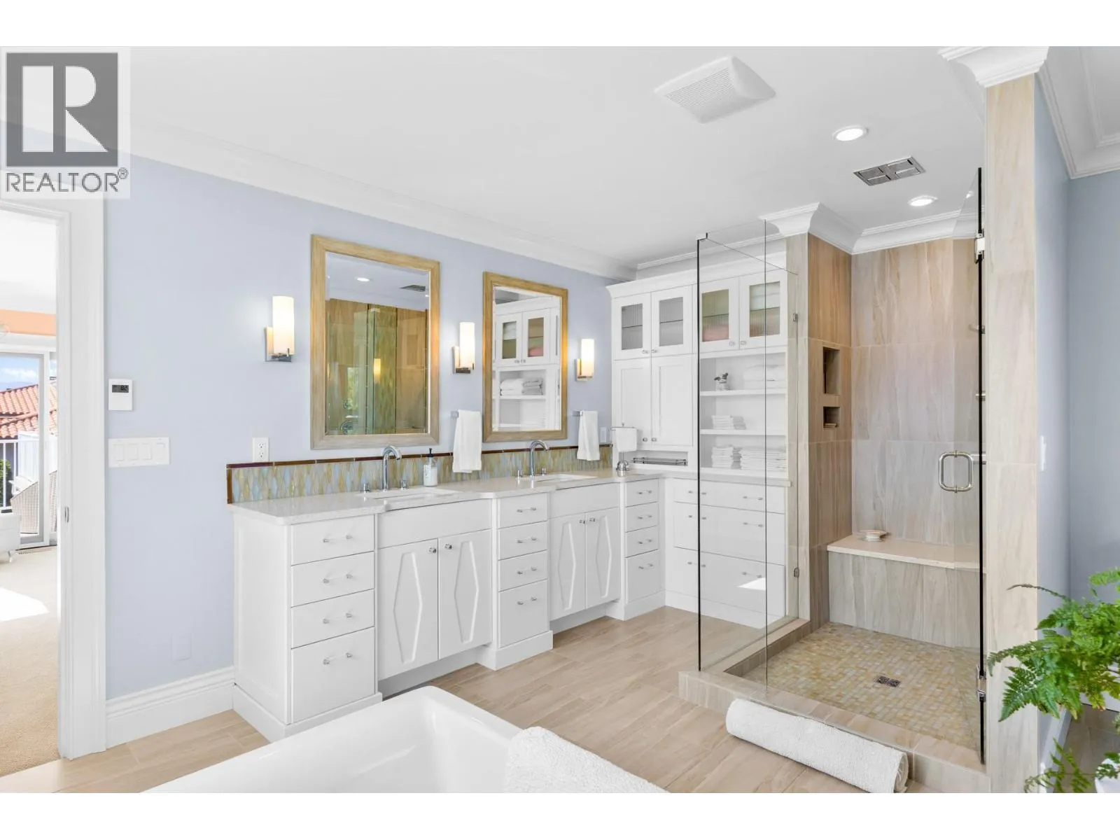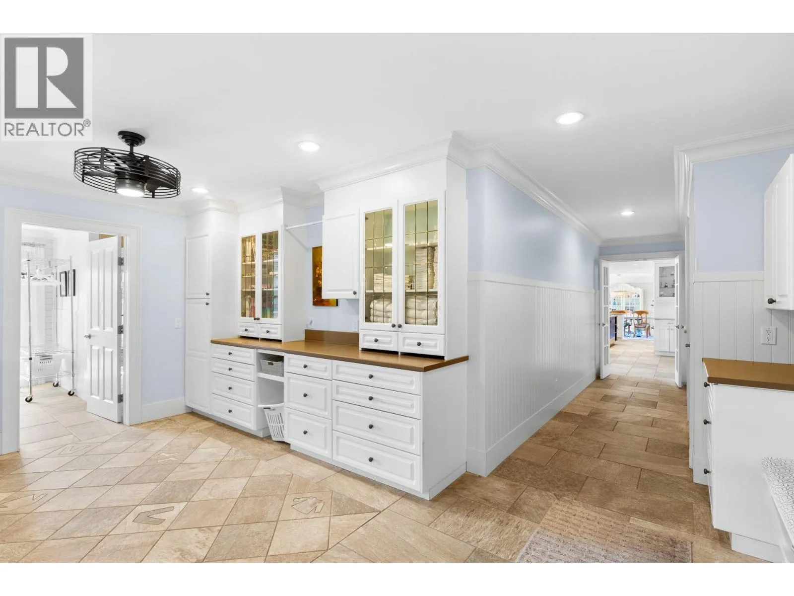 Live your Okanagan Lakefront dream with 128' of flat pristine beachfront on nearly .5 of an acre. Enjoy your licensed dock with 2 lifts, a boathouse for lake toys, and a lush irrigated yard with maple,pine,fruit trees, and beautiful flowers. The Chef's kitchen offers a Thermador fridge, Induction cooktop, wine fridge, and inspiring lake views, perfect for entertaining, or quiet mornings. The main floor boasts Inside,bamboo flooring,large windows, and a seamless flow between laundry room, recently renovated bedroom and bathroom, den with elegant wainscotting, sunken living room and dining area. A European sauna upstairs offers you your own private spa, while the Primary bedroom is a perfect sanctuary with stunning lake views, an ensuite that makes one feel spoiled, and large patio deck so one can capture the lake and mountain views. A newer furnace(2022),and AC ensure year round comfort. An oversized 2-auto garage with workspace area, and plenty of driveway parking for guests. From morning paddles to sunset gathering ,embrace lakeside living at its finest on Lake Okanagan. (id:27476)