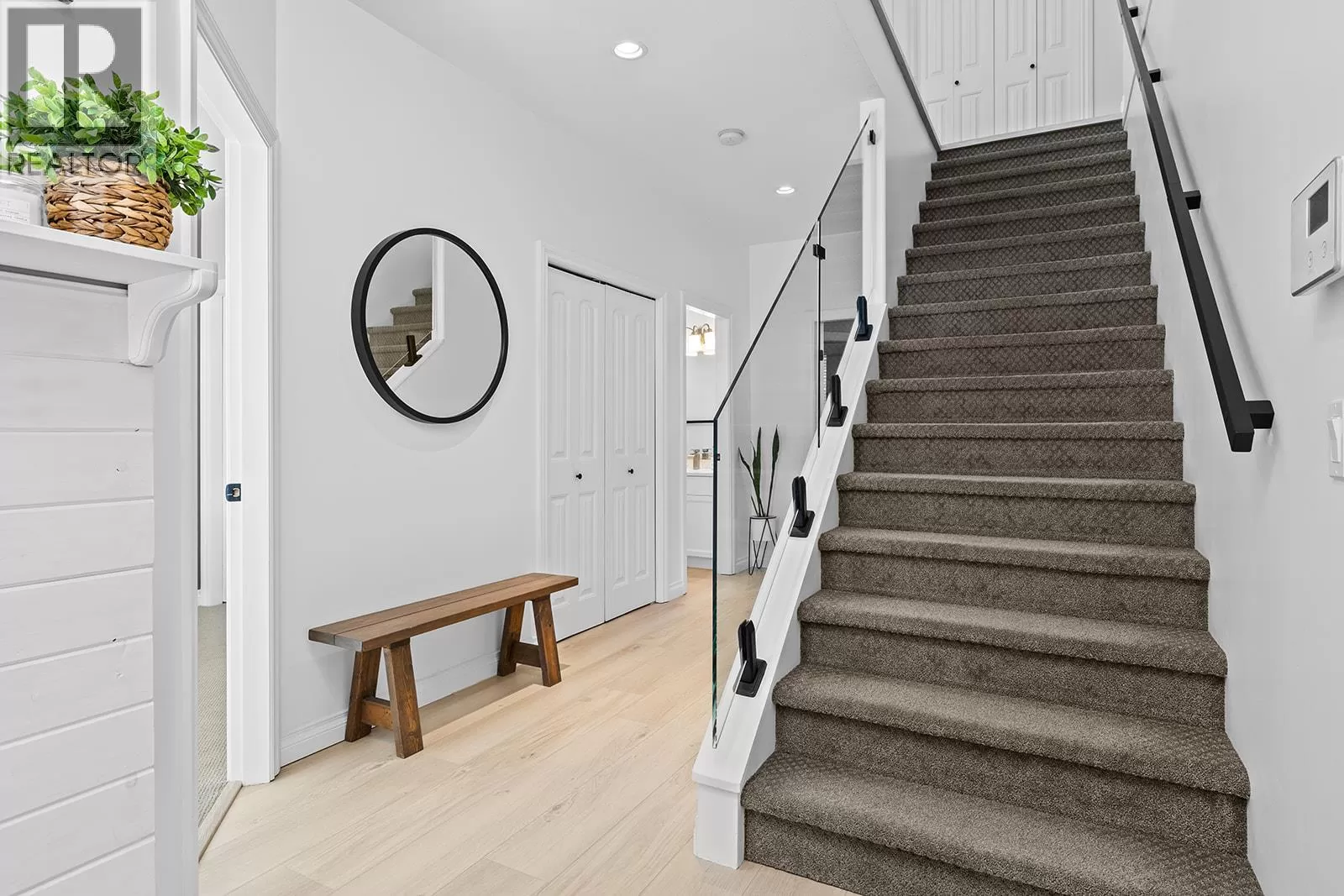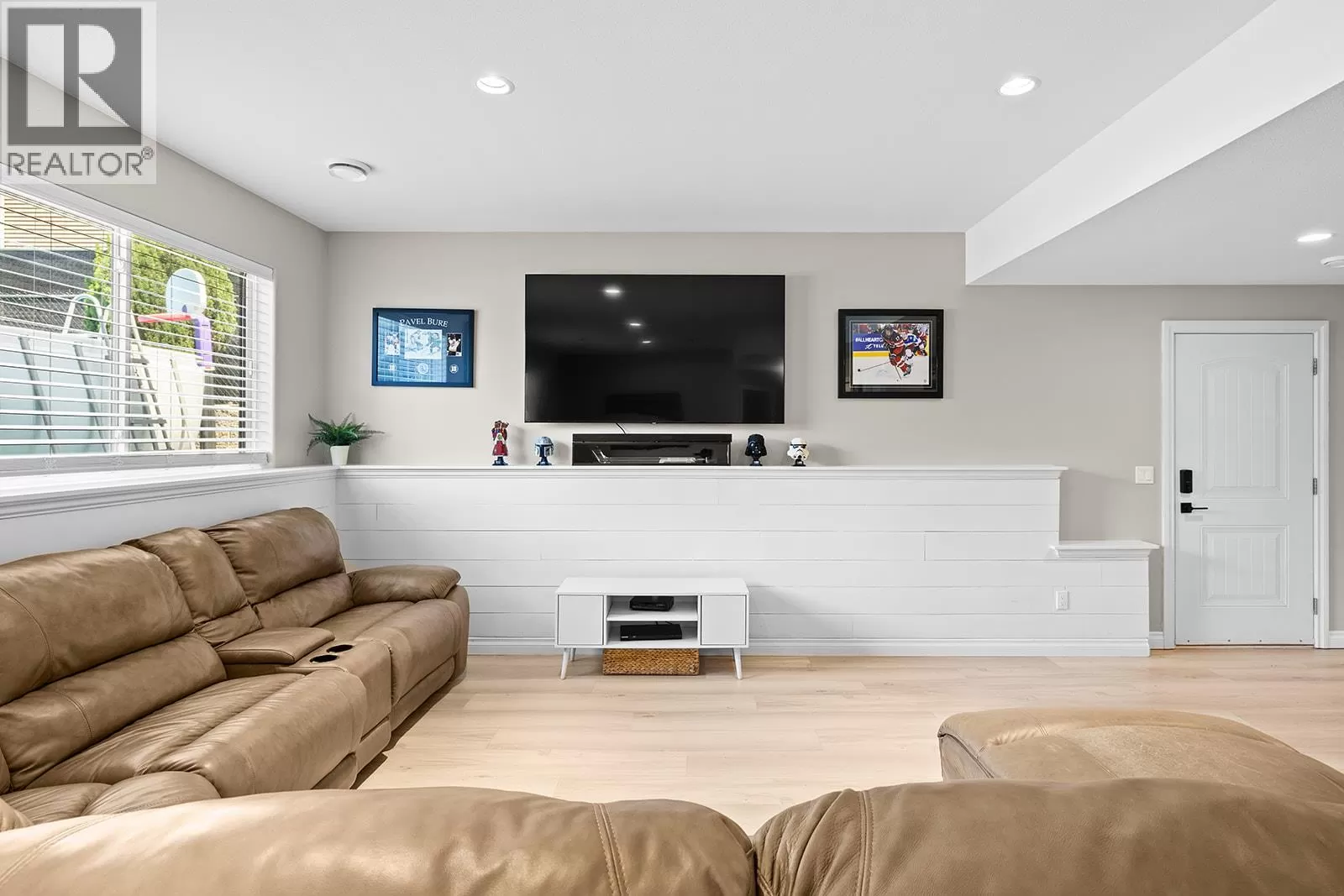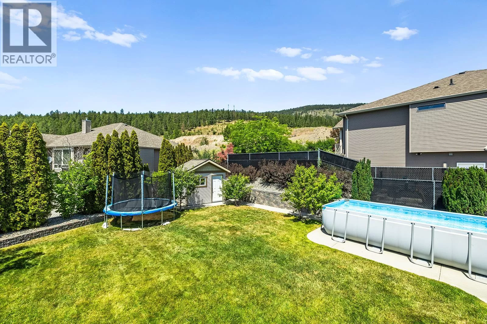 This perfect family home, set in a tranquil family neighbourhood is the total package â modern upgrades, a private yard, and direct access to endless outdoor adventure. Welcome to this bright and airy 5 bedroom, 3 bathroom walk-up rancher, perfectly perched on a quiet cul-de-sac in the catchment of West Kelownaâs top schools. The ideal family layout features 3 bedrooms, laundry, kitchen, and living room upstairs plus 2 more bedrooms and a massive rec room downstairs â with suite potential. Outside, enjoy a huge front balcony to soak in sun and views in addition to your covered back deck with natural gas hook-up and hot tub adding to your outdoor Oasis. Grill or soak in the spa with a perfect vantage-point of the kids as they can splash in the pool, bounce on the trampoline (yes, it can stay!), and snack on nectarines, apples, and cherries from your own fruit trees. Tall cedars surround the yard for ultimate privacy. Inside, no detail was overlooked in the remodel - from custom wall treatments, to glass railings, to under cabinet lighting. The kitchen features a walk-in pantry, island, upgraded appliances and a coffee bar. Premium finishes were used throughout including luxury vinyl plank flooring, soft-close cabinets, Napoleon gas fireplace with tile surround, and quartz countertops. With ample parking and hiking and biking trails steps from your driveway, this home is designed for the active Okanagan family, and wonât last long. (id:27476)