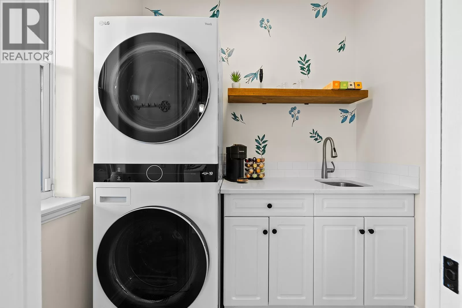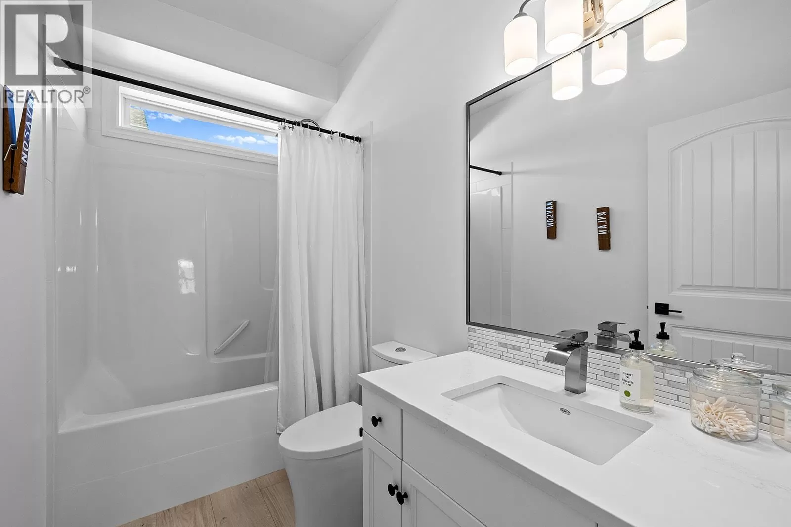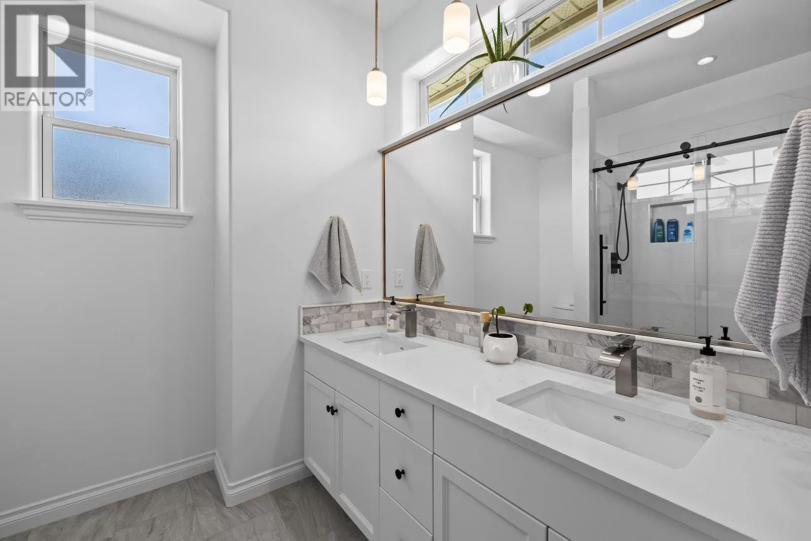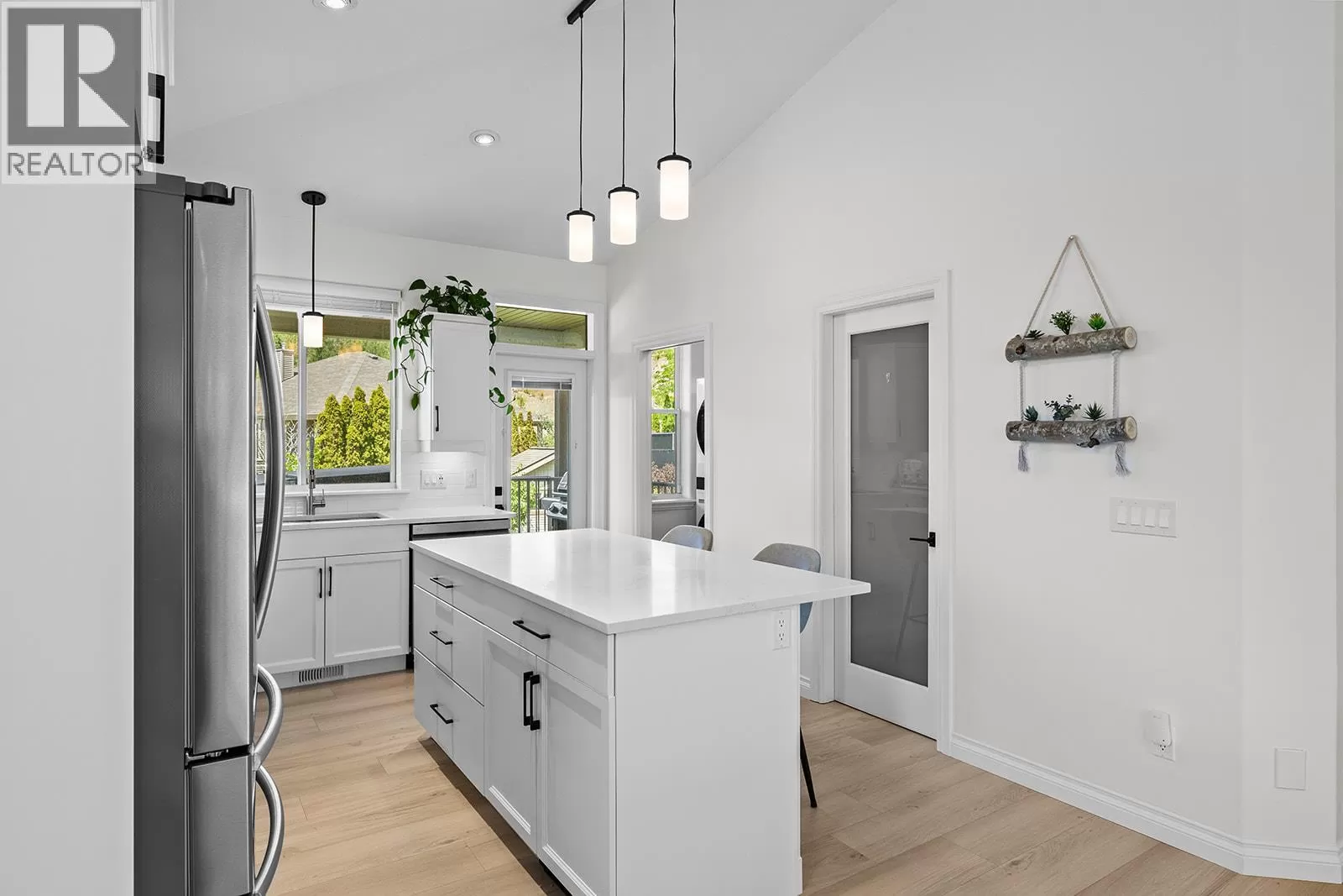 This perfect family home, set in a tranquil family neighbourhood is the total package â modern upgrades, a private yard, and direct access to endless outdoor adventure. Welcome to this bright and airy 5 bedroom, 3 bathroom walk-up rancher, perfectly perched on a quiet cul-de-sac in the catchment of West Kelownaâs top schools. The ideal family layout features 3 bedrooms, laundry, kitchen, and living room upstairs plus 2 more bedrooms and a massive rec room downstairs â with suite potential. Outside, enjoy a huge front balcony to soak in sun and views in addition to your covered back deck with natural gas hook-up and hot tub adding to your outdoor Oasis. Grill or soak in the spa with a perfect vantage-point of the kids as they can splash in the pool, bounce on the trampoline (yes, it can stay!), and snack on nectarines, apples, and cherries from your own fruit trees. Tall cedars surround the yard for ultimate privacy. Inside, no detail was overlooked in the remodel - from custom wall treatments, to glass railings, to under cabinet lighting. The kitchen features a walk-in pantry, island, upgraded appliances and a coffee bar. Premium finishes were used throughout including luxury vinyl plank flooring, soft-close cabinets, Napoleon gas fireplace with tile surround, and quartz countertops. With ample parking and hiking and biking trails steps from your driveway, this home is designed for the active Okanagan family, and wonât last long. (id:27476)