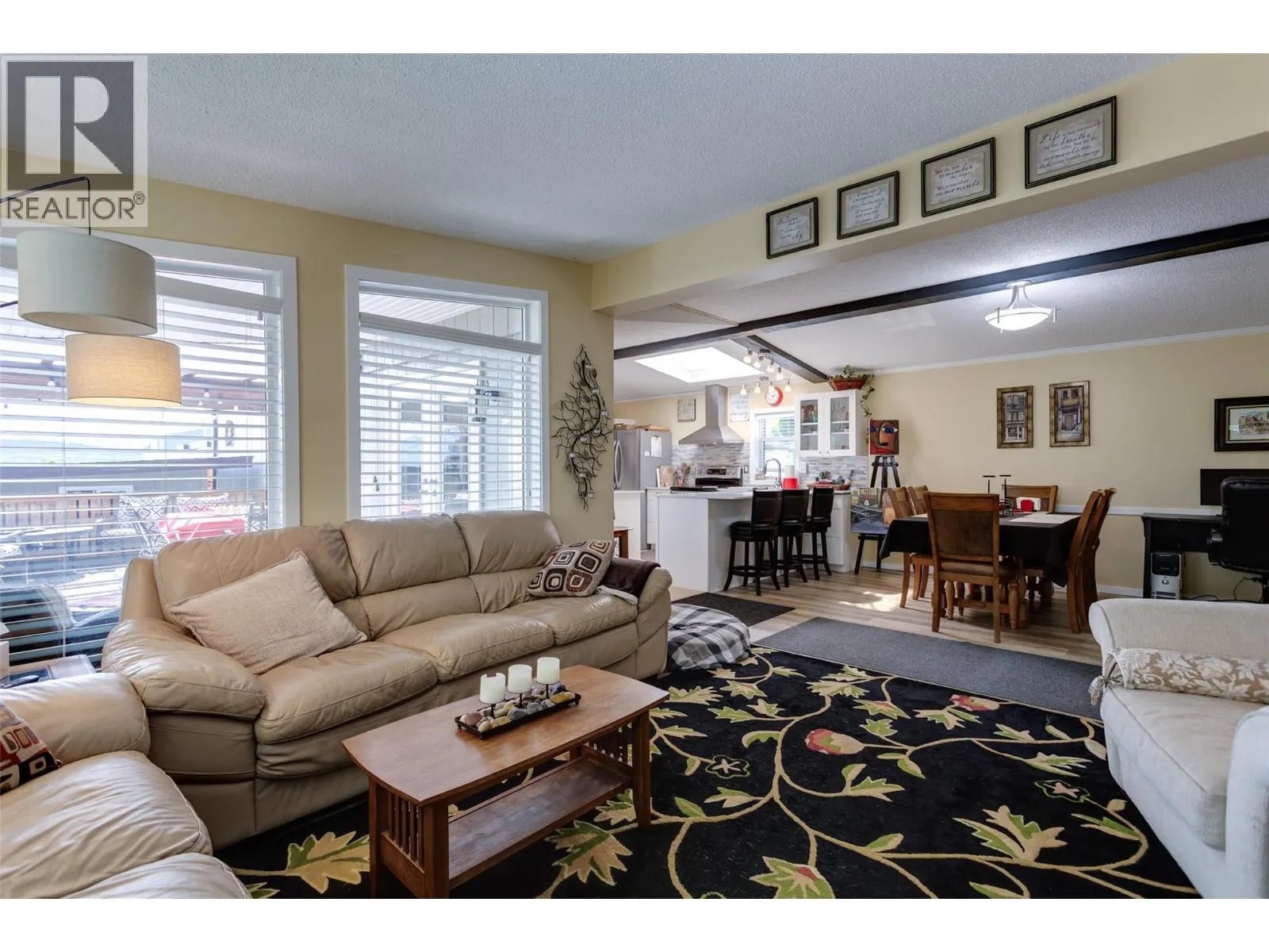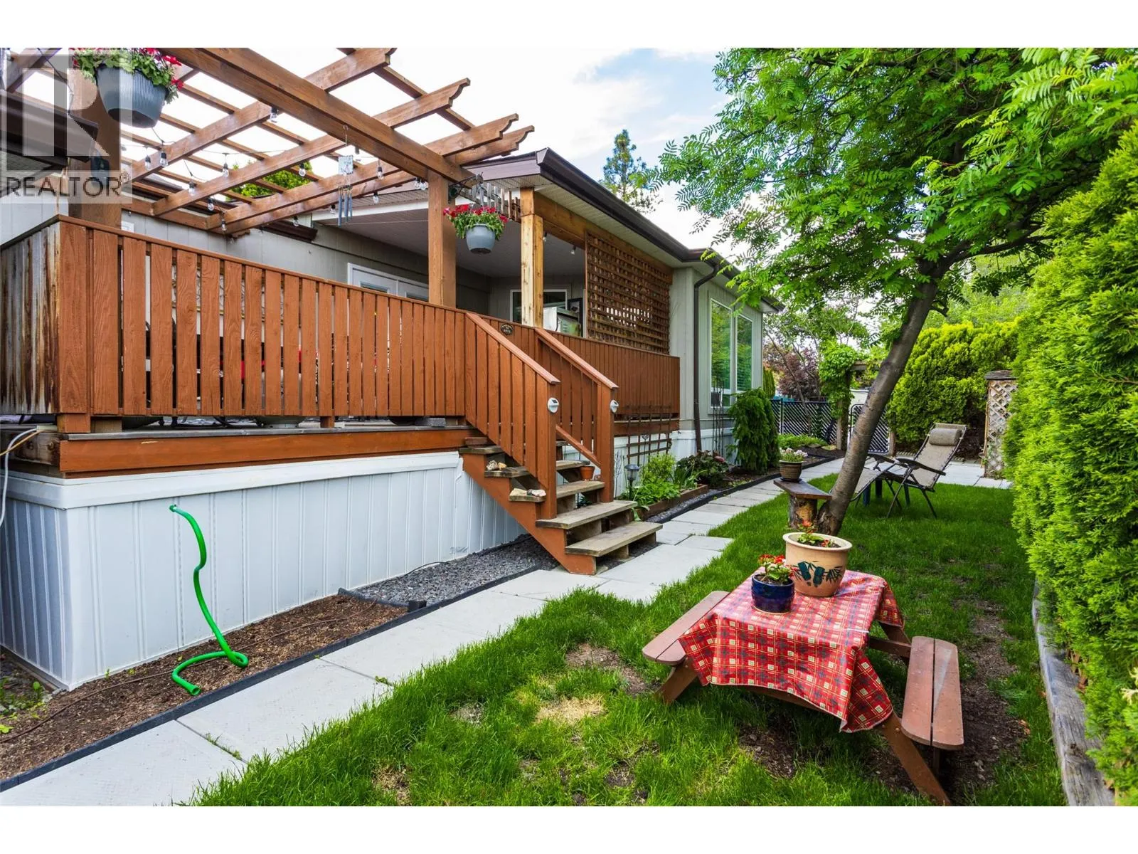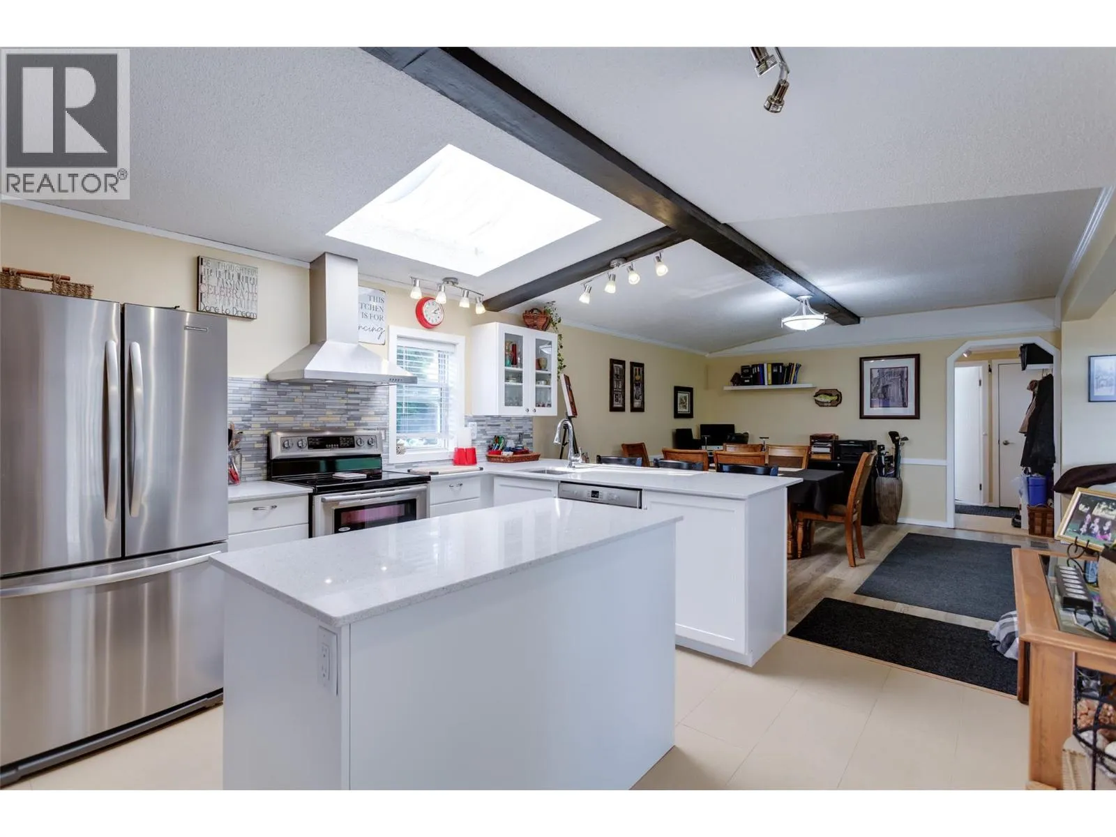 Welcome to this pristine and beautifully updated 2-bedroom, 2-bathroom home in Berkley Estates. Families Welcomed. Perfectly situated at the end of a quiet no-thru road, this home offers privacy with only one neighbor and stunning views of the mountains and a peek-a-boo lakeview from your oversized, partially covered south-facing deckâideal for outdoor dining and relaxing. Inside, you'll find a thoughtful layout with bedrooms at opposite ends for added privacy. The spacious primary suite boasts a full ensuite bathroom with a luxurious jacuzzi tub. Enjoy the modern, fully updated kitchen featuring quartz countertops, a large island, stylish backsplash, newer cabinetry, stainless steel appliances, and ample pantry storage. The generously sized dining and living rooms are flooded with natural light and centered around a cozy gas fireplaceâperfect for entertaining or quiet evenings in. Updates included: A/C & Hot Water Tank 2019, Roof & Windows 2015, Vinyl Flooring 2025, S/S Dishwasher & Microwave 2023, Tile & Freshly Painted 2023â2025, Poly-B Plumbing replaced 2025. Parking for 3 vehicles, Workshop: Included out back.Located just minutes from shopping, wineries, golf courses, and local services, Berkley Estates offers a vibrant and convenient lifestyle. 2 pets per household. Pad Rent is $610.00 per month (Includes water) Lease expires 2037. Don't miss this rare opportunity to own a move-in-ready home in a prime location with all the major updates already done! Measurements taken from I-Guide. (id:27476)