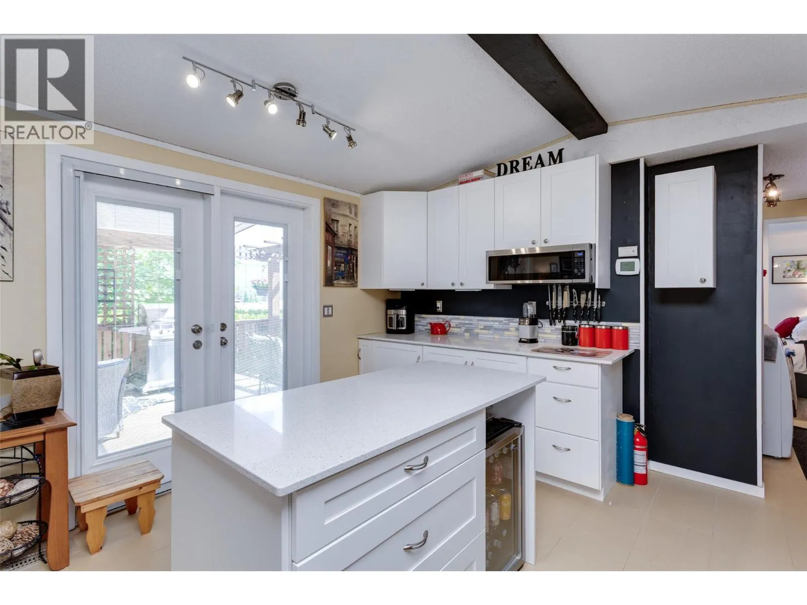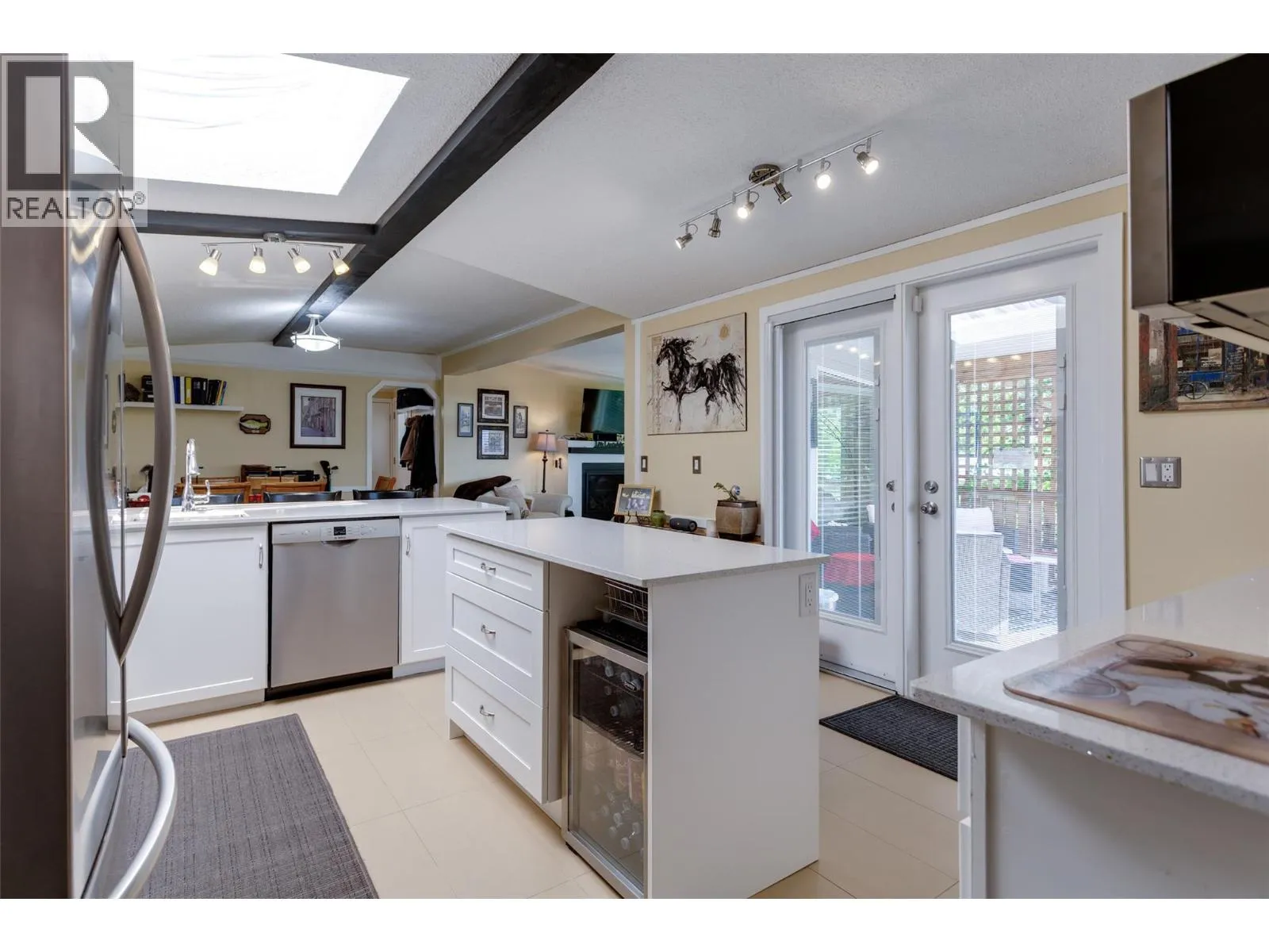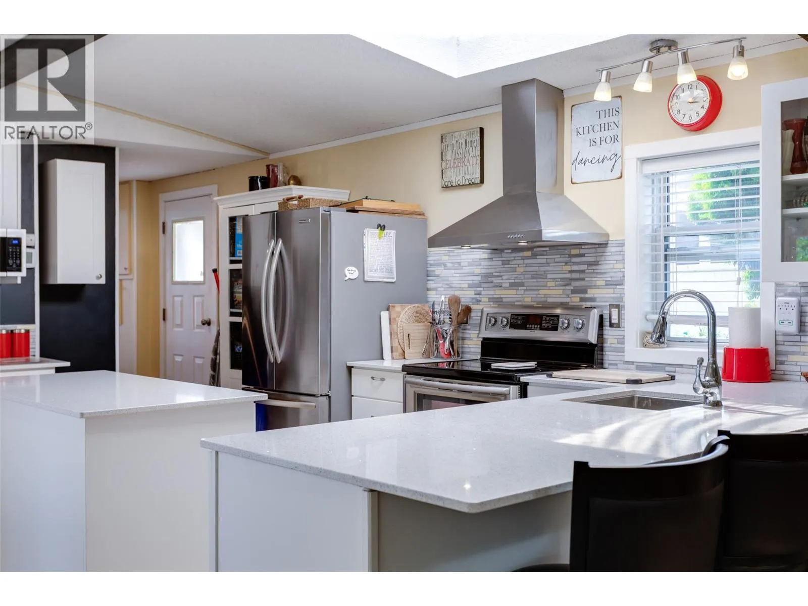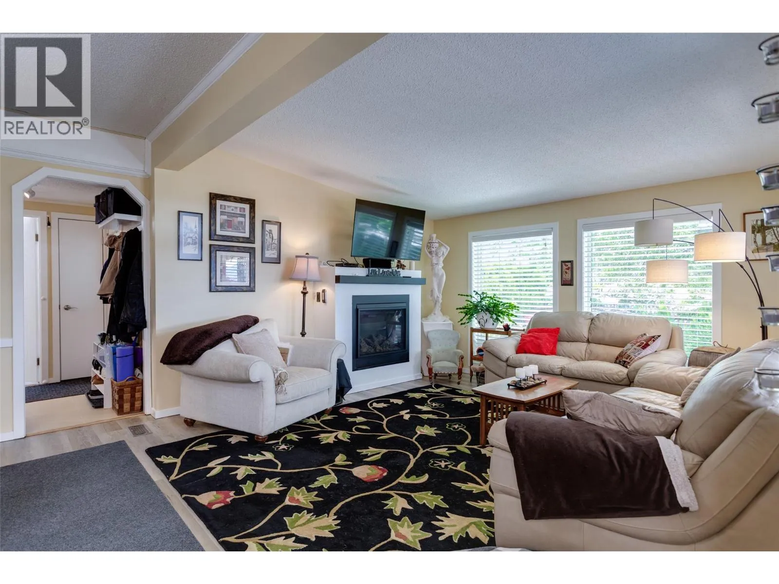 Welcome to this pristine and beautifully updated 2-bedroom, 2-bathroom home in Berkley Estates. Families Welcomed. Perfectly situated at the end of a quiet no-thru road, this home offers privacy with only one neighbor and stunning views of the mountains and a peek-a-boo lakeview from your oversized, partially covered south-facing deckâideal for outdoor dining and relaxing. Inside, you'll find a thoughtful layout with bedrooms at opposite ends for added privacy. The spacious primary suite boasts a full ensuite bathroom with a luxurious jacuzzi tub. Enjoy the modern, fully updated kitchen featuring quartz countertops, a large island, stylish backsplash, newer cabinetry, stainless steel appliances, and ample pantry storage. The generously sized dining and living rooms are flooded with natural light and centered around a cozy gas fireplaceâperfect for entertaining or quiet evenings in. Updates included: A/C & Hot Water Tank 2019, Roof & Windows 2015, Vinyl Flooring 2025, S/S Dishwasher & Microwave 2023, Tile & Freshly Painted 2023â2025, Poly-B Plumbing replaced 2025. Parking for 3 vehicles, Workshop: Included out back.Located just minutes from shopping, wineries, golf courses, and local services, Berkley Estates offers a vibrant and convenient lifestyle. 2 pets per household. Pad Rent is $610.00 per month (Includes water) Lease expires 2037. Don't miss this rare opportunity to own a move-in-ready home in a prime location with all the major updates already done! Measurements taken from I-Guide. (id:27476)