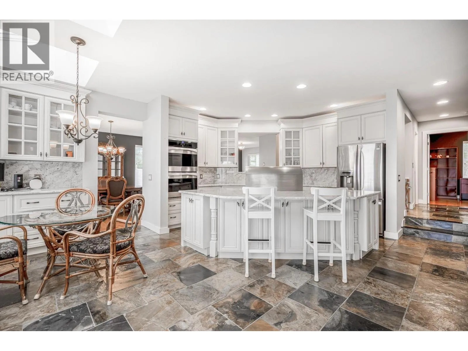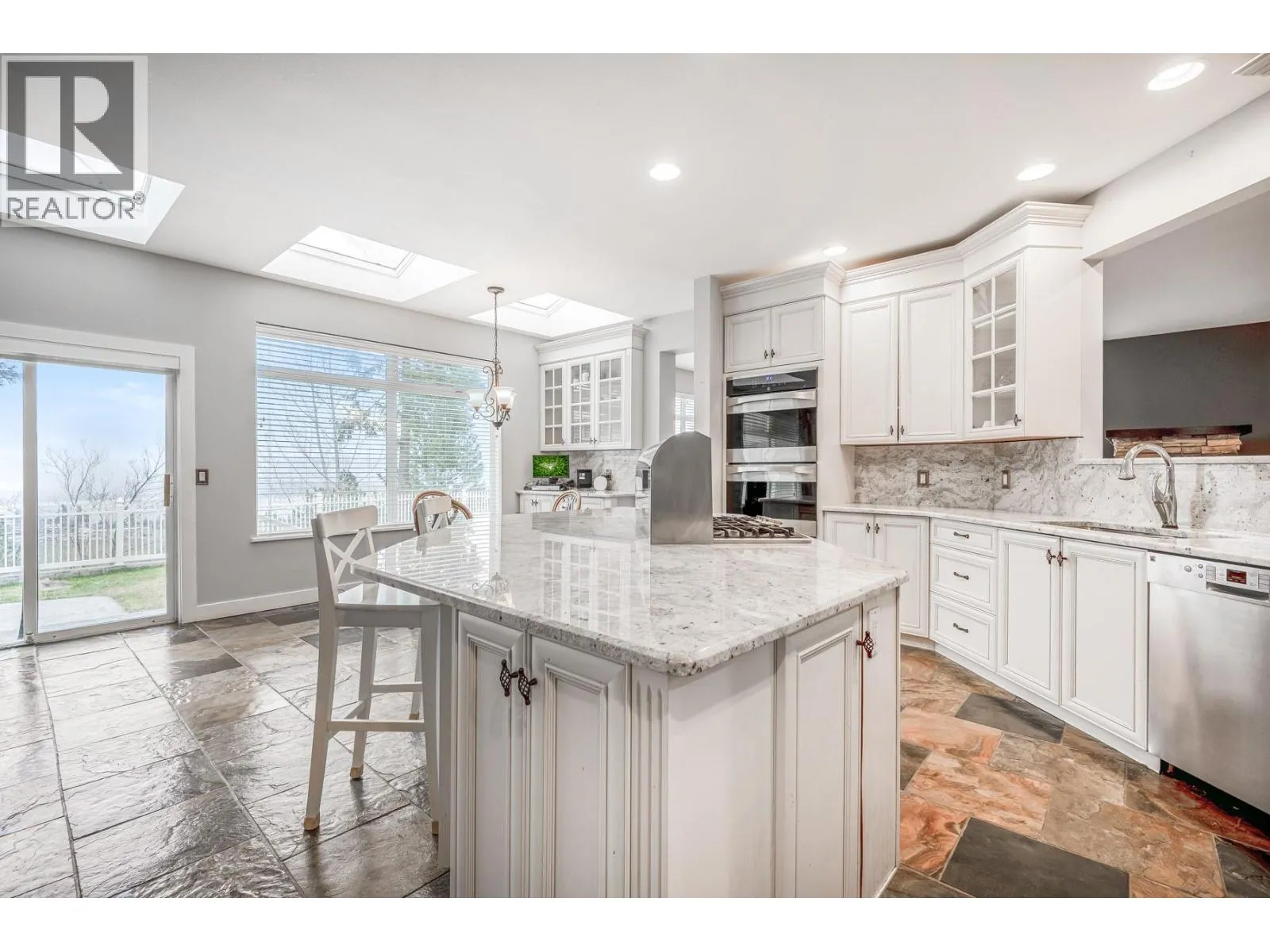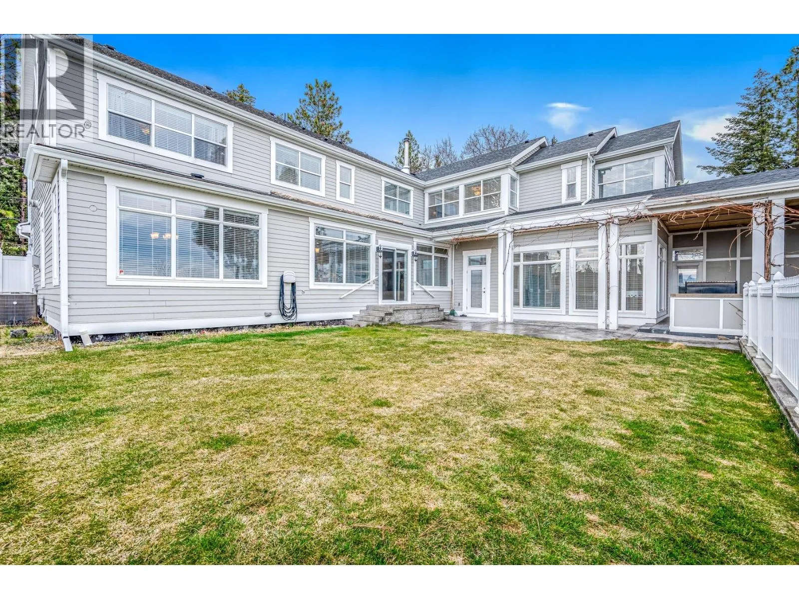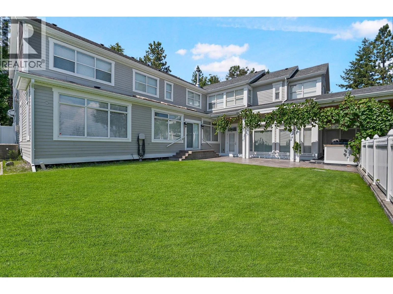 This custom-designed executive residence, perched in prestigious Lakeview Heights, offers an exceptional blend of space, comfort, and Okanagan lifestyle. Spanning over 4,800 square feet on a generous 0.29-acre lot, this beautifully crafted 5-bedroom, 5-bathroom home is tailormade for family living. Inside, youâll find a thoughtfully designed layout featuring a beautifully remodeled kitchen with an oversized island, multiple light-filled living areas, and elegant finishes throughout. The main level offers both formal and casual spaces, a home office, and a spacious recreation room. Upstairs, the luxurious primary suite is joined by 4 additional bedrooms and a versatile loftâideal for a media room, gym, or creative space. The private, fenced backyard is an entertainerâs dream, complete with a covered patio, gas fireplace, and stunning lake and vineyard views. Itâs already prepped for your dream outdoor oasis with an engineered retaining wall in place for a future pool. The lower level also features a bonus room, perfect for a gym or secondary office. Situated on a quiet, no through road and nestled beside a large park and scenic trail network, this home offers unparalleled privacy, tranquility, and access to nature. Unwind by one of the three cozy fireplaces, or soak in the unobstructed lake, vineyard, and mountain views from your expansive windows and elevated deck spaces. This is more than just a houseâitâs a place where your family can thrive. (id:27476)