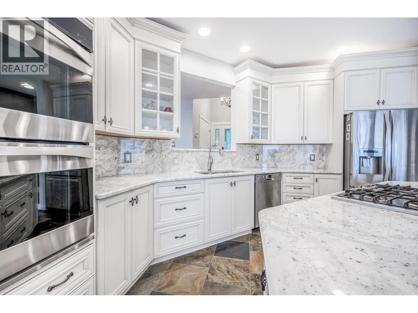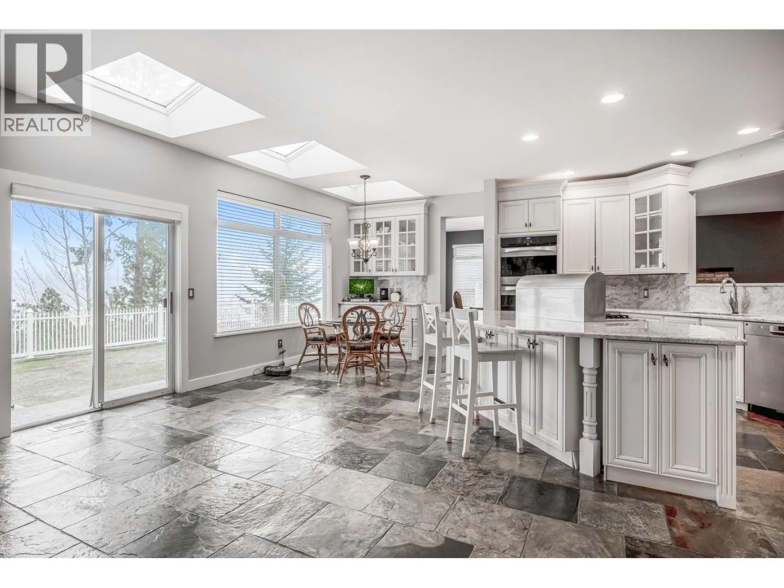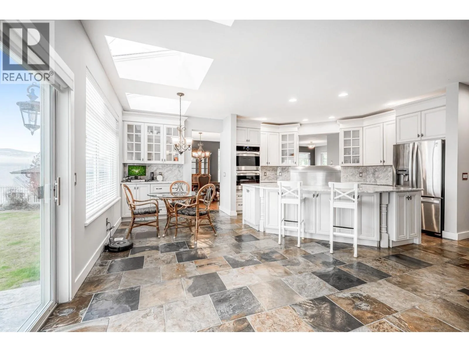 This custom-designed executive residence, perched in prestigious Lakeview Heights, offers an exceptional blend of space, comfort, and Okanagan lifestyle. Spanning over 4,800 square feet on a generous 0.29-acre lot, this beautifully crafted 5-bedroom, 5-bathroom home is tailormade for family living. Inside, youâll find a thoughtfully designed layout featuring a beautifully remodeled kitchen with an oversized island, multiple light-filled living areas, and elegant finishes throughout. The main level offers both formal and casual spaces, a home office, and a spacious recreation room. Upstairs, the luxurious primary suite is joined by 4 additional bedrooms and a versatile loftâideal for a media room, gym, or creative space. The private, fenced backyard is an entertainerâs dream, complete with a covered patio, gas fireplace, and stunning lake and vineyard views. Itâs already prepped for your dream outdoor oasis with an engineered retaining wall in place for a future pool. The lower level also features a bonus room, perfect for a gym or secondary office. Situated on a quiet, no through road and nestled beside a large park and scenic trail network, this home offers unparalleled privacy, tranquility, and access to nature. Unwind by one of the three cozy fireplaces, or soak in the unobstructed lake, vineyard, and mountain views from your expansive windows and elevated deck spaces. This is more than just a houseâitâs a place where your family can thrive. (id:27476)