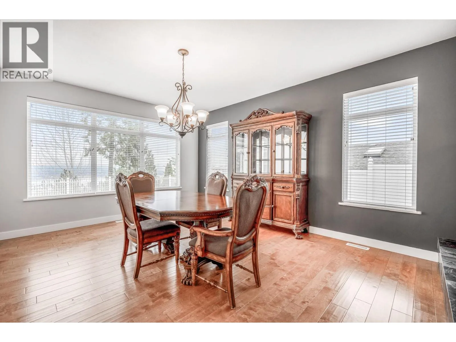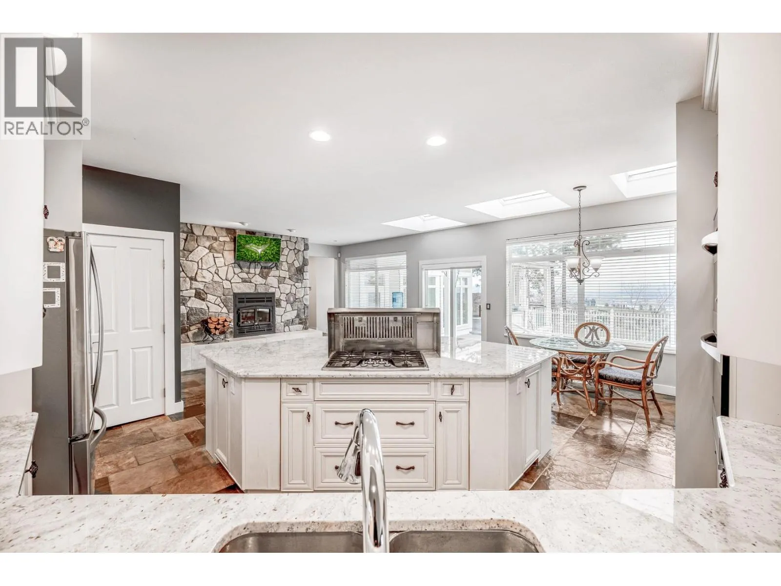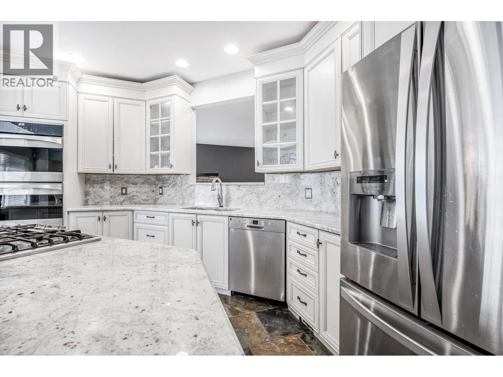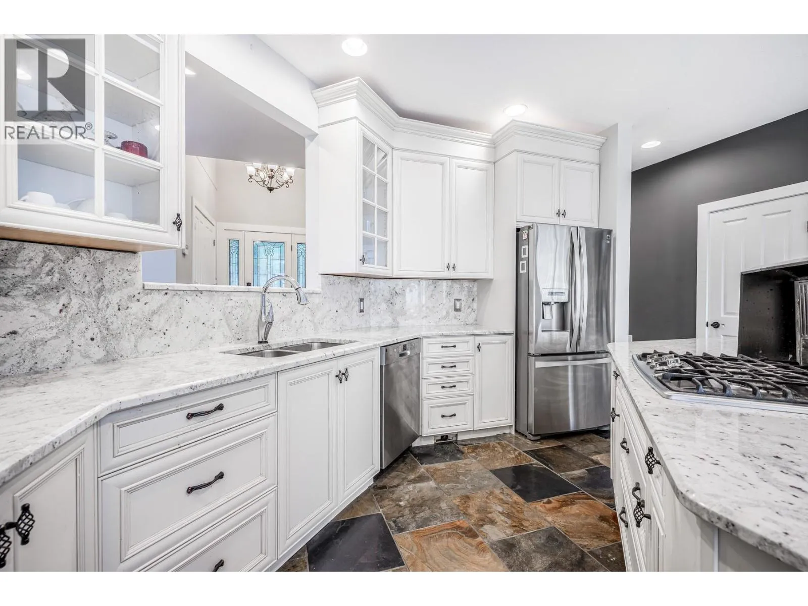 This custom-designed executive residence, perched in prestigious Lakeview Heights, offers an exceptional blend of space, comfort, and Okanagan lifestyle. Spanning over 4,800 square feet on a generous 0.29-acre lot, this beautifully crafted 5-bedroom, 5-bathroom home is tailormade for family living. Inside, youâll find a thoughtfully designed layout featuring a beautifully remodeled kitchen with an oversized island, multiple light-filled living areas, and elegant finishes throughout. The main level offers both formal and casual spaces, a home office, and a spacious recreation room. Upstairs, the luxurious primary suite is joined by 4 additional bedrooms and a versatile loftâideal for a media room, gym, or creative space. The private, fenced backyard is an entertainerâs dream, complete with a covered patio, gas fireplace, and stunning lake and vineyard views. Itâs already prepped for your dream outdoor oasis with an engineered retaining wall in place for a future pool. The lower level also features a bonus room, perfect for a gym or secondary office. Situated on a quiet, no through road and nestled beside a large park and scenic trail network, this home offers unparalleled privacy, tranquility, and access to nature. Unwind by one of the three cozy fireplaces, or soak in the unobstructed lake, vineyard, and mountain views from your expansive windows and elevated deck spaces. This is more than just a houseâitâs a place where your family can thrive. (id:27476)
