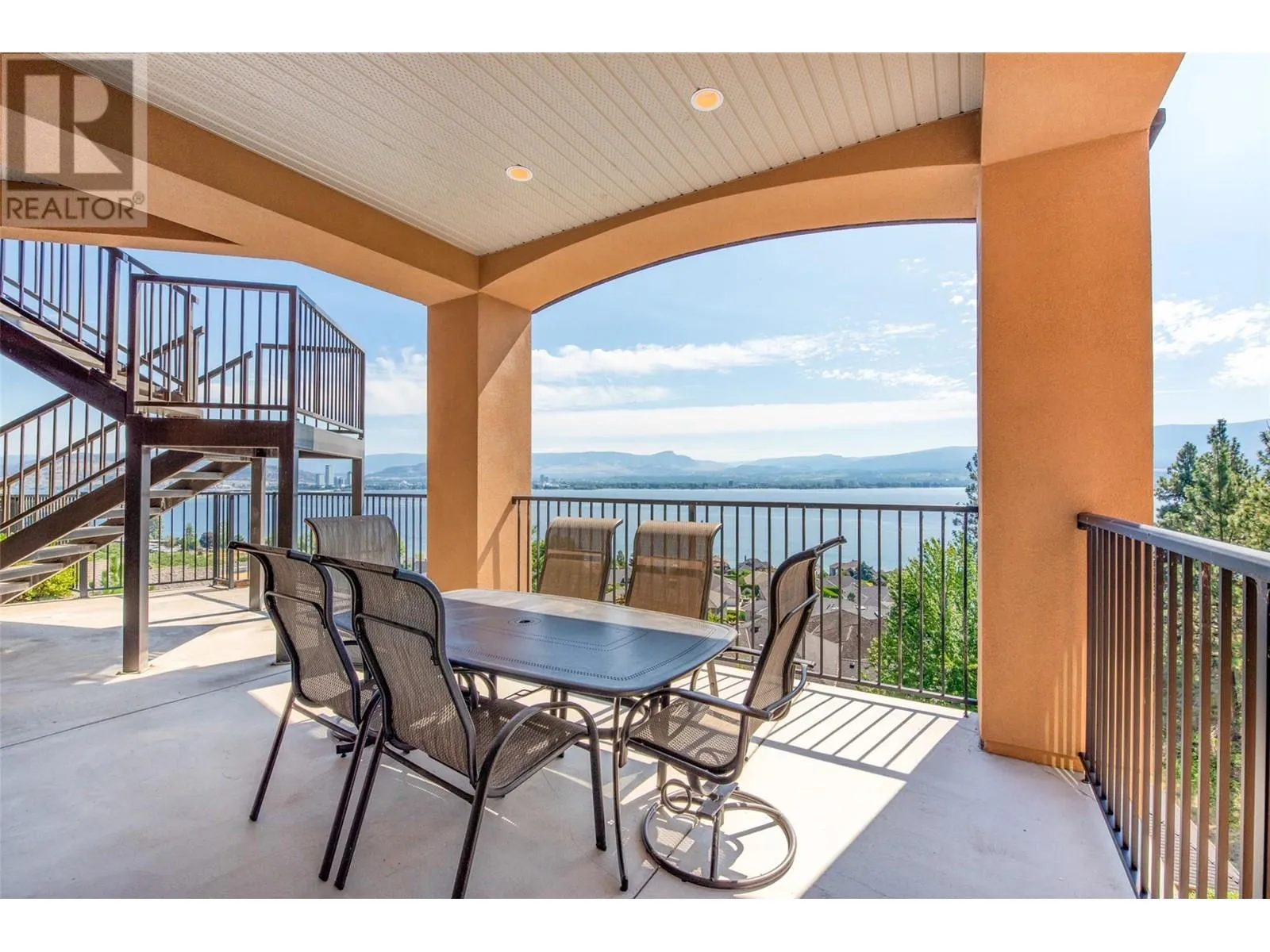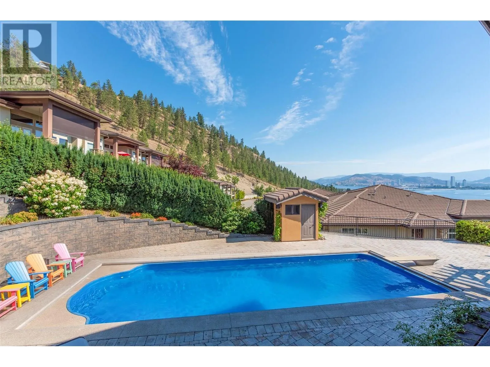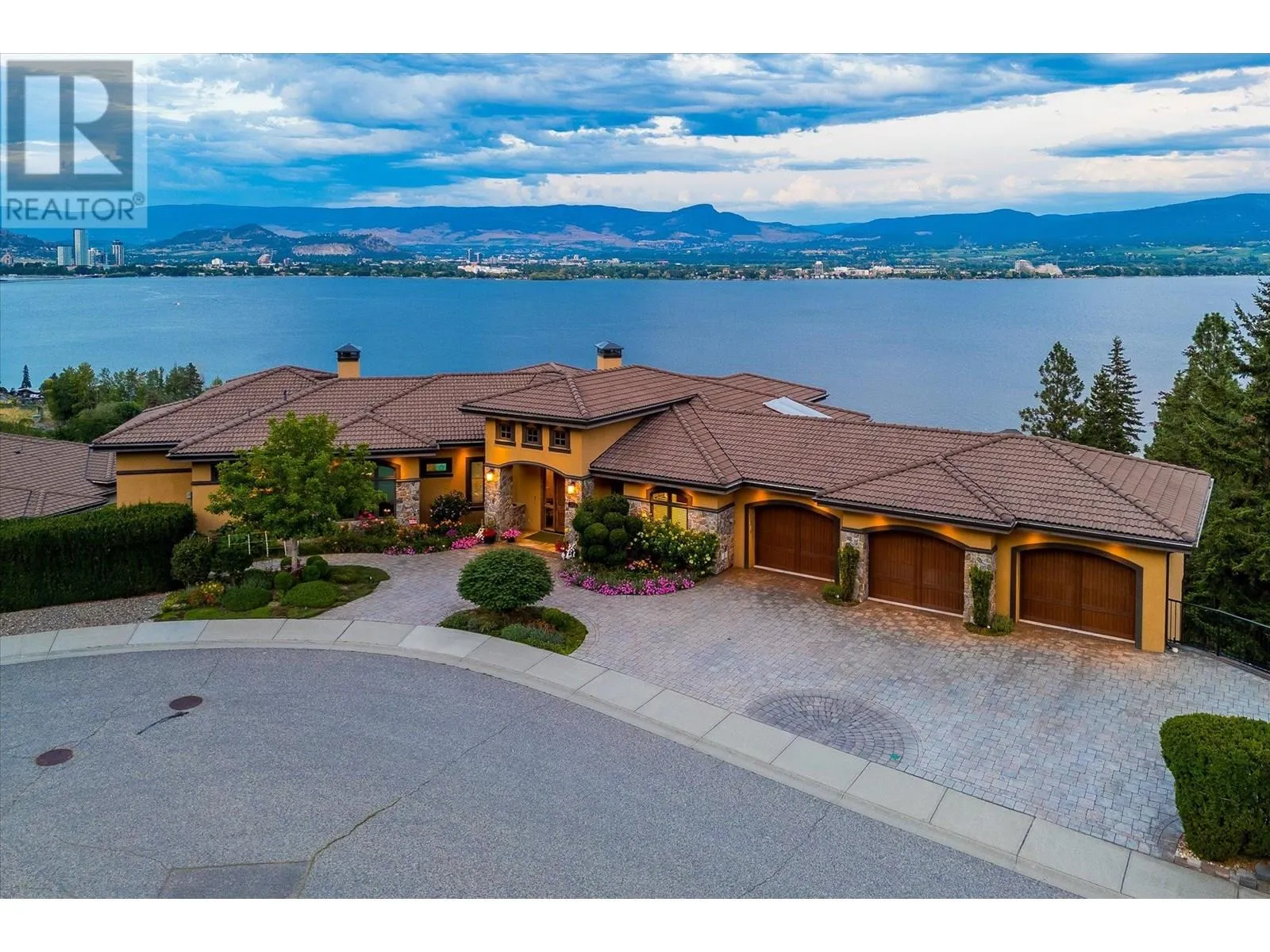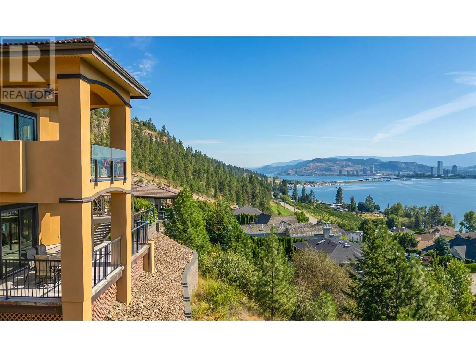 PANORAMIC LAKE VIEWS â JUST 10 MINS TO DOWNTOWN! With Tuscan flair & resort-style luxury, this 7,200 sqft Casa Loma estate captures the essence of Okanagan living. Unwind in your home theatre, play in your private indoor sports court, or spend the afternoon lounging by the pool! Featuring a bright open floor plan, the main level offers effortless day-to-day living with the primary bedroom, office, kitchen, triple garage + RV parking & main entertaining spaces all on one level. Designed to showcase breathtaking views from nearly every room, the chefâs kitchen features a massive island, 6-burner gas range & two pantriesâflowing into the dining room with easy access to the covered deck. Extensive hardwood floors continue into the living area, where a gas FP creates a cozy focal point & accordion-style glass wall opens to a 2nd covered balcony with a remote screen for shade as you relax & watch the city lights at night! Down the hall, the primary retreat offers a FP & a walk-in closet with built-in laundry, steam shower & lakeview soaker tub! Take the elevator down to the walk-out lower level with a theatre, games room, 2 bedrooms, a sports court & changeroom with outdoor access to the pool deck & hot tub. Host unforgettable evenings from the outdoor kitchen & gather around the firepit surrounded by terraced landscaping, gardens & lake views! Situated on a private double lot, this home offers luxury & lifestyle just 5 mins to Kalamoir trails, parks, the beach & boat launch! (id:27476)