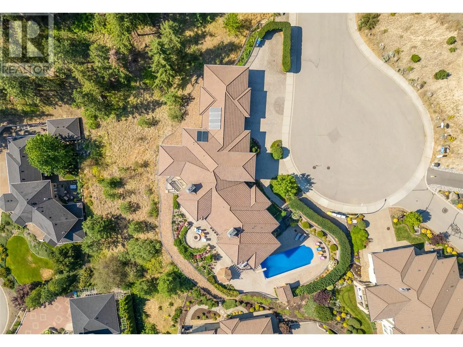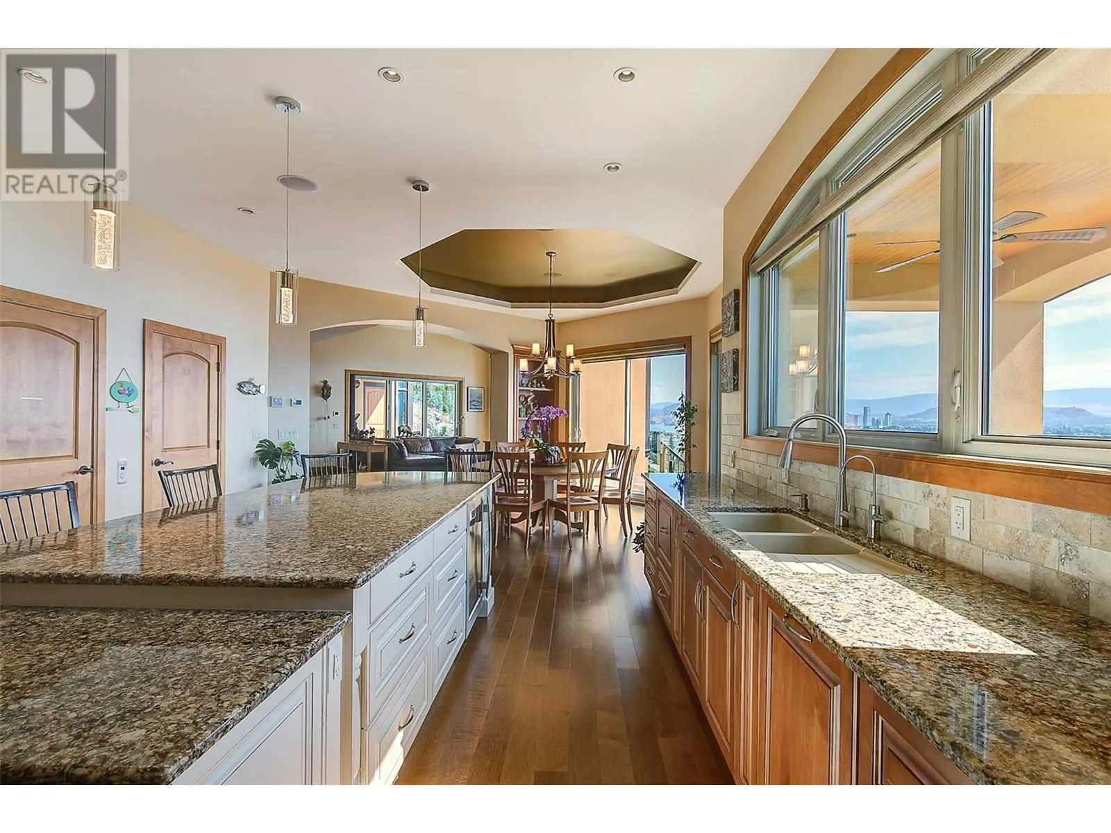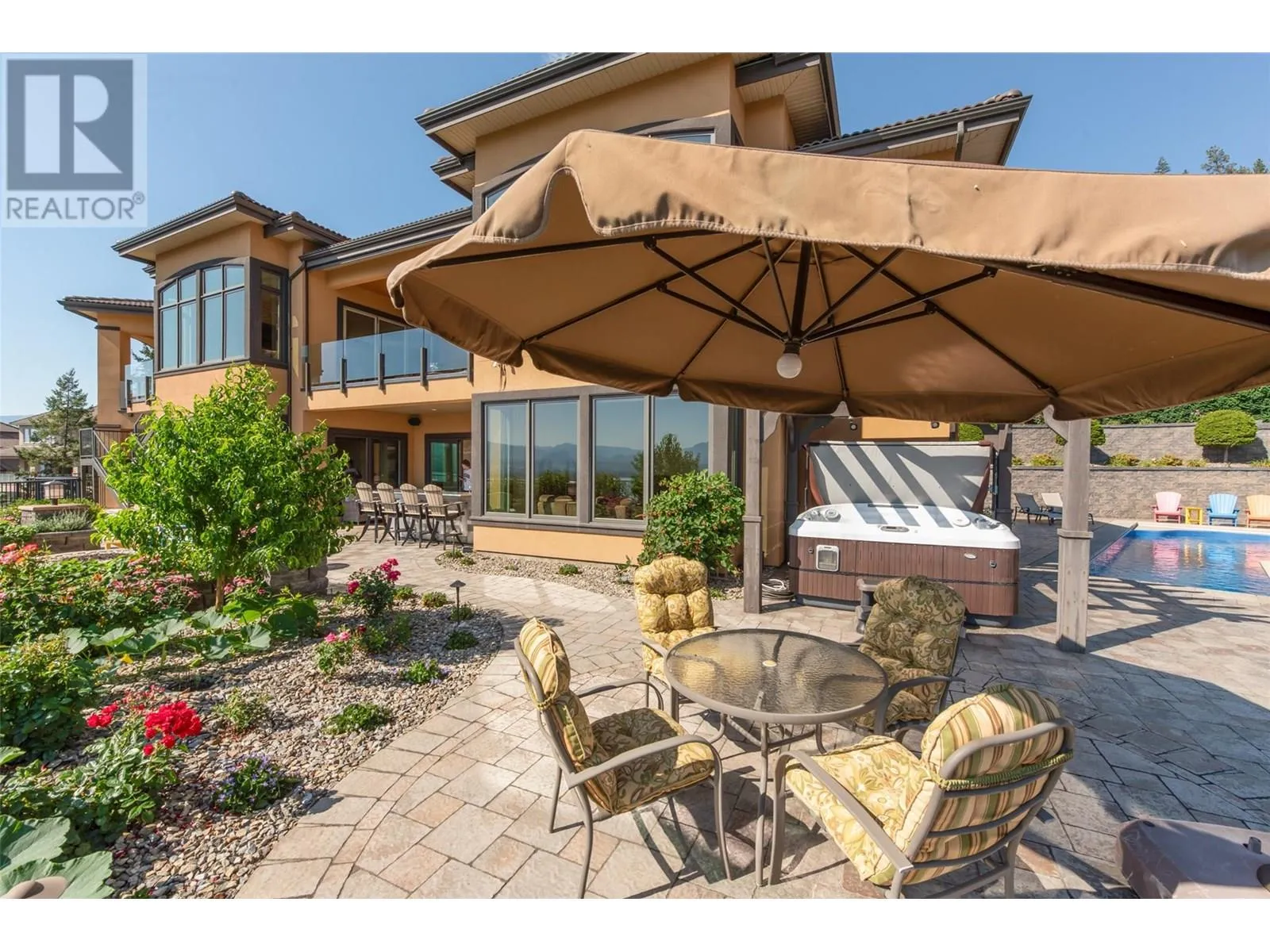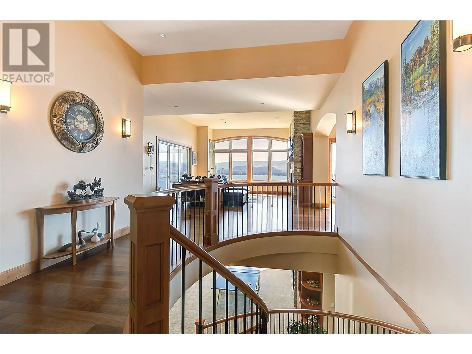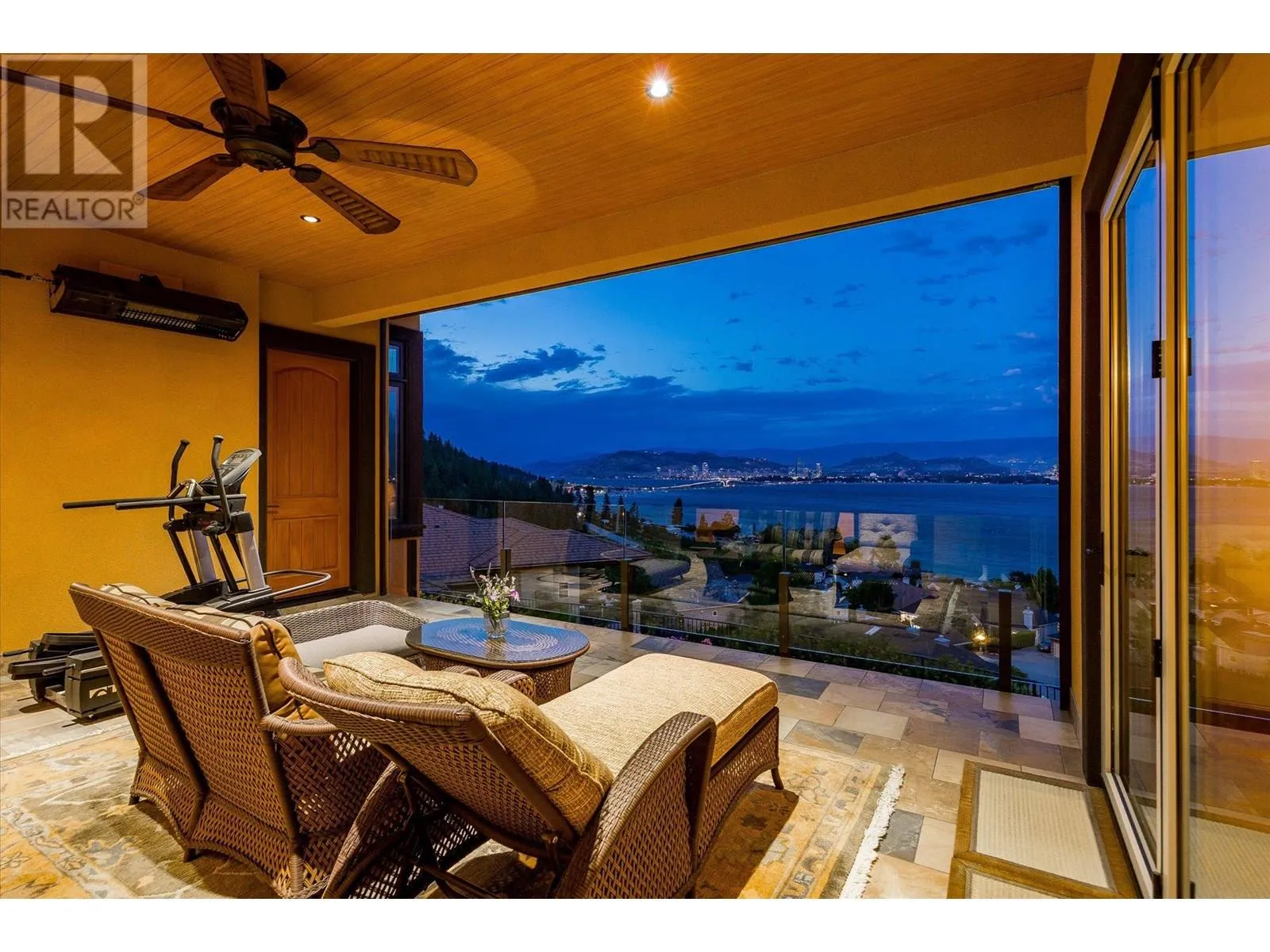PANORAMIC LAKE VIEWS â JUST 10 MINS TO DOWNTOWN! With Tuscan flair & resort-style luxury, this 7,200 sqft Casa Loma estate captures the essence of Okanagan living. Unwind in your home theatre, play in your private indoor sports court, or spend the afternoon lounging by the pool! Featuring a bright open floor plan, the main level offers effortless day-to-day living with the primary bedroom, office, kitchen, triple garage + RV parking & main entertaining spaces all on one level. Designed to showcase breathtaking views from nearly every room, the chefâs kitchen features a massive island, 6-burner gas range & two pantriesâflowing into the dining room with easy access to the covered deck. Extensive hardwood floors continue into the living area, where a gas FP creates a cozy focal point & accordion-style glass wall opens to a 2nd covered balcony with a remote screen for shade as you relax & watch the city lights at night! Down the hall, the primary retreat offers a FP & a walk-in closet with built-in laundry, steam shower & lakeview soaker tub! Take the elevator down to the walk-out lower level with a theatre, games room, 2 bedrooms, a sports court & changeroom with outdoor access to the pool deck & hot tub. Host unforgettable evenings from the outdoor kitchen & gather around the firepit surrounded by terraced landscaping, gardens & lake views! Situated on a private double lot, this home offers luxury & lifestyle just 5 mins to Kalamoir trails, parks, the beach & boat launch! (id:27476)