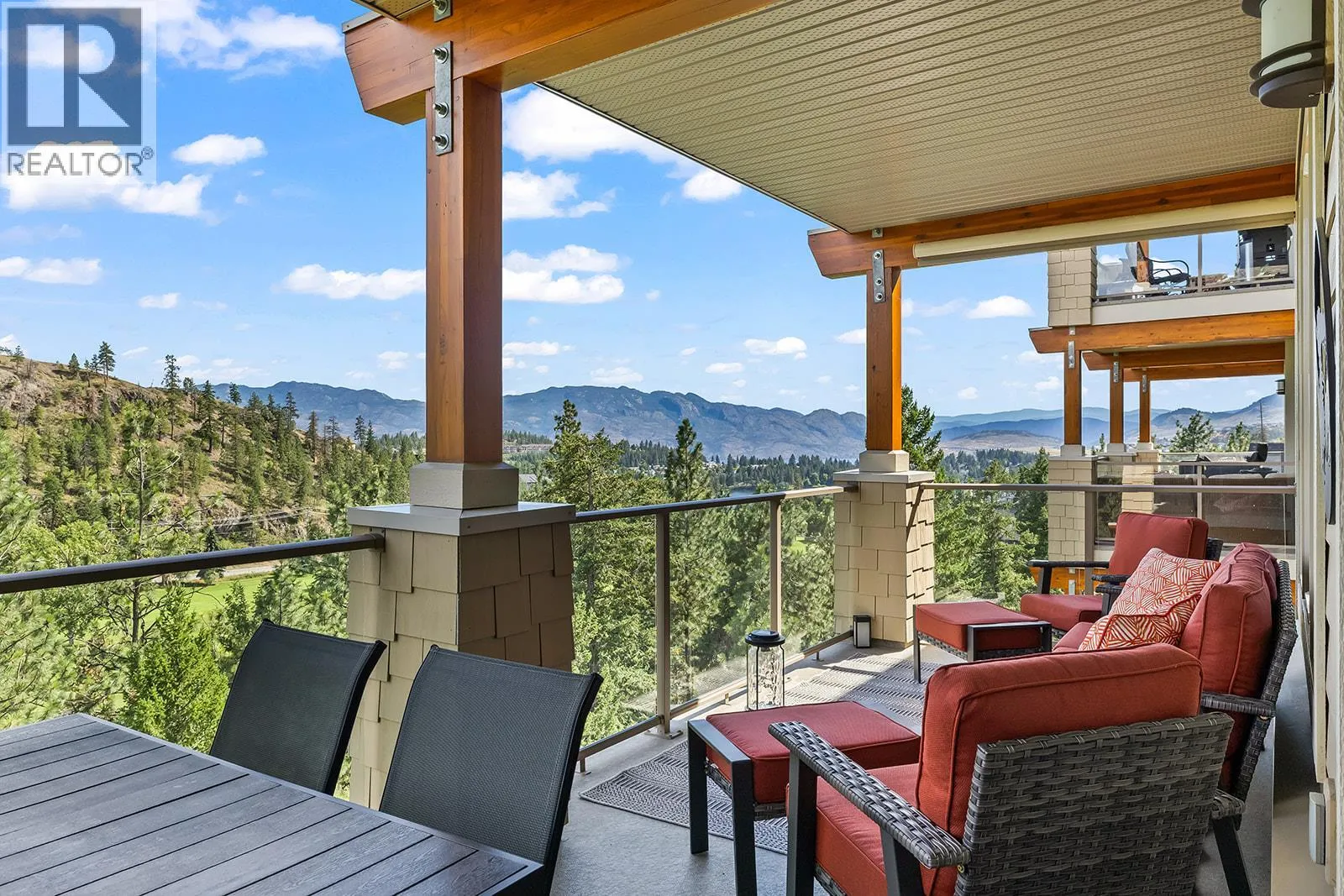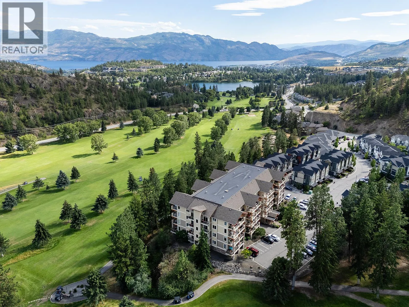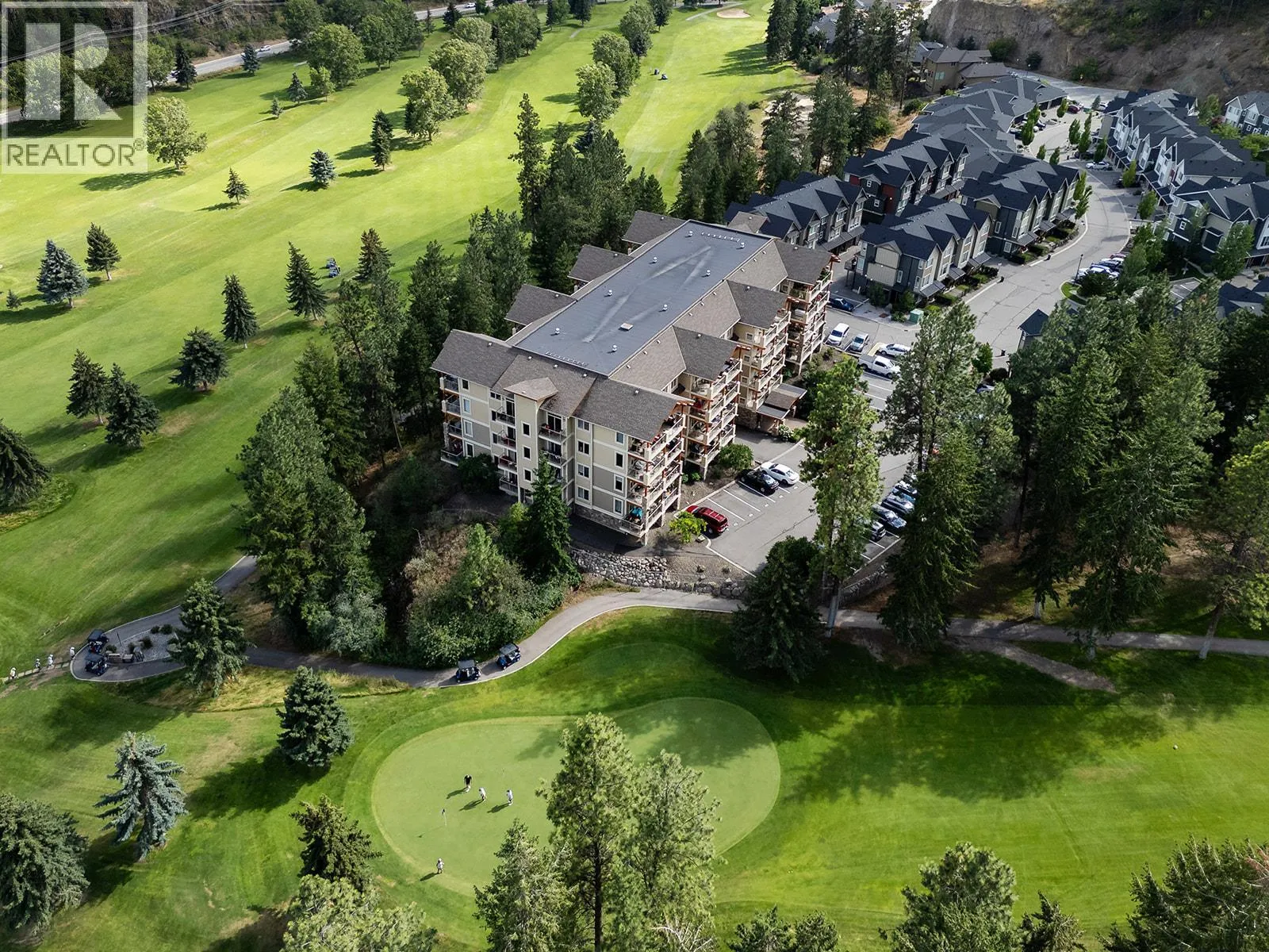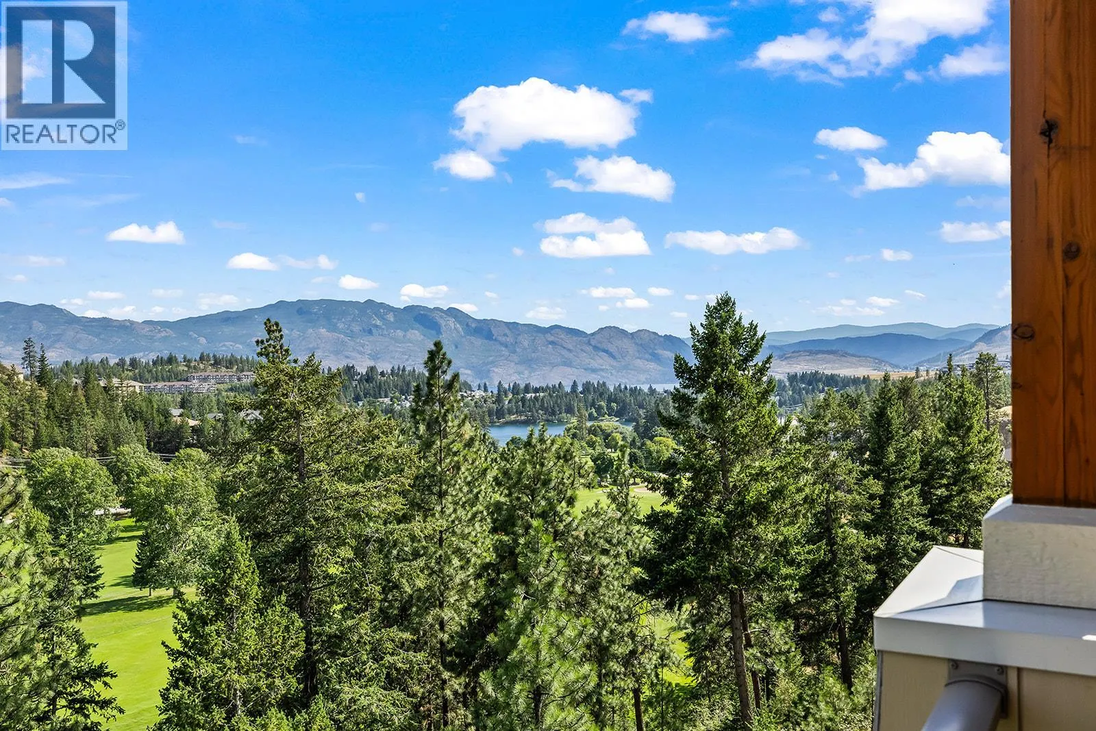 Welcome to this stylish 2 bedroom, 2 bathroom TURN-KEY condo offering breathtaking views that capture the best of the Okanagan lifestyle. Enjoy panoramic vistas on your expansive covered deck âfrom Shannon and Okanagan Lakes to the south, to the rolling greens of the surrounding golf course, and sparkling city lights to the north. Inside, high ceilings and large windows create a bright, airy feel, enhanced by tasteful furniture purchased in 2023 (yes, it can stay!) fresh paint, newer carpet, upgraded appliances, modern light and plumbing fixtures, custom window coverings, and a stunning built-in cabinet with a statement wall treatment. West Coast lodge-style architecture defines the exterior, with cedar beams and shaker-style siding, while Tuscan-inspired touches inside include granite countertops, basin sinks, crown mouldings, and a charming arched niche with recessed lighting. Located at Eagle Terrace next to Shannon Lake Golf Course, youâll enjoy more than just great golfâdine out steps from home at Courses Restaurant and soak in the beauty and convenience of this unique location. (id:27476)