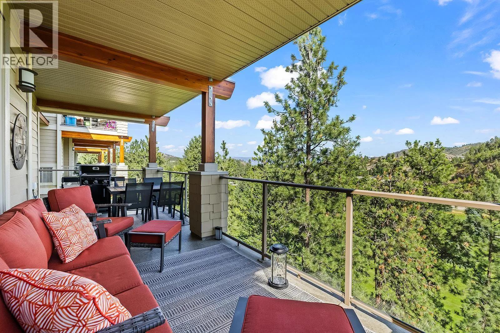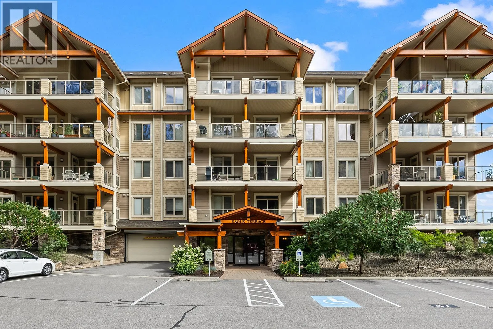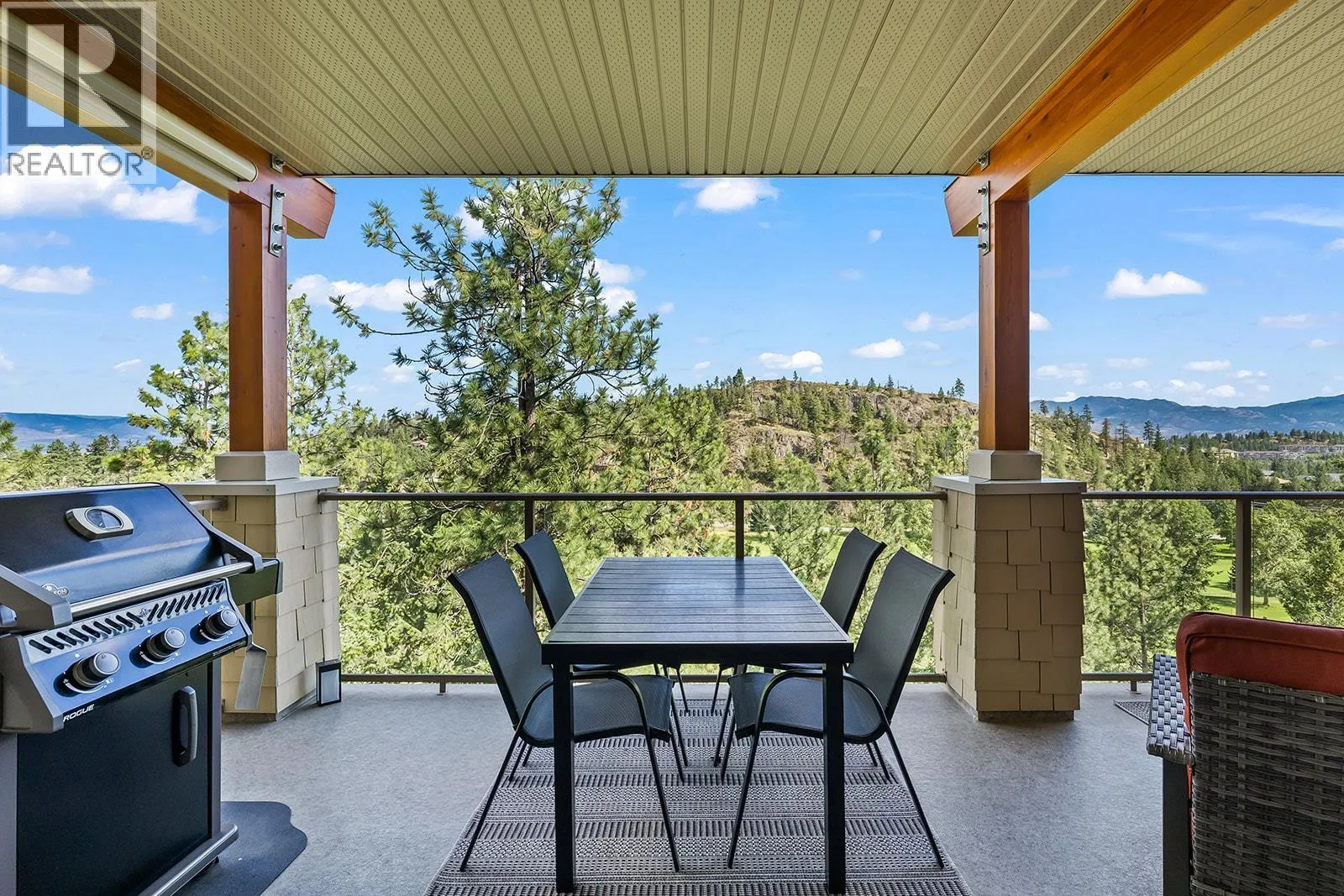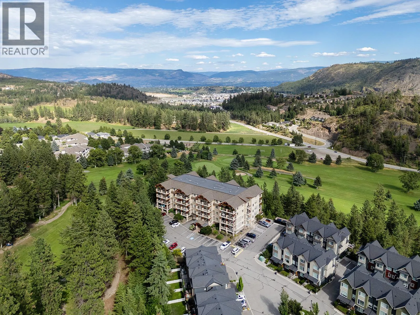 Welcome to this stylish 2 bedroom, 2 bathroom TURN-KEY condo offering breathtaking views that capture the best of the Okanagan lifestyle. Enjoy panoramic vistas on your expansive covered deck âfrom Shannon and Okanagan Lakes to the south, to the rolling greens of the surrounding golf course, and sparkling city lights to the north. Inside, high ceilings and large windows create a bright, airy feel, enhanced by tasteful furniture purchased in 2023 (yes, it can stay!) fresh paint, newer carpet, upgraded appliances, modern light and plumbing fixtures, custom window coverings, and a stunning built-in cabinet with a statement wall treatment. West Coast lodge-style architecture defines the exterior, with cedar beams and shaker-style siding, while Tuscan-inspired touches inside include granite countertops, basin sinks, crown mouldings, and a charming arched niche with recessed lighting. Located at Eagle Terrace next to Shannon Lake Golf Course, youâll enjoy more than just great golfâdine out steps from home at Courses Restaurant and soak in the beauty and convenience of this unique location. (id:27476)
