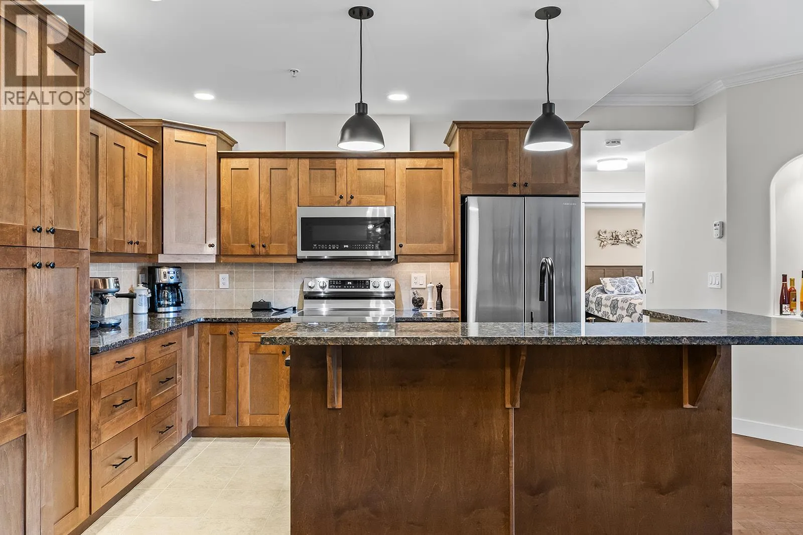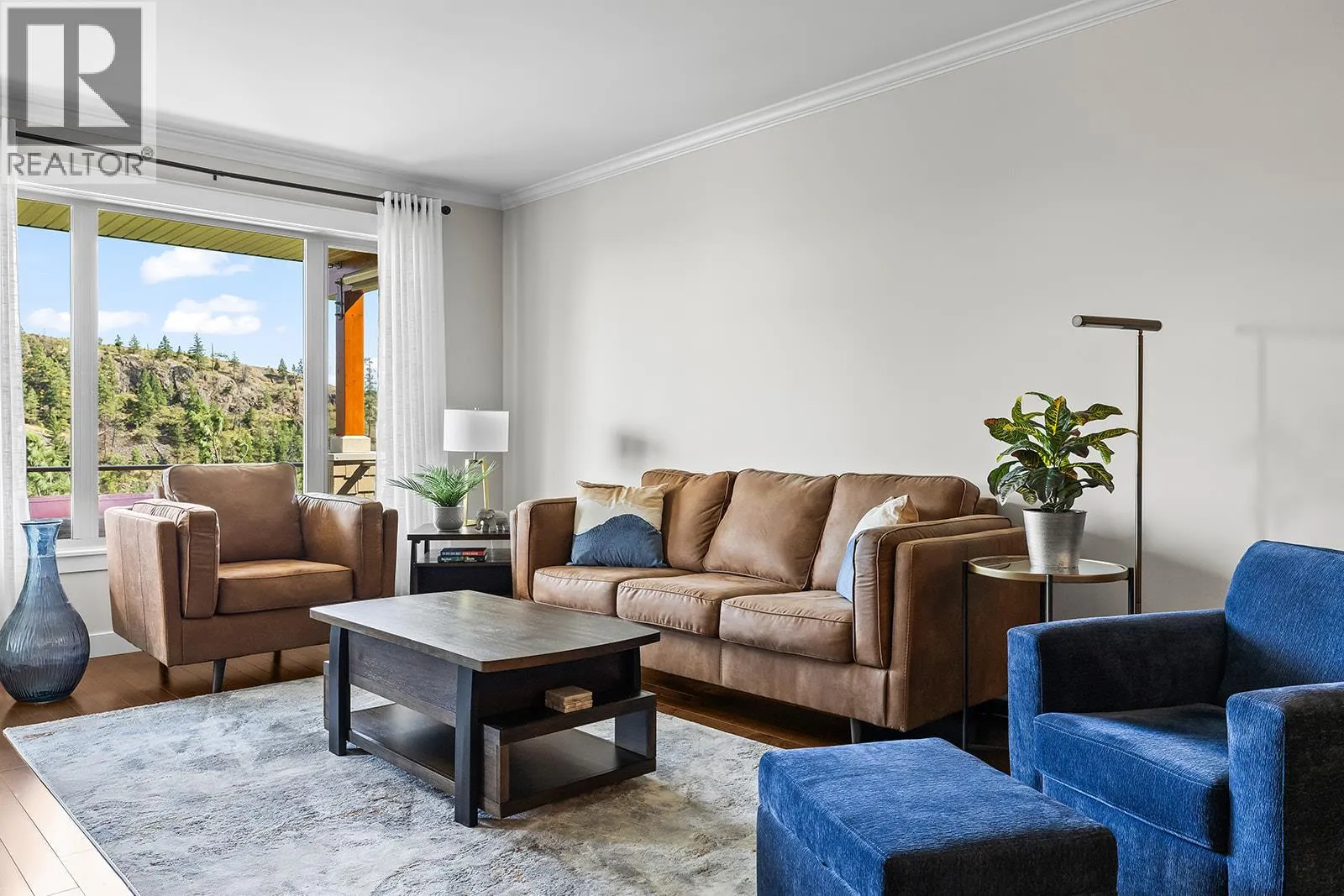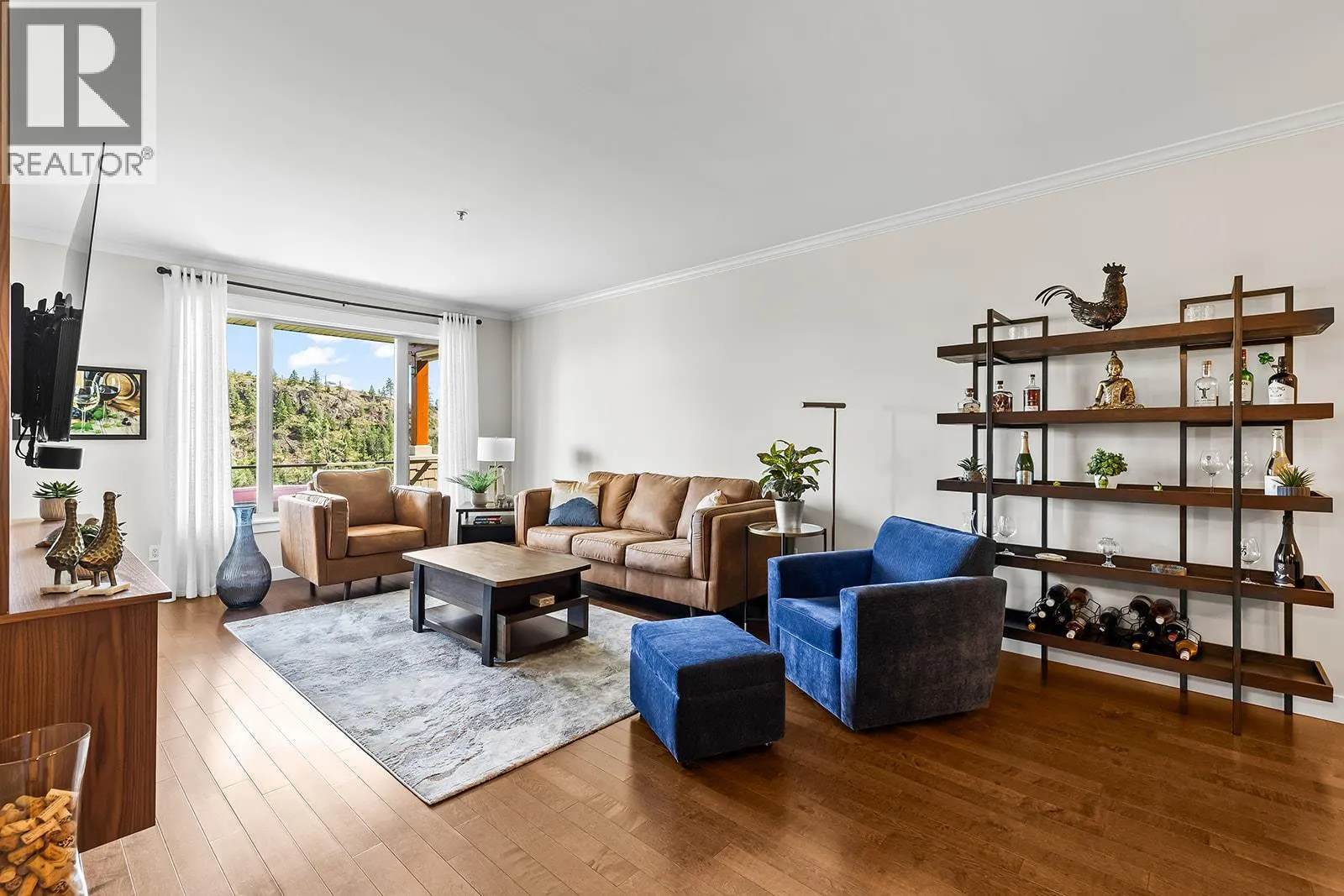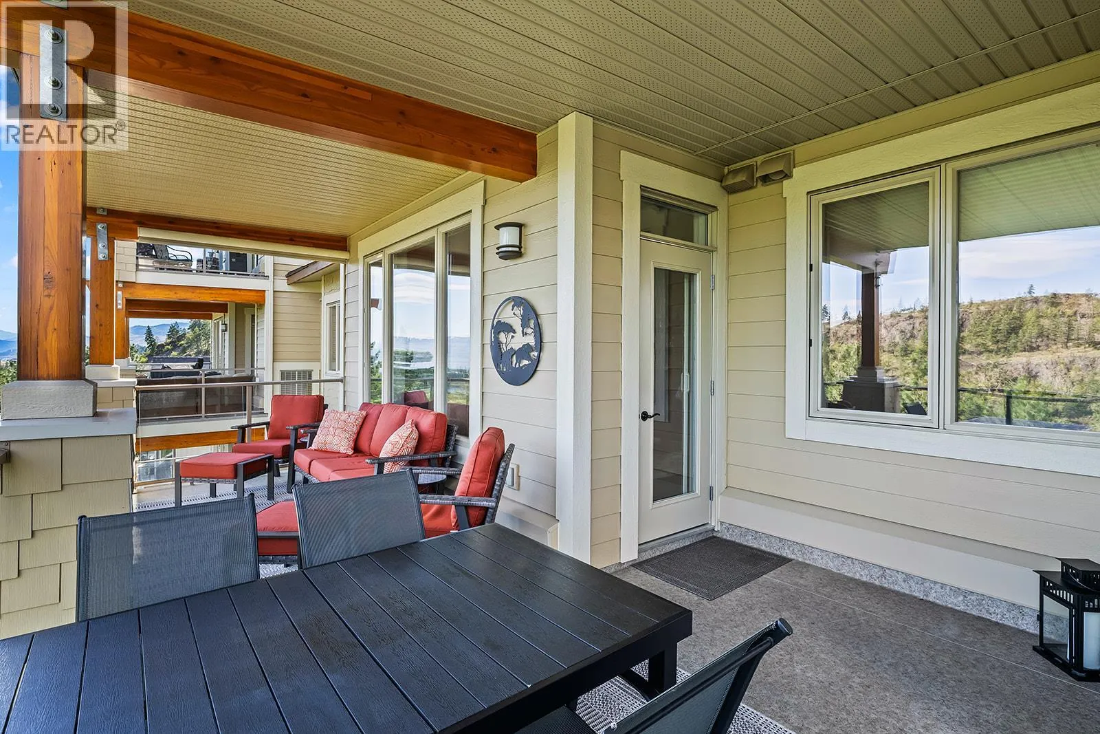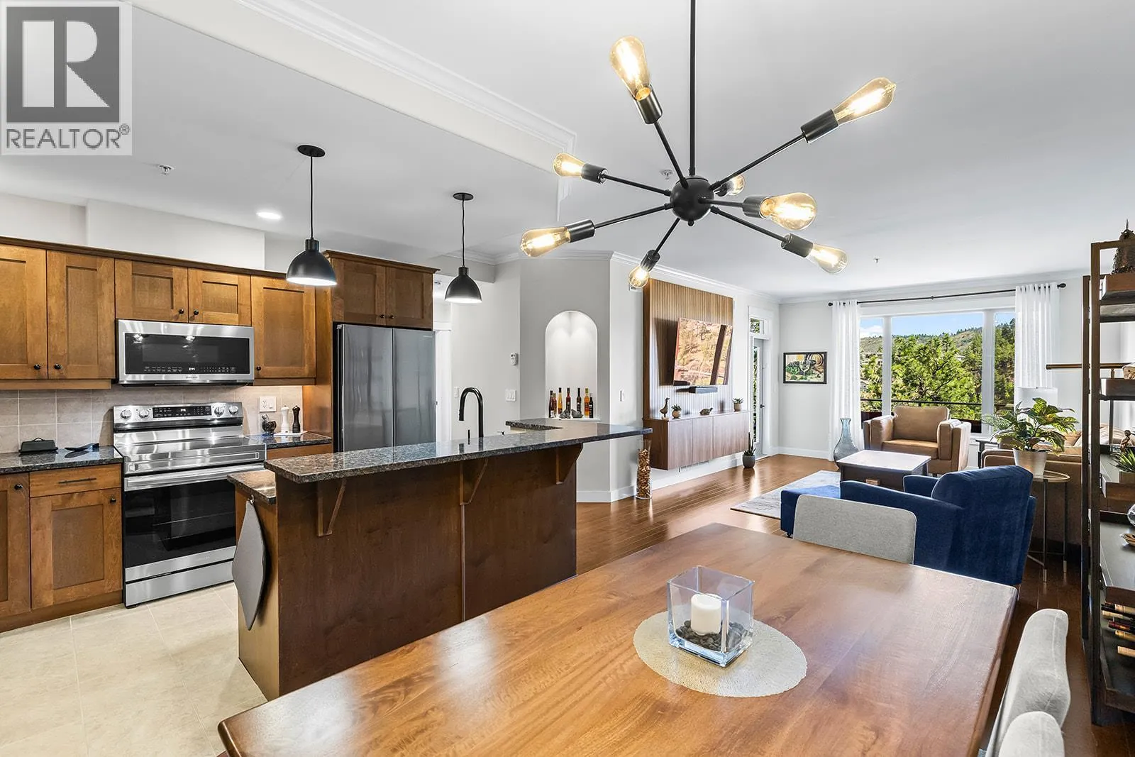 Welcome to this stylish 2 bedroom, 2 bathroom TURN-KEY condo offering breathtaking views that capture the best of the Okanagan lifestyle. Enjoy panoramic vistas on your expansive covered deck âfrom Shannon and Okanagan Lakes to the south, to the rolling greens of the surrounding golf course, and sparkling city lights to the north. Inside, high ceilings and large windows create a bright, airy feel, enhanced by tasteful furniture purchased in 2023 (yes, it can stay!) fresh paint, newer carpet, upgraded appliances, modern light and plumbing fixtures, custom window coverings, and a stunning built-in cabinet with a statement wall treatment. West Coast lodge-style architecture defines the exterior, with cedar beams and shaker-style siding, while Tuscan-inspired touches inside include granite countertops, basin sinks, crown mouldings, and a charming arched niche with recessed lighting. Located at Eagle Terrace next to Shannon Lake Golf Course, youâll enjoy more than just great golfâdine out steps from home at Courses Restaurant and soak in the beauty and convenience of this unique location. (id:27476)