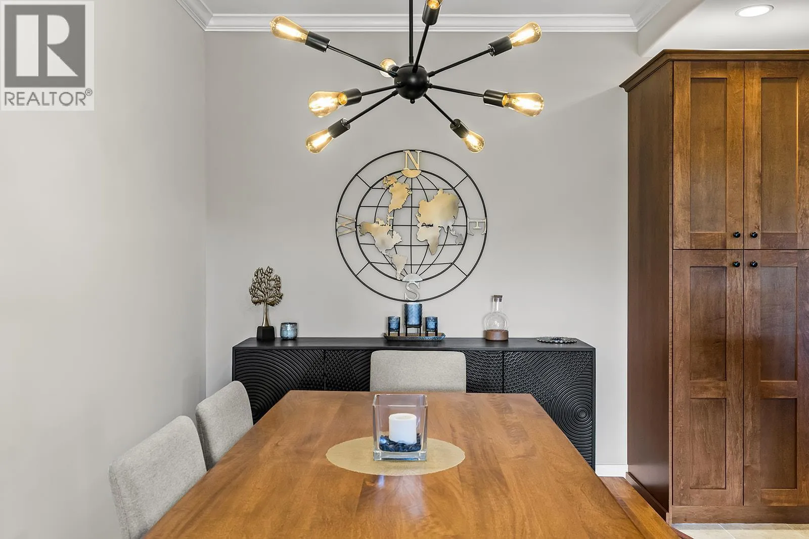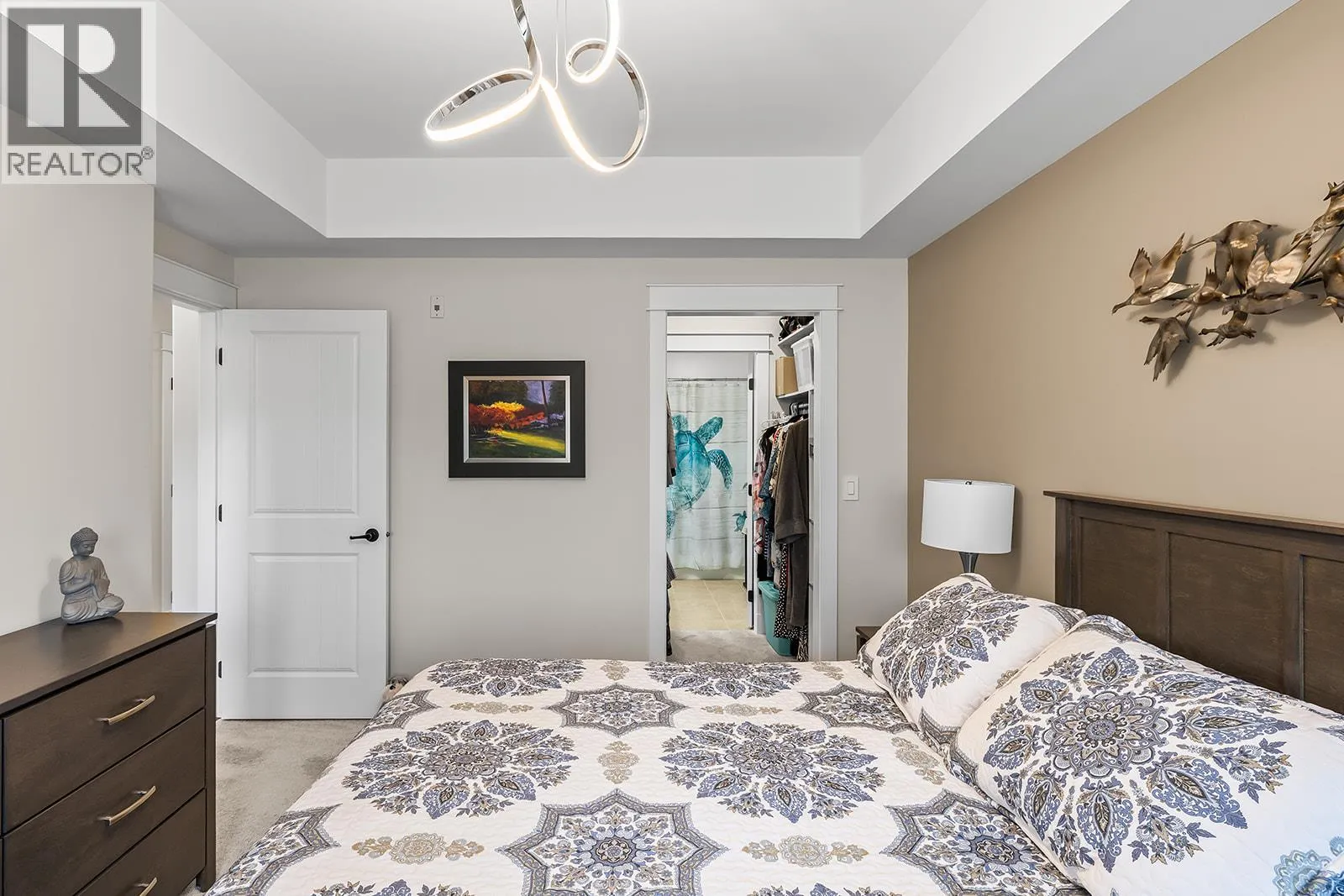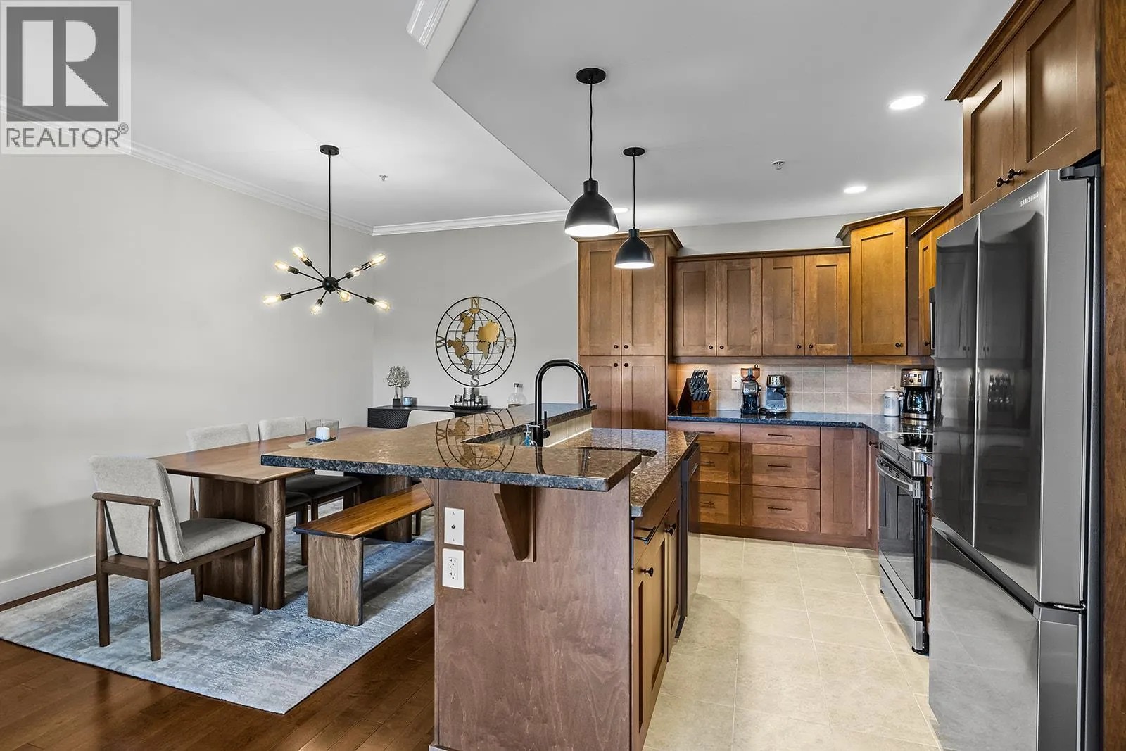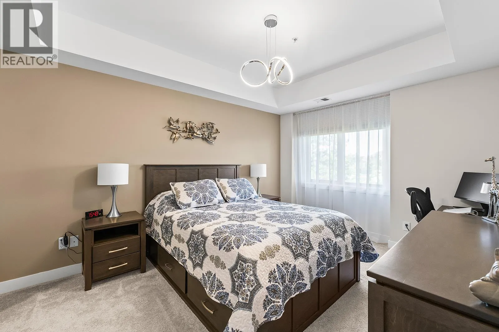Welcome to this stylish 2 bedroom, 2 bathroom TURN-KEY condo offering breathtaking views that capture the best of the Okanagan lifestyle. Enjoy panoramic vistas on your expansive covered deck âfrom Shannon and Okanagan Lakes to the south, to the rolling greens of the surrounding golf course, and sparkling city lights to the north. Inside, high ceilings and large windows create a bright, airy feel, enhanced by tasteful furniture purchased in 2023 (yes, it can stay!) fresh paint, newer carpet, upgraded appliances, modern light and plumbing fixtures, custom window coverings, and a stunning built-in cabinet with a statement wall treatment. West Coast lodge-style architecture defines the exterior, with cedar beams and shaker-style siding, while Tuscan-inspired touches inside include granite countertops, basin sinks, crown mouldings, and a charming arched niche with recessed lighting. Located at Eagle Terrace next to Shannon Lake Golf Course, youâll enjoy more than just great golfâdine out steps from home at Courses Restaurant and soak in the beauty and convenience of this unique location. (id:27476)