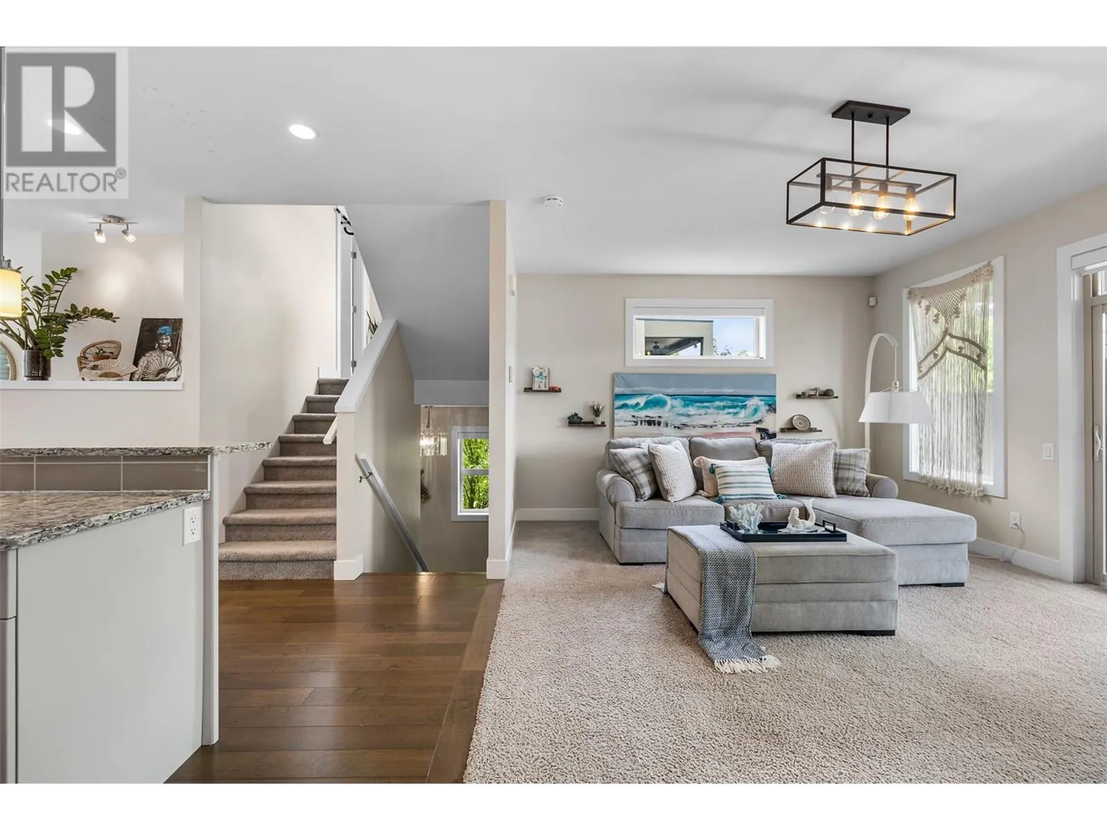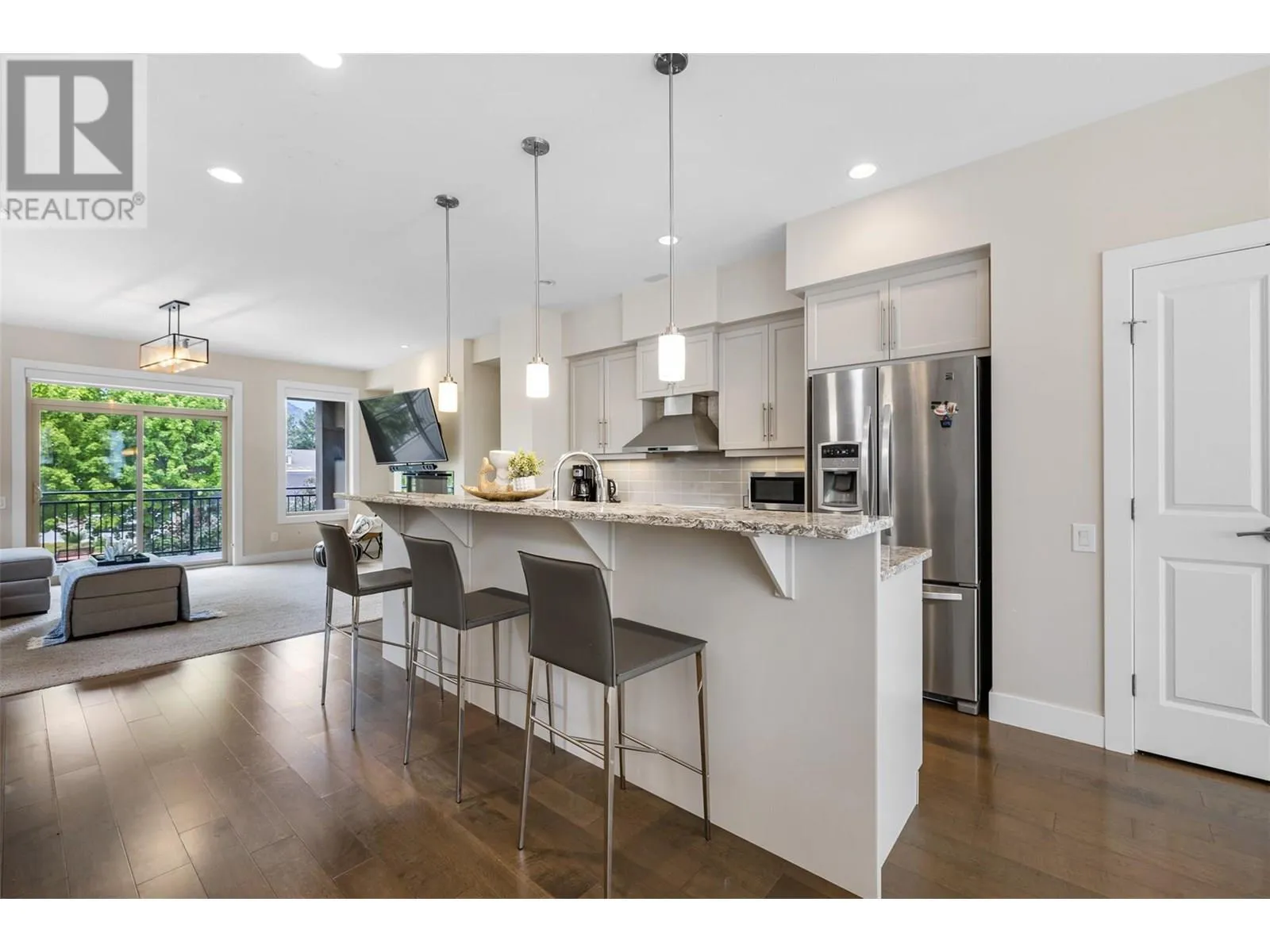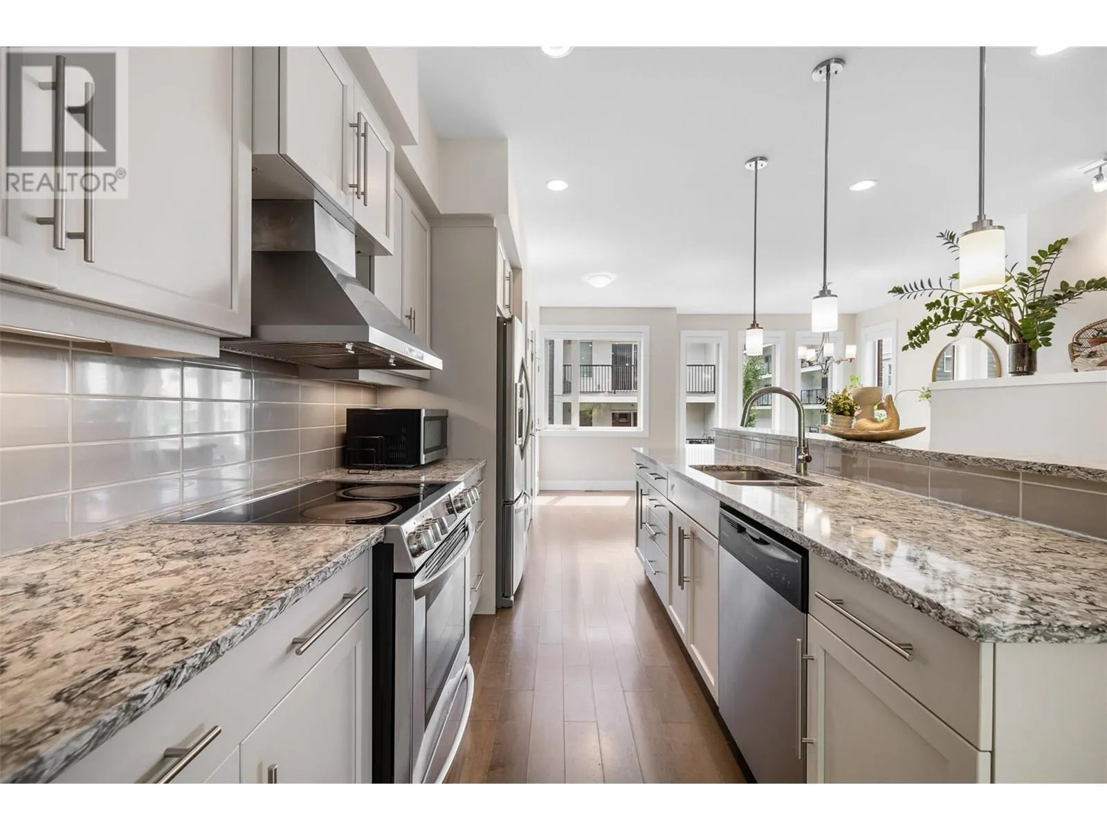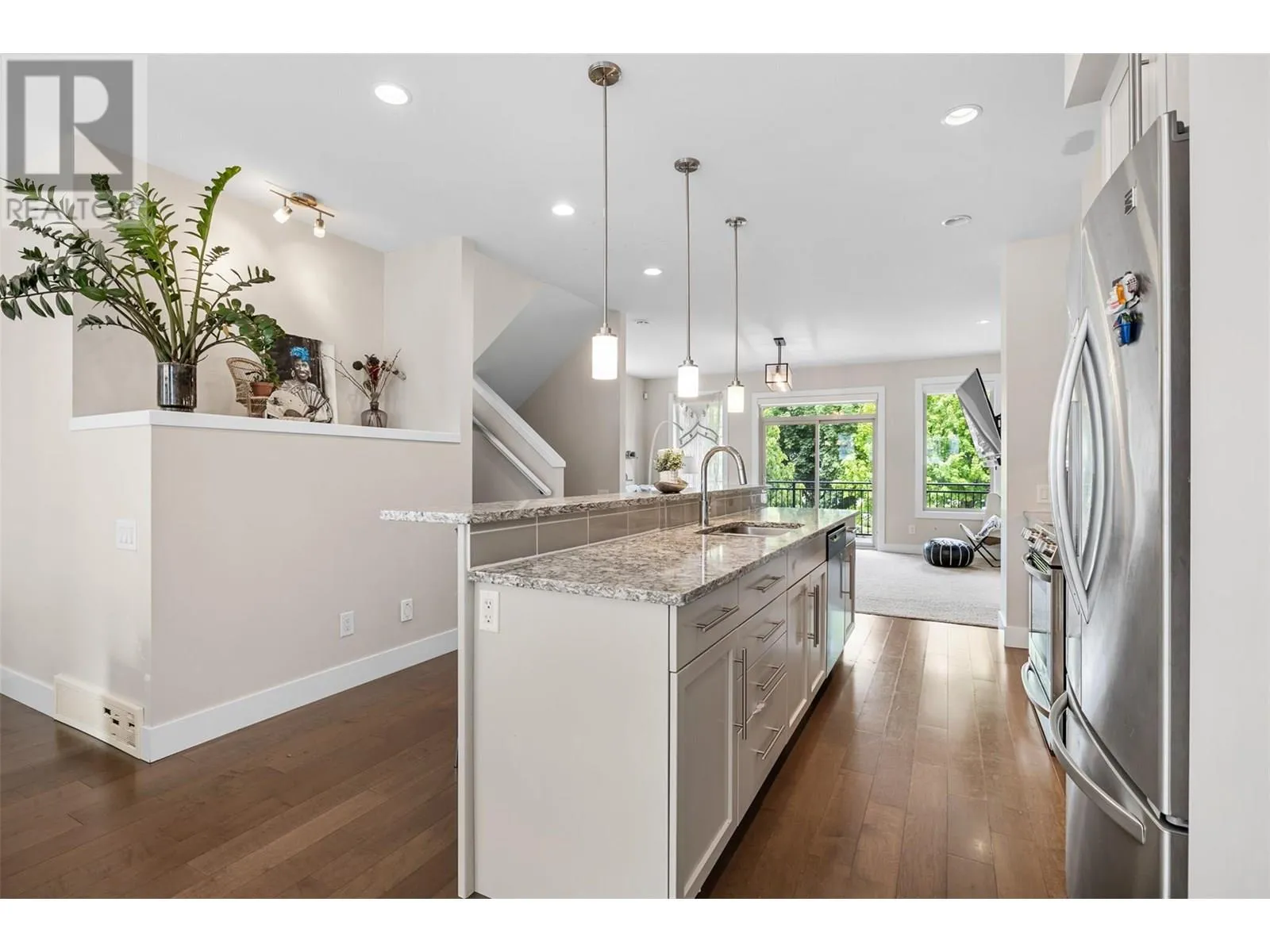 Welcome to this stunning 3-bedroom, 2.5-bath corner-unit townhome in the sought-after Gateway Urban Complex in West Kelowna. The open concept floor plan creates a seamless flow between the gourmet kitchen, spacious living room, and dining area, ideal for both everyday living and entertaining guests. Upstairs, the bedrooms provide flexibility for family, guests, or a home office, complemented by a second full bathroom for added convenience. The walkout basement offers versatile space, perfect for a home gym, theater room, or even an additional bedroom to suit your needs. The townhomeâs rare double side-by-side garage provides ample space for two vehicles. Located in a prime West Kelowna location, this home is just minutes from Westbankâs vibrant shopping district, restaurants, and cafes, making errands and outings effortless. Nature lovers will enjoy proximity to local parks and beaches, perfect for leisurely strolls or relaxing by the water. The West Kelowna Library, Johnson Bentley Memorial Aquatic Center, and schools from K to 12 are all within a 10-minute drive, ensuring convenience and connectivity. (id:27476)