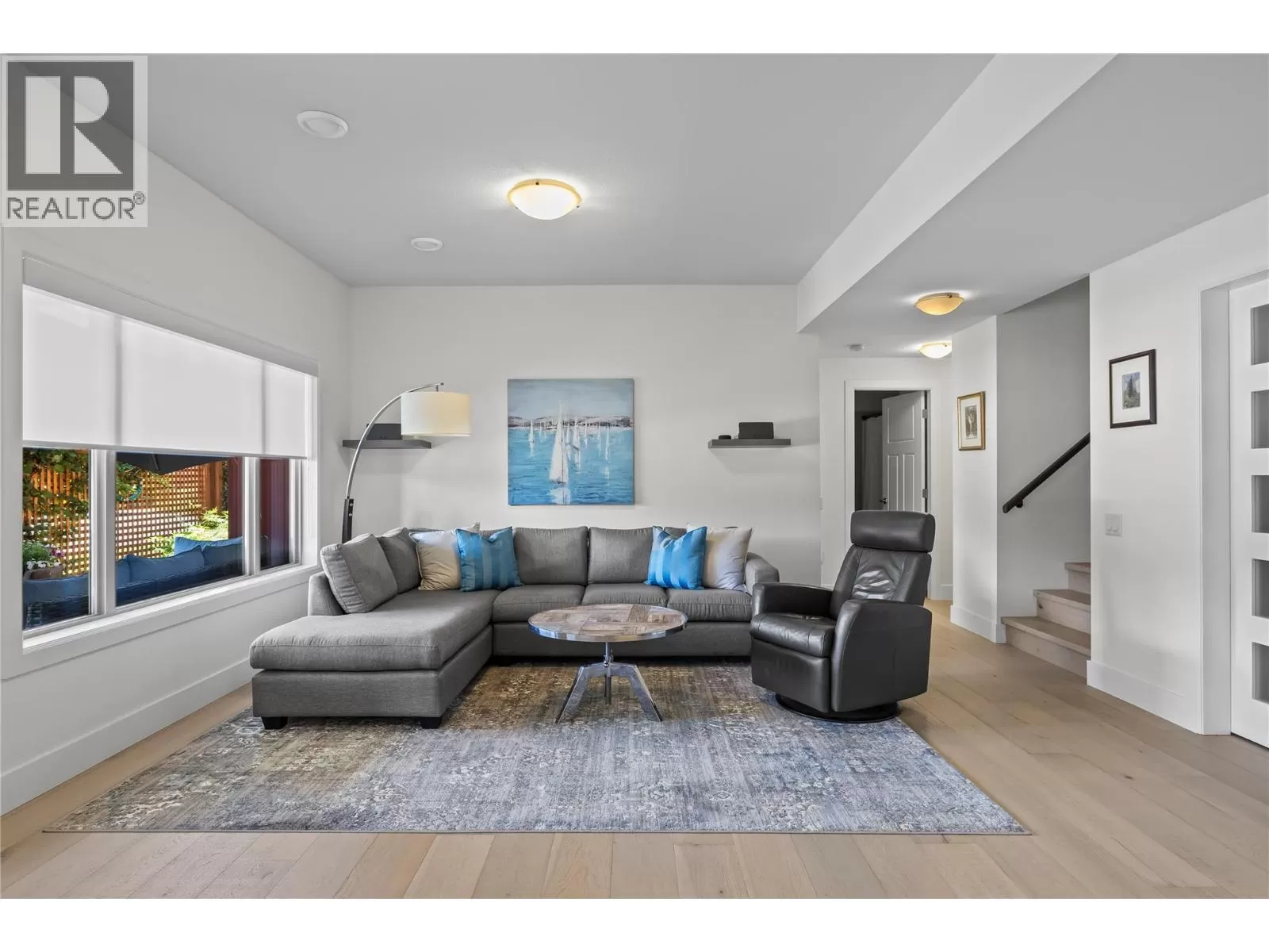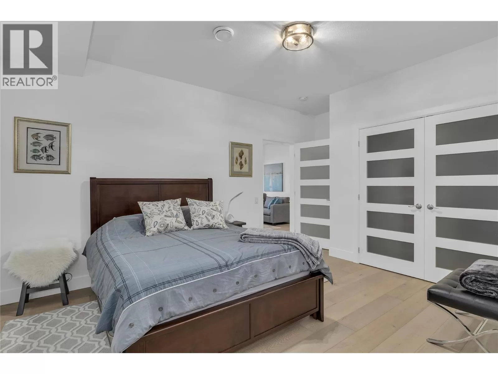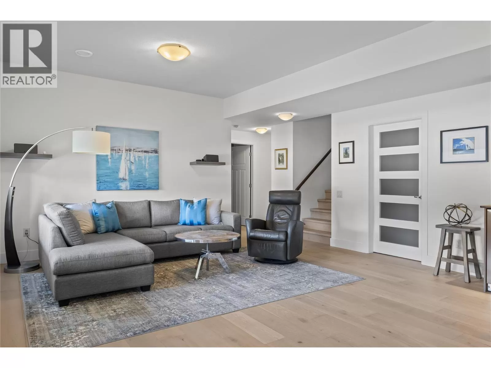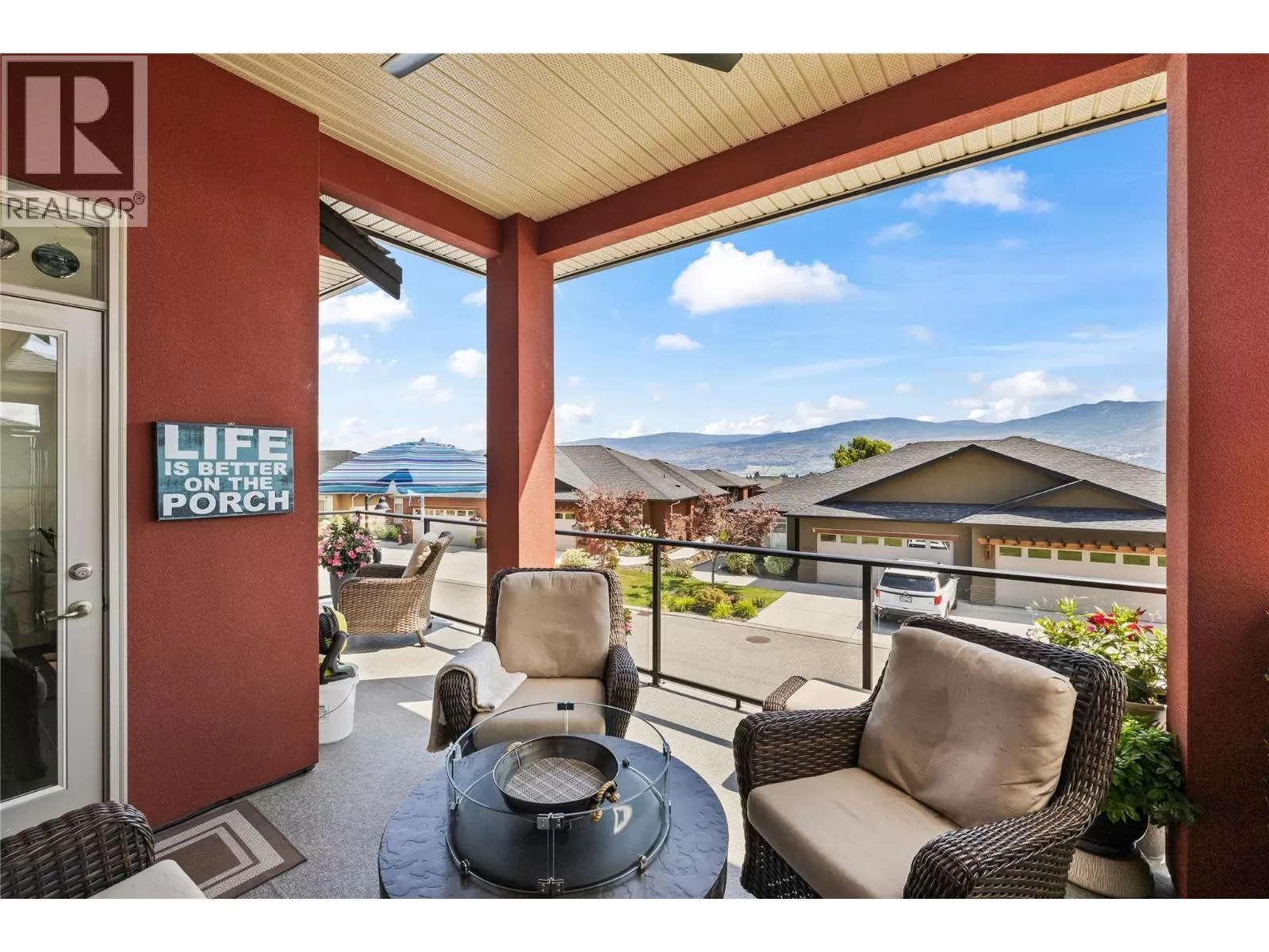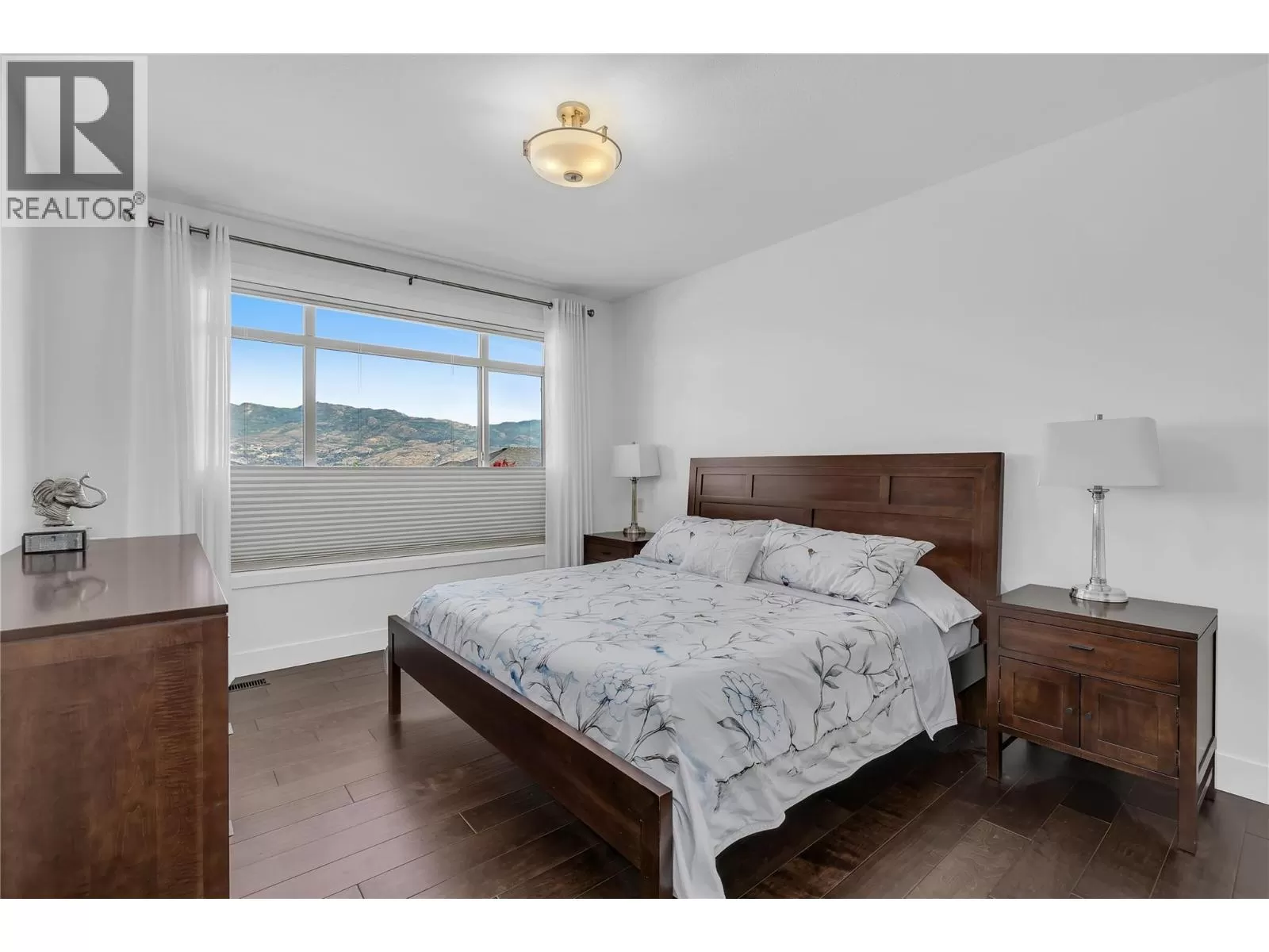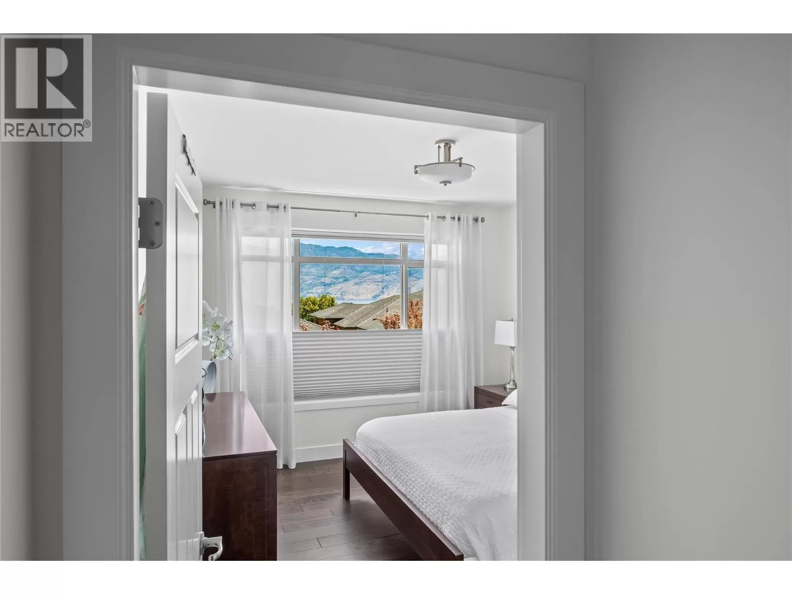 Location and lifestyleâthis home truly has it all! Nestled in the highly desirable community of Sonoma Pines, this stunning walkout rancher with partial lake views offers both comfort and convenience. The open Mojave plan features a spacious kitchen with a large center island, sit-up bar, updated lighting, walk-in pantry, and newer stainless steel appliances. An elegant stone fireplace & engineered hardwood floors grace the main living space, filled with natural light from a wall of windows showcasing picturesque views. Wake up with coffee or unwind with a glass of wine on the extended deck with glass railings, ceiling fan, and gas hook-up. The primary bedroom boasts a luxurious 5-piece ensuite with dual vanities, WI shower, & spacious WI closet. A versatile second bedroom/den, full bath, and laundry with new washer and dryer complete the main level. The recently renovated lower level features a large family room with beautiful engineered flooring, a stylish feature bar with two wine fridges, two additional bedrooms, full bath, & ample storage. Step outside to a private backyard with a cedar arbor,Perfect for relaxing or entertaining. The heated double garage includes an EV charger and Pro Slat Wall system for organization. Sonoma Pines offers amenities including a clubhouse, gym, library, billiard room, and a social room with rentable full kitchen. Secure RV parking is also available. Located close to Two Eagles Golf, wineries, shopping & LAKE. No PTT or speculation tax. (id:27476)