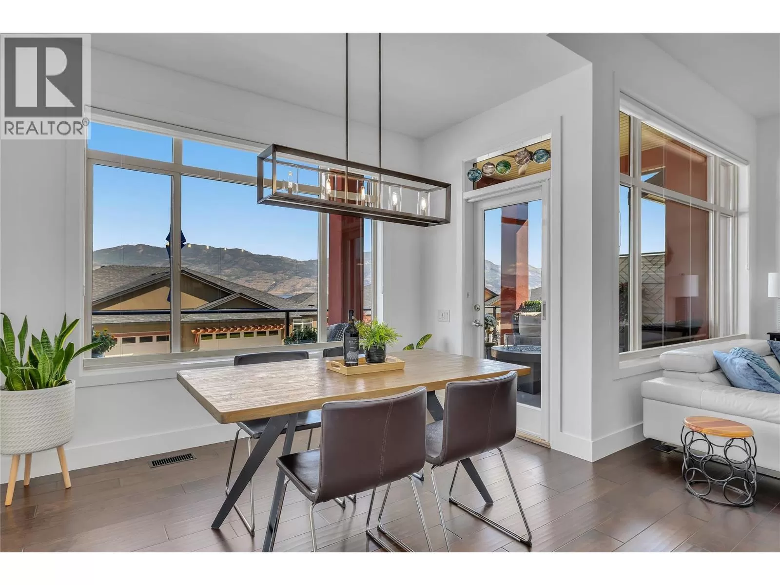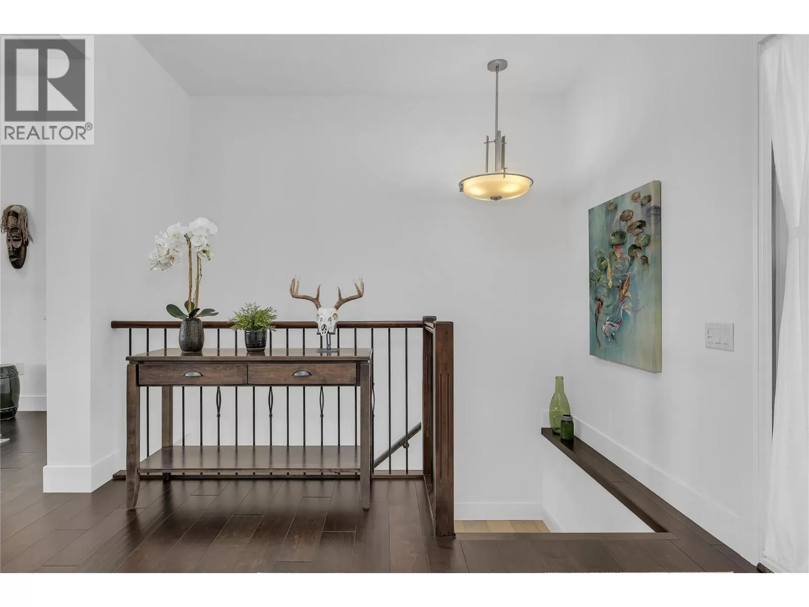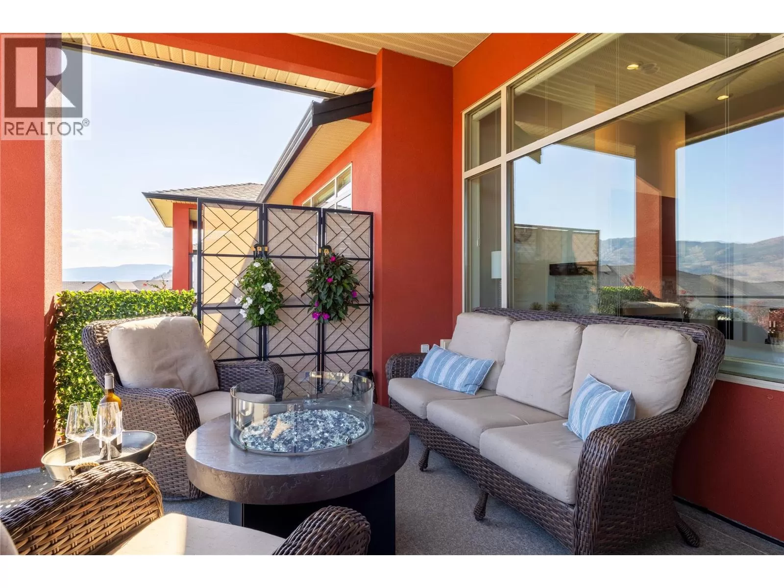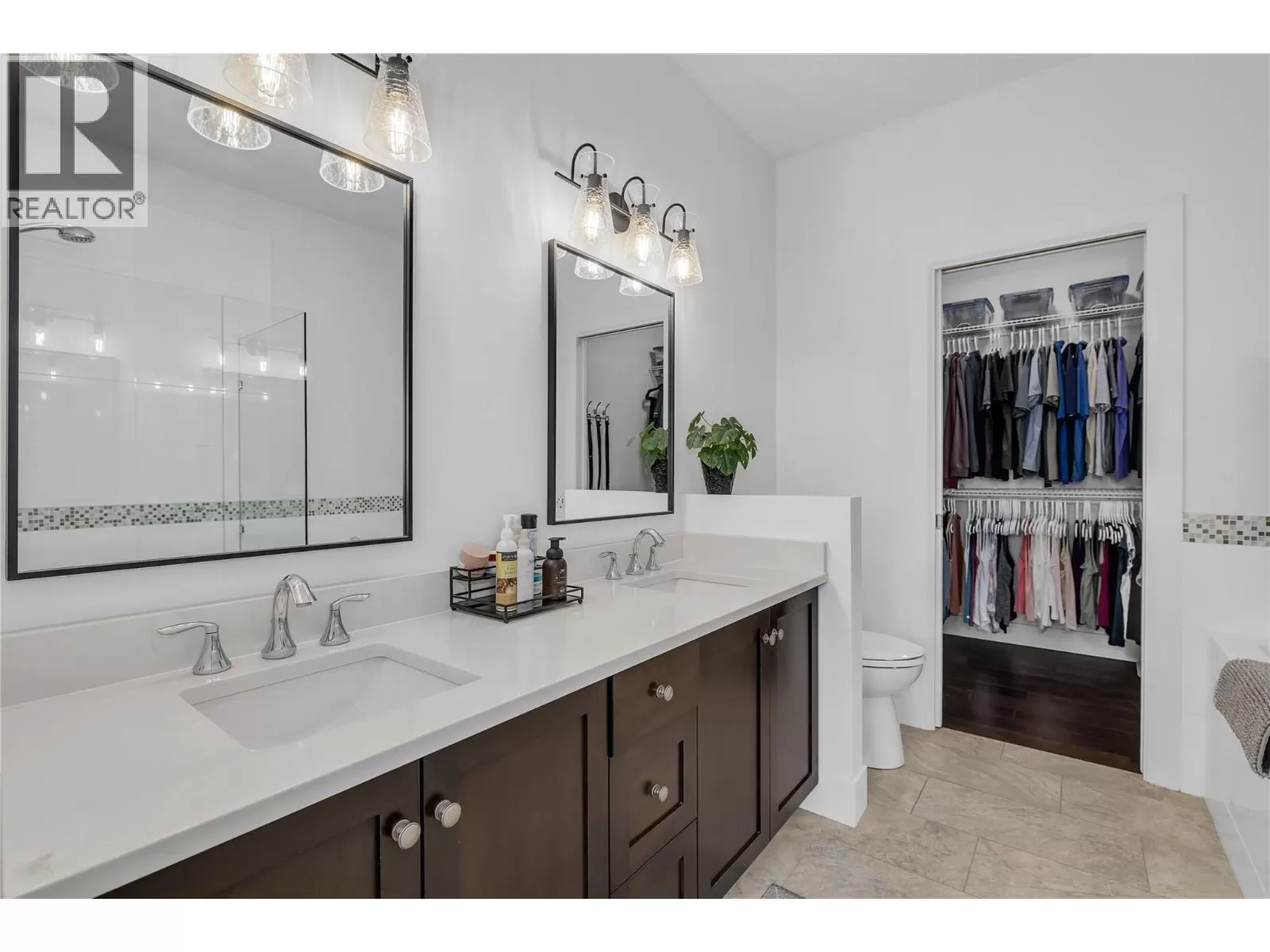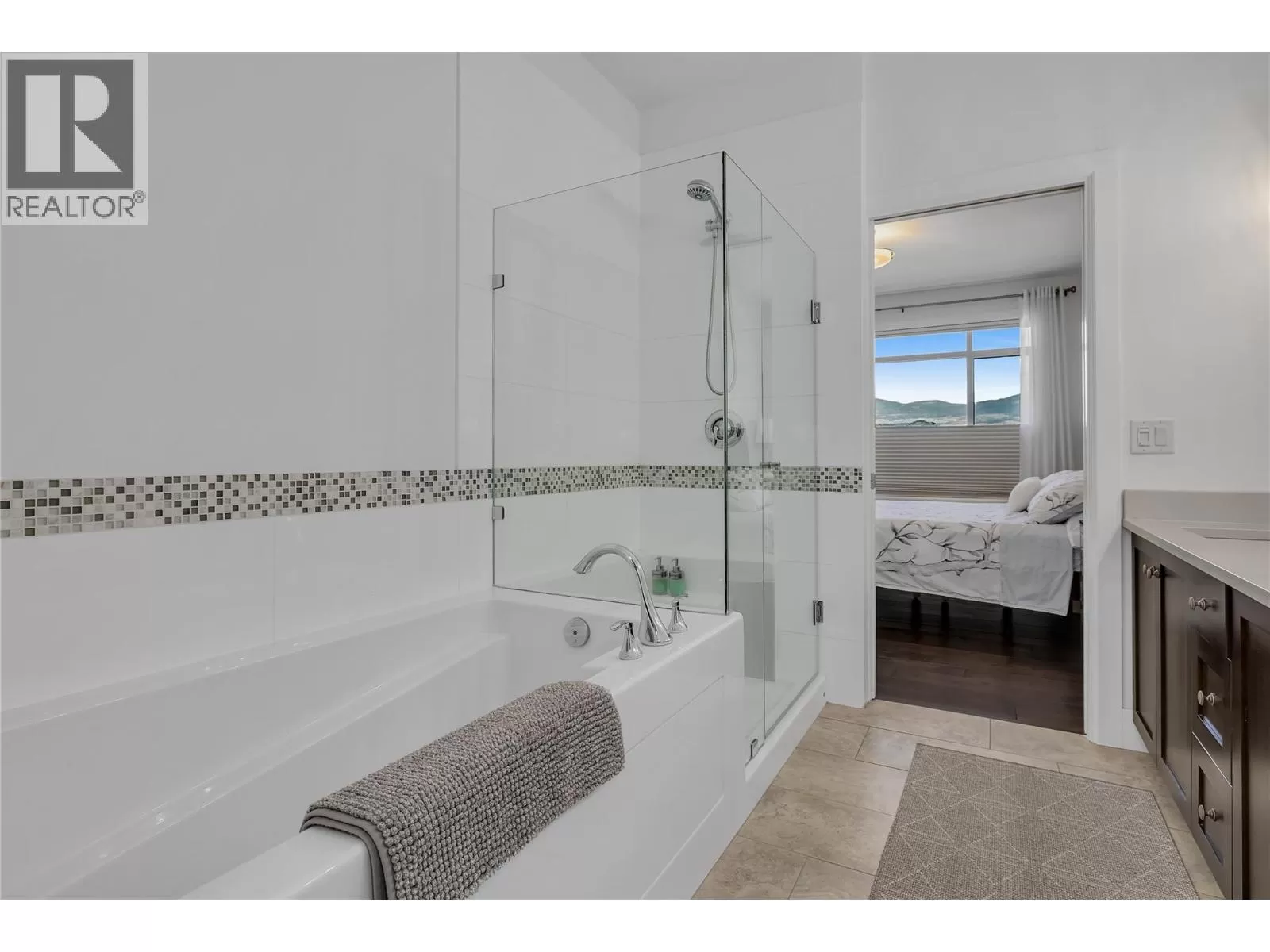 Location and lifestyleâthis home truly has it all! Nestled in the highly desirable community of Sonoma Pines, this stunning walkout rancher with partial lake views offers both comfort and convenience. The open Mojave plan features a spacious kitchen with a large center island, sit-up bar, updated lighting, walk-in pantry, and newer stainless steel appliances. An elegant stone fireplace & engineered hardwood floors grace the main living space, filled with natural light from a wall of windows showcasing picturesque views. Wake up with coffee or unwind with a glass of wine on the extended deck with glass railings, ceiling fan, and gas hook-up. The primary bedroom boasts a luxurious 5-piece ensuite with dual vanities, WI shower, & spacious WI closet. A versatile second bedroom/den, full bath, and laundry with new washer and dryer complete the main level. The recently renovated lower level features a large family room with beautiful engineered flooring, a stylish feature bar with two wine fridges, two additional bedrooms, full bath, & ample storage. Step outside to a private backyard with a cedar arbor,Perfect for relaxing or entertaining. The heated double garage includes an EV charger and Pro Slat Wall system for organization. Sonoma Pines offers amenities including a clubhouse, gym, library, billiard room, and a social room with rentable full kitchen. Secure RV parking is also available. Located close to Two Eagles Golf, wineries, shopping & LAKE. No PTT or speculation tax. (id:27476)