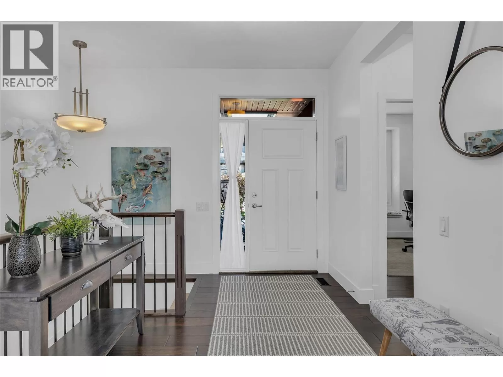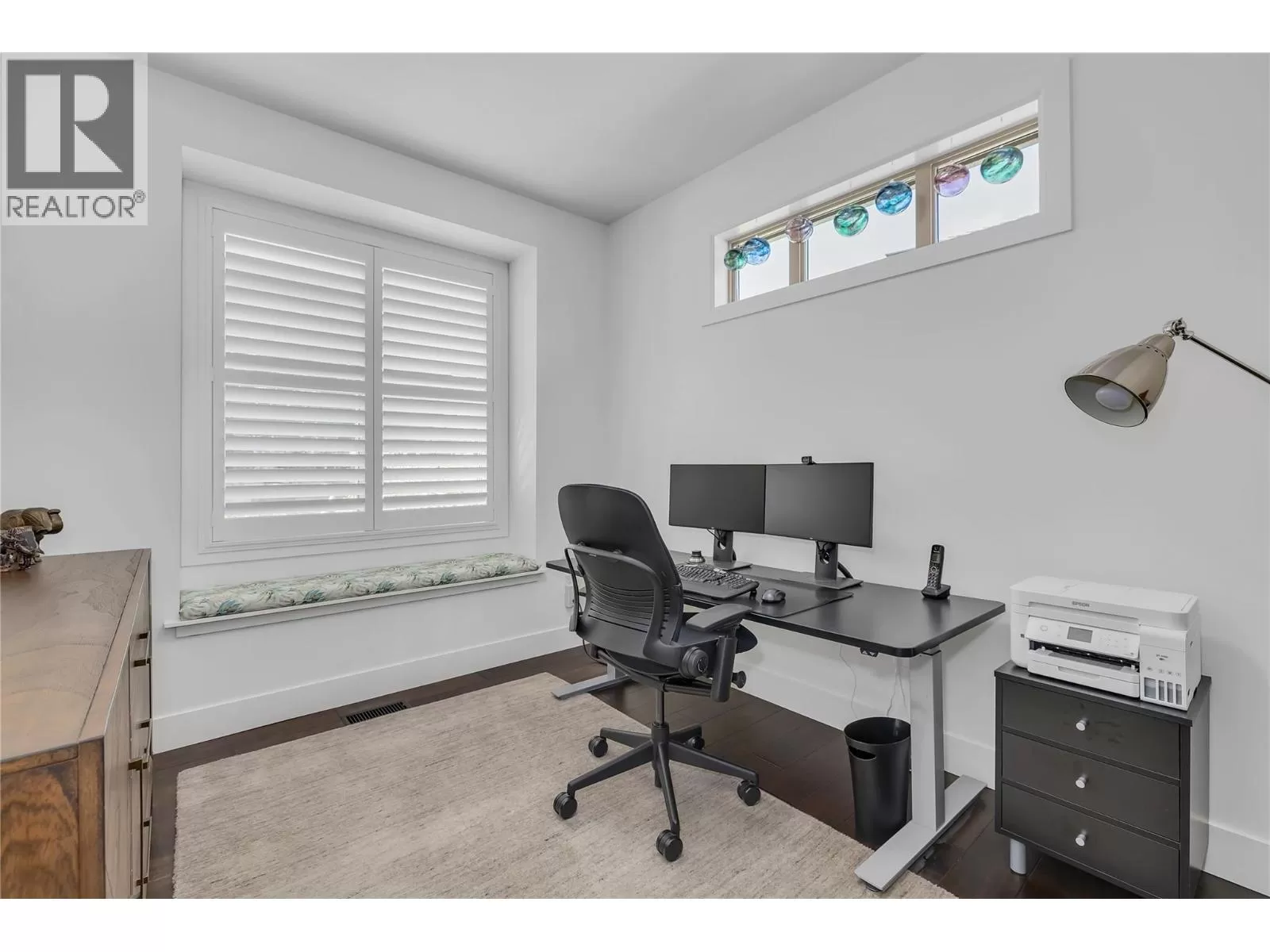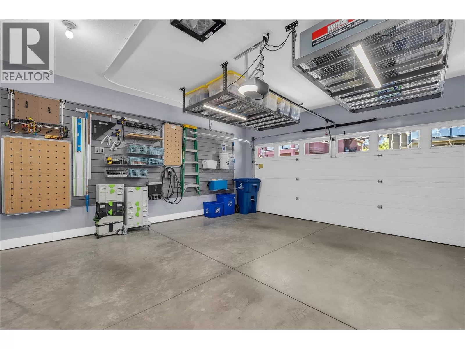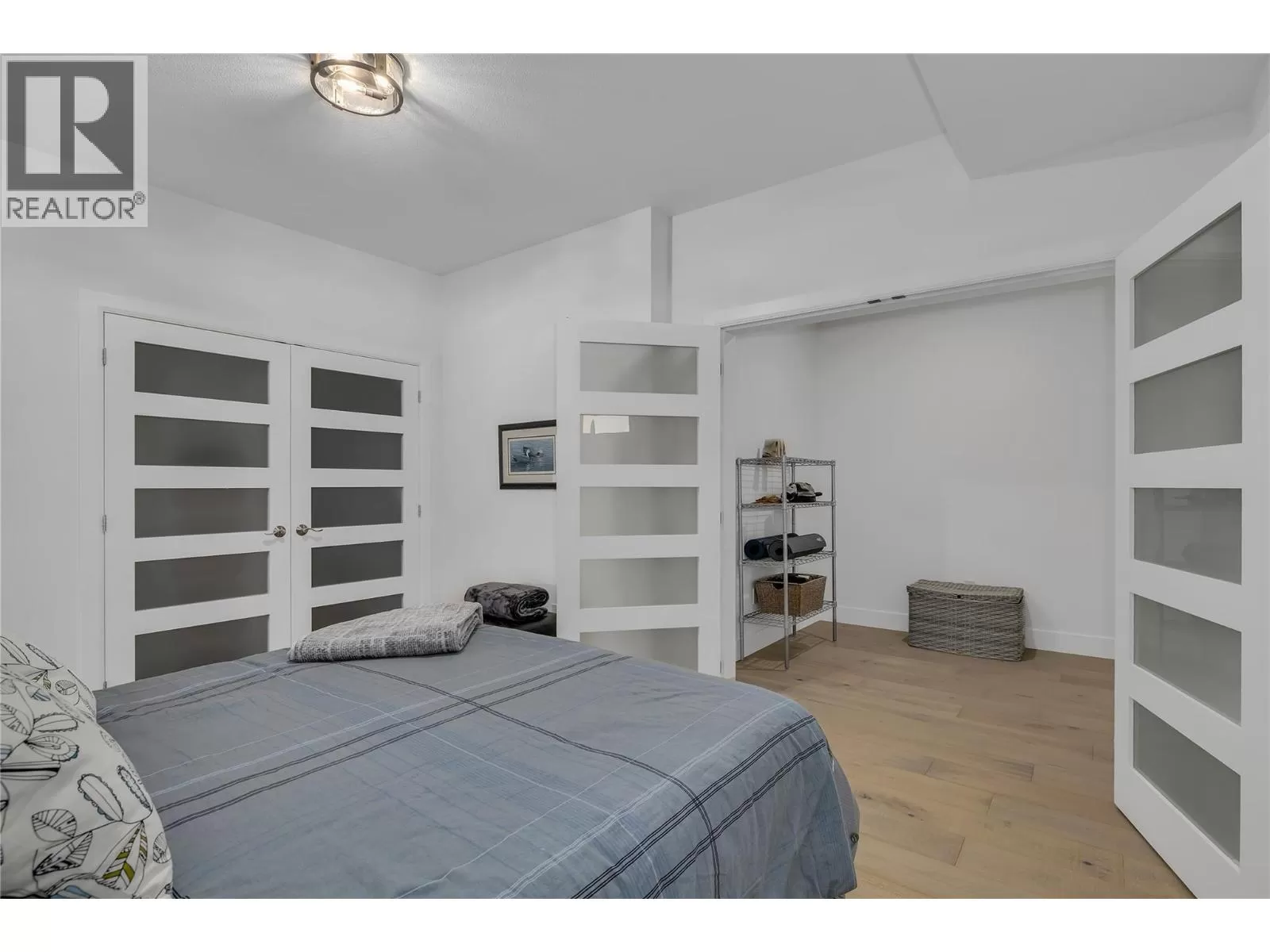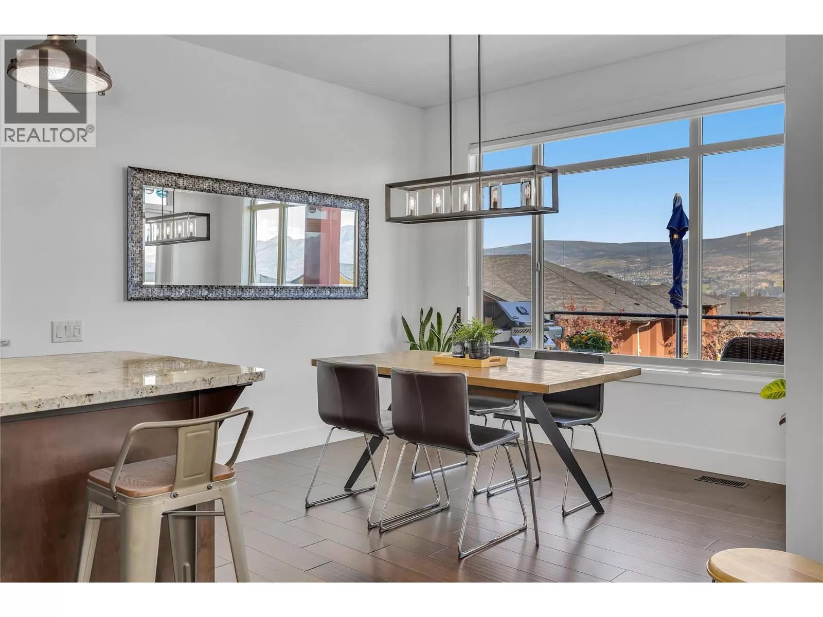 Location and lifestyleâthis home truly has it all! Nestled in the highly desirable community of Sonoma Pines, this stunning walkout rancher with partial lake views offers both comfort and convenience. The open Mojave plan features a spacious kitchen with a large center island, sit-up bar, updated lighting, walk-in pantry, and newer stainless steel appliances. An elegant stone fireplace & engineered hardwood floors grace the main living space, filled with natural light from a wall of windows showcasing picturesque views. Wake up with coffee or unwind with a glass of wine on the extended deck with glass railings, ceiling fan, and gas hook-up. The primary bedroom boasts a luxurious 5-piece ensuite with dual vanities, WI shower, & spacious WI closet. A versatile second bedroom/den, full bath, and laundry with new washer and dryer complete the main level. The recently renovated lower level features a large family room with beautiful engineered flooring, a stylish feature bar with two wine fridges, two additional bedrooms, full bath, & ample storage. Step outside to a private backyard with a cedar arbor,Perfect for relaxing or entertaining. The heated double garage includes an EV charger and Pro Slat Wall system for organization. Sonoma Pines offers amenities including a clubhouse, gym, library, billiard room, and a social room with rentable full kitchen. Secure RV parking is also available. Located close to Two Eagles Golf, wineries, shopping & LAKE. No PTT or speculation tax. (id:27476)