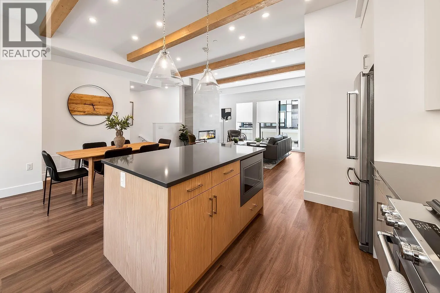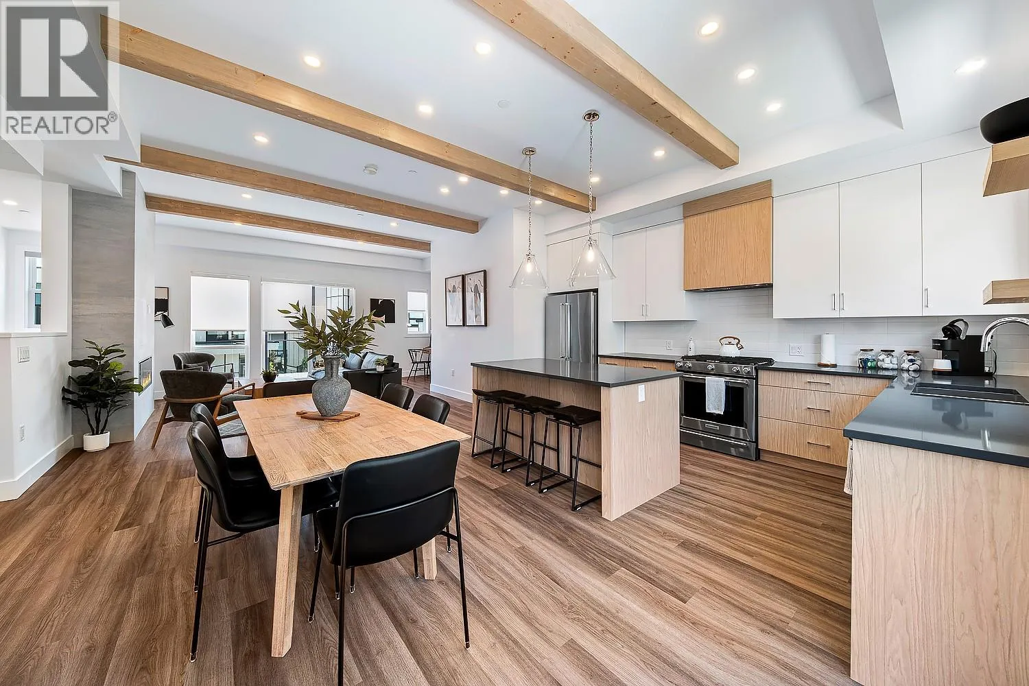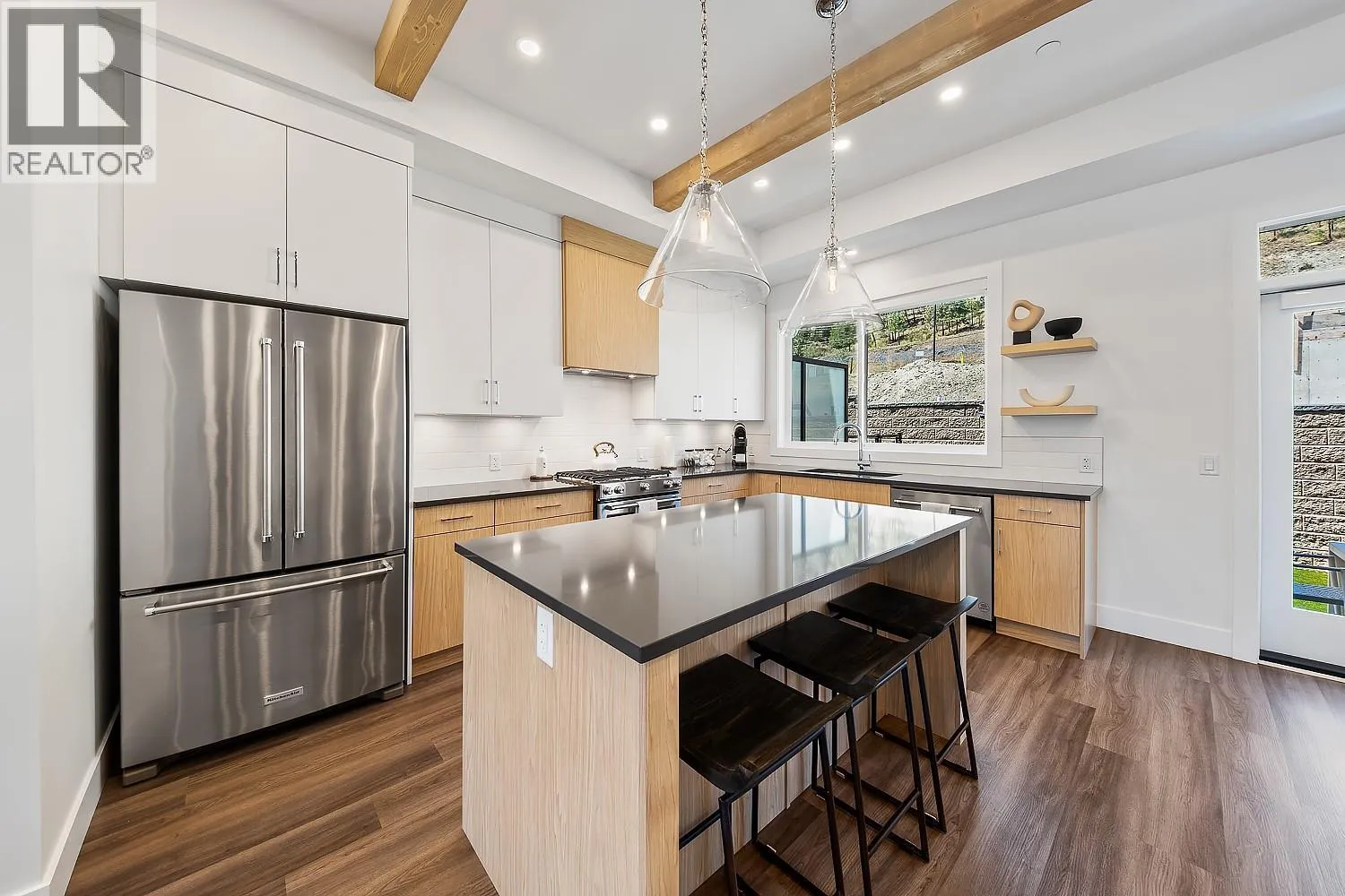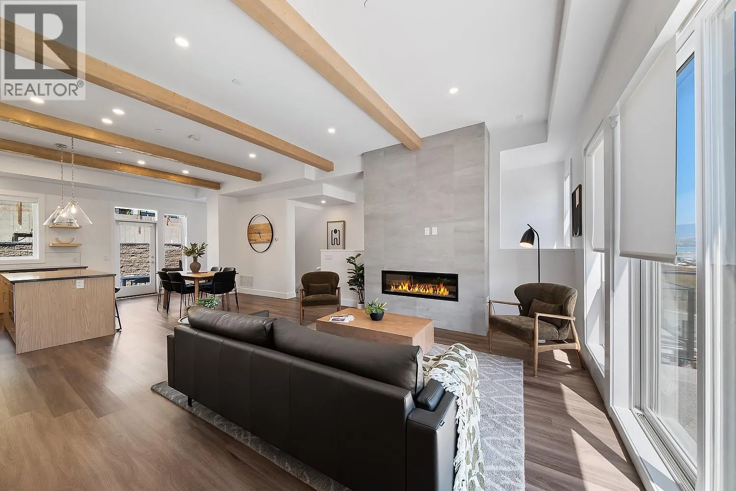 This Shelter Bay townhome is our B floorplan in our Sail colour scheme and comes with a wonderful 1,920 square feet of living space featuring, 3 bedrooms and 2.5 bathrooms, a large 406 sq foot roof top terrace and a spectacular view of Okanagan Lake. This home comes with side-by-side double car garage, open concept living plan, luxuriously finished with exposed wood beams, high-end appliances and fixtures. Amenity center with swimming pool, hot tub, games room, theatre room, golf simulators and meeting areas are all within steps of this home. This home is currently set up as a STR and we could look at selling it turn-key ready. Youâll love it here! (id:27476)