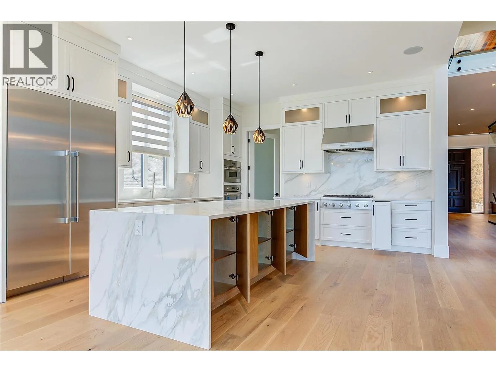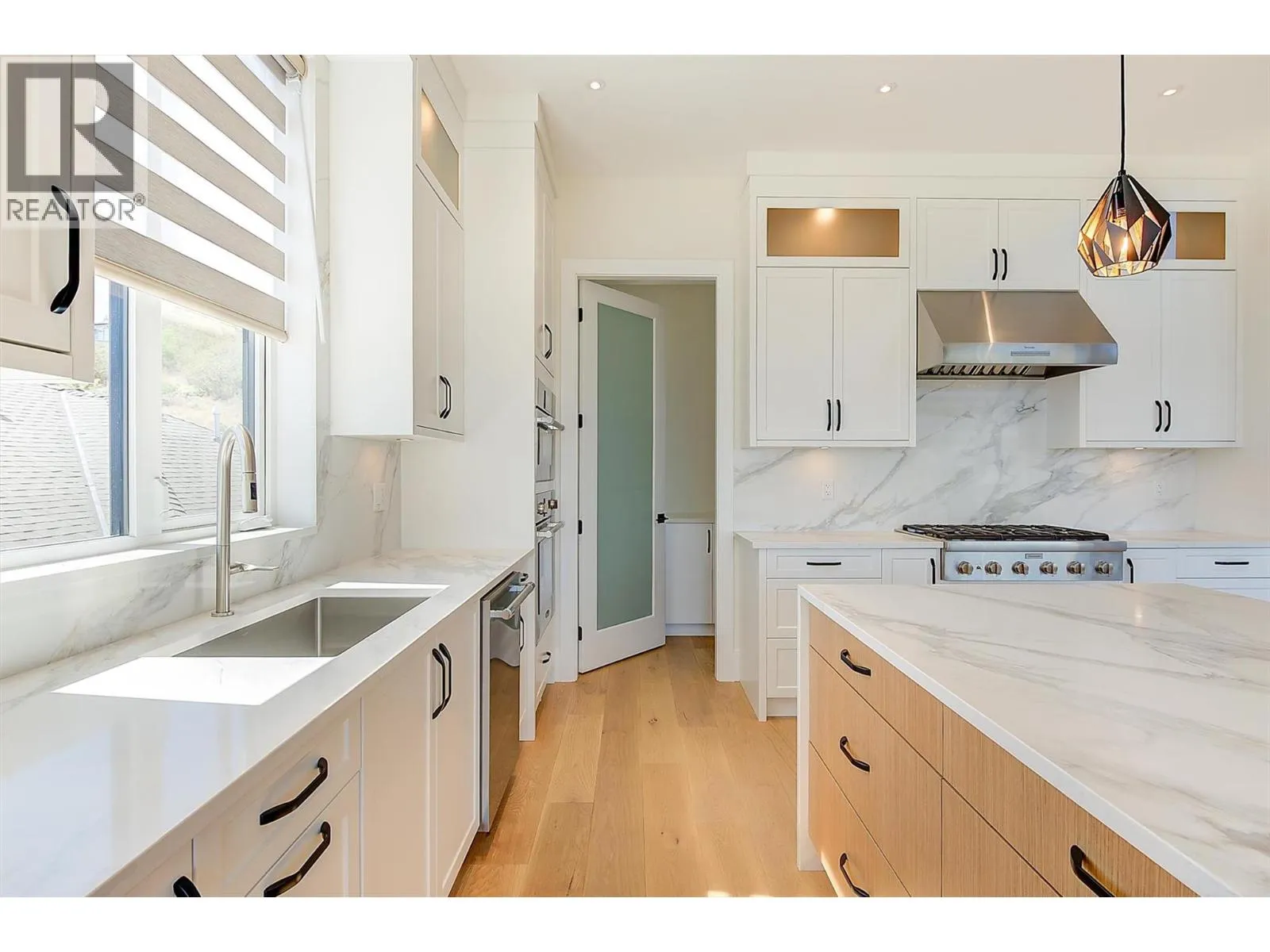 This thoughtfully designed 7-bedroom, 8-bathroom residence embodies elegance, functionality, and modern comfort. From the moment you enter through the grand main entrance, youâre welcomed into an expansive open-concept living space highlighted by soaring vaulted ceilings and floor-to-ceiling windows that capture unobstructed panoramic lake views. With homes behind set well below, youâll enjoy complete privacy and uninterrupted sightlines. The main level is intelligently planned with no wasted space. The chefâs kitchen is complete with Thermador Appliances. The spacious primary suite features a spa-inspired ensuite, while several additional bedrooms throughout the home include their own private ensuites. Upstairs, a dedicated office with custom built-in desk provides a quiet retreat for work or study. The Main home has its own security system. The lower level has a fully self-contained 2-bedroom legal suite, complete with its own security system, ideal for extended family, guests, or as a mortgage helper. The basement also offers a large recreation room, an impressive island bar, and walk-out access to a backyard that perfectly balances relaxation and entertainment. Practicality meets peace of mind with thoughtful additions such as a whole-home generator for those âjust in caseâ moments. Situated in one of West Kelownaâs most sought-after neighborhoods, this home is a rare blend of lifestyle, location, craftsmanship, and comfortâideal for families and entertainers alike. (id:27476)