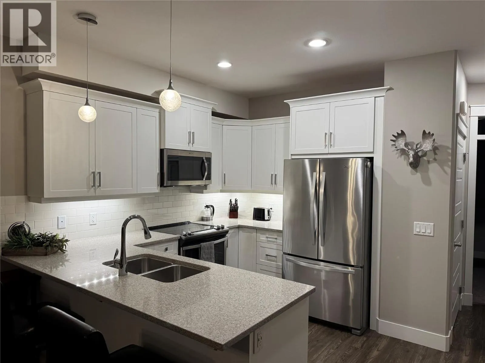 Big and bright 4 bedroom 4 bathroom townhome in Tesoro Arca. Great location within the development with grassy area behind. Private elevator accesses all levels. The main floor offers an open concept kitchen, dining and living room. Crisp white cabinetry, quartz countertops and s/s appliances. Built-in shelving flanks the fireplace. There is also a bedroom and full bathroom on the main level. Upstairs are 3 more bedrooms, including the large master suite. The ensuite has double vanity sinks and custom tile shower. Full family bathroom and laundry conveniently located on this level too. Spacious deck for relaxing and enjoying the sun. Over-sized double garage, 13' x 13'6 by 15' high, has workshop area and bathroom. This townhome project has been designed for the Okanagan lifestyle that includes lots of recreational toys! Storing them might be a problem... but not here! Minutes to the lake, golfing, restaurants and shopping and amenities. NO property transfer tax applicable. Rentals and pets (max 35lbs) allowed. Well-cared for home is priced to sell, quick possession and move-in ready! (id:27476)