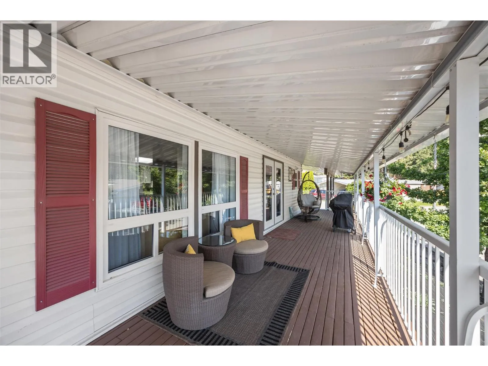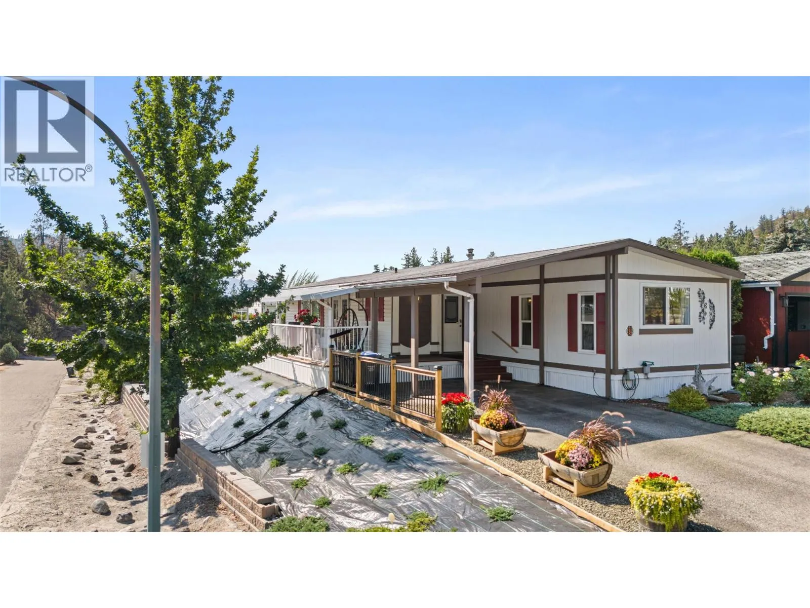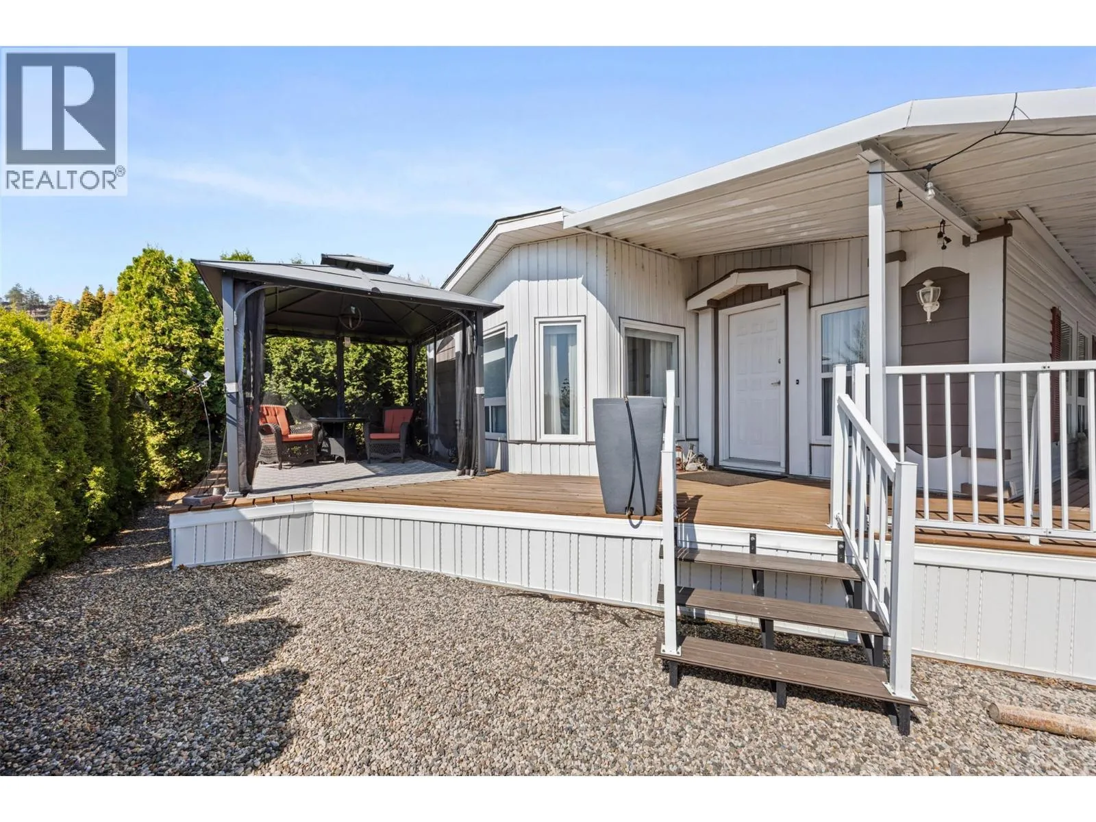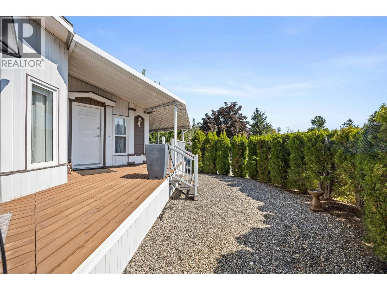 Welcome to Pinewoods Villa, a desirable 55+ manufactured home park where you own your land and enjoy a low $85/month strata fee. This well-maintained home sits on a corner lot and offers excellent outdoor living with a carport, covered wrap-around deck, and beautifully landscaped yard with irrigation for the cedars. Inside, youâll find numerous updates throughout, including newer skirting, conversion from Poly-B to PEX, freshly painted interior, new drapes and sheers, some updated light fixtures, and replaced window handles. The kitchen and dining areas feature modern cabinetry, while all appliances have been replaced for peace of mind. Both bathrooms include updated toilets, and the primary bedroom boasts new carpet for added comfort. Additional improvements include a rebuilt back deck, offering a perfect space to relax and entertain. With thoughtful upgrades inside and out, this move-in ready home combines convenience, style, and the peace of mind that comes with owning your own freehold land. (id:27476)