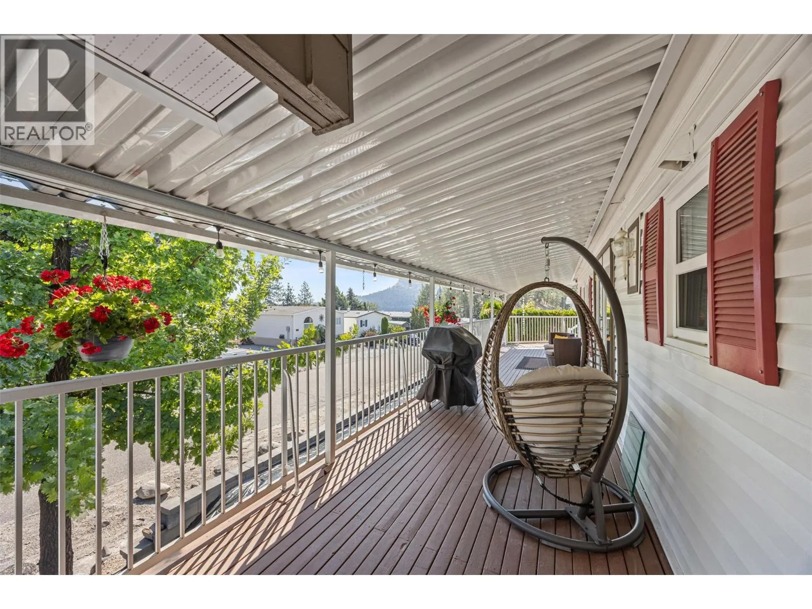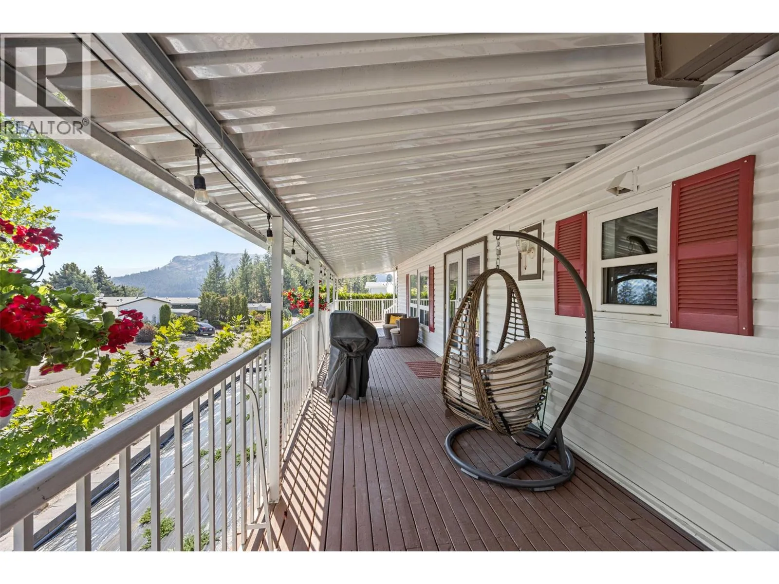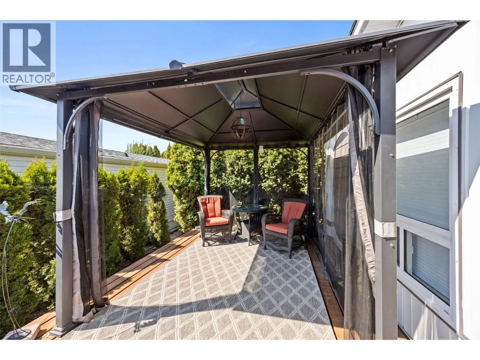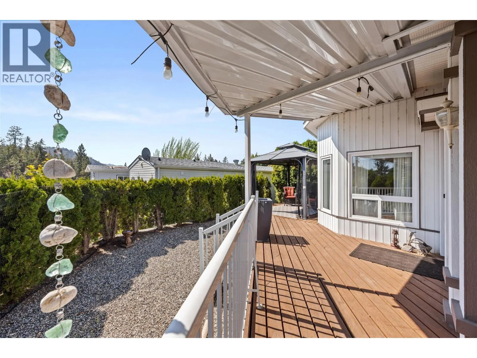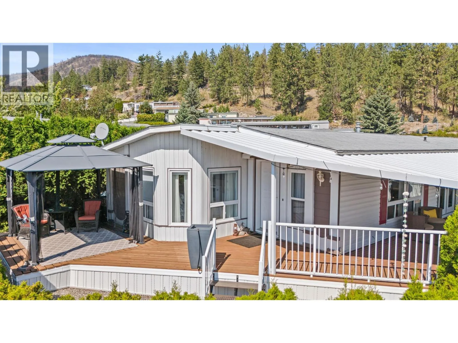 Welcome to Pinewoods Villa, a desirable 55+ manufactured home park where you own your land and enjoy a low $85/month strata fee. This well-maintained home sits on a corner lot and offers excellent outdoor living with a carport, covered wrap-around deck, and beautifully landscaped yard with irrigation for the cedars. Inside, youâll find numerous updates throughout, including newer skirting, conversion from Poly-B to PEX, freshly painted interior, new drapes and sheers, some updated light fixtures, and replaced window handles. The kitchen and dining areas feature modern cabinetry, while all appliances have been replaced for peace of mind. Both bathrooms include updated toilets, and the primary bedroom boasts new carpet for added comfort. Additional improvements include a rebuilt back deck, offering a perfect space to relax and entertain. With thoughtful upgrades inside and out, this move-in ready home combines convenience, style, and the peace of mind that comes with owning your own freehold land. (id:27476)