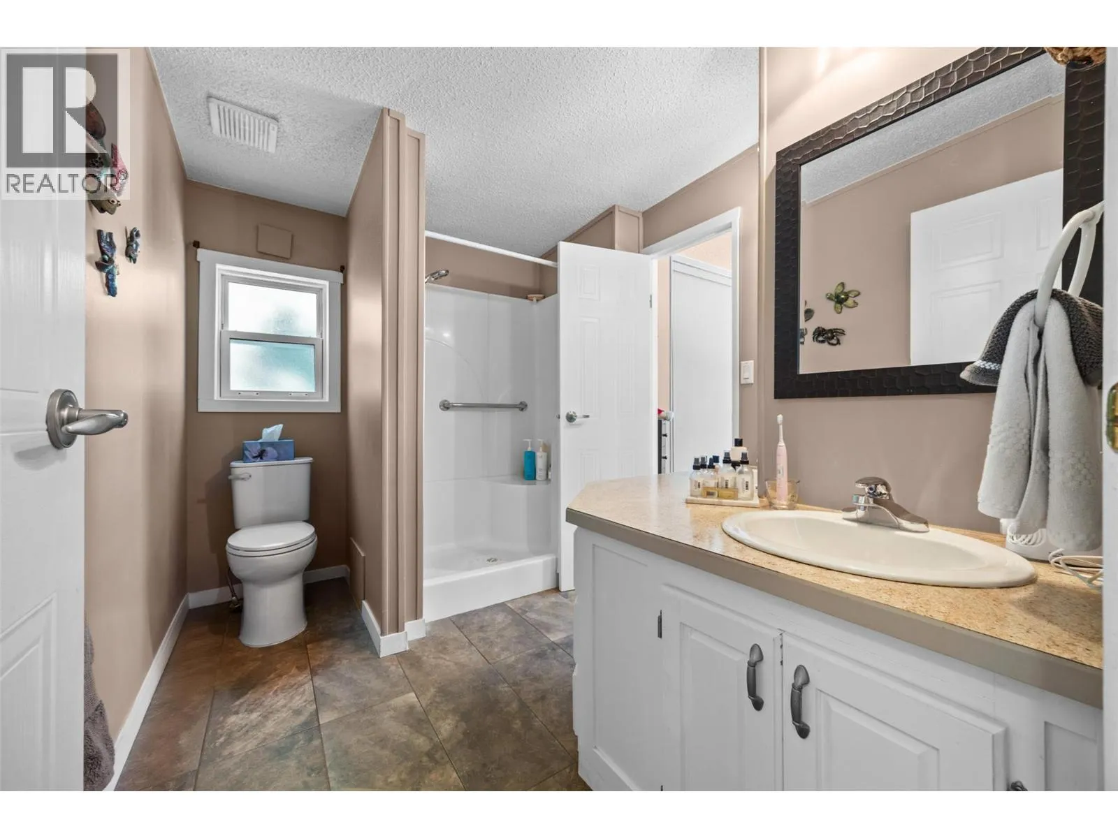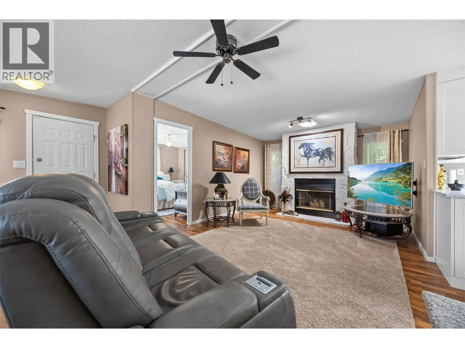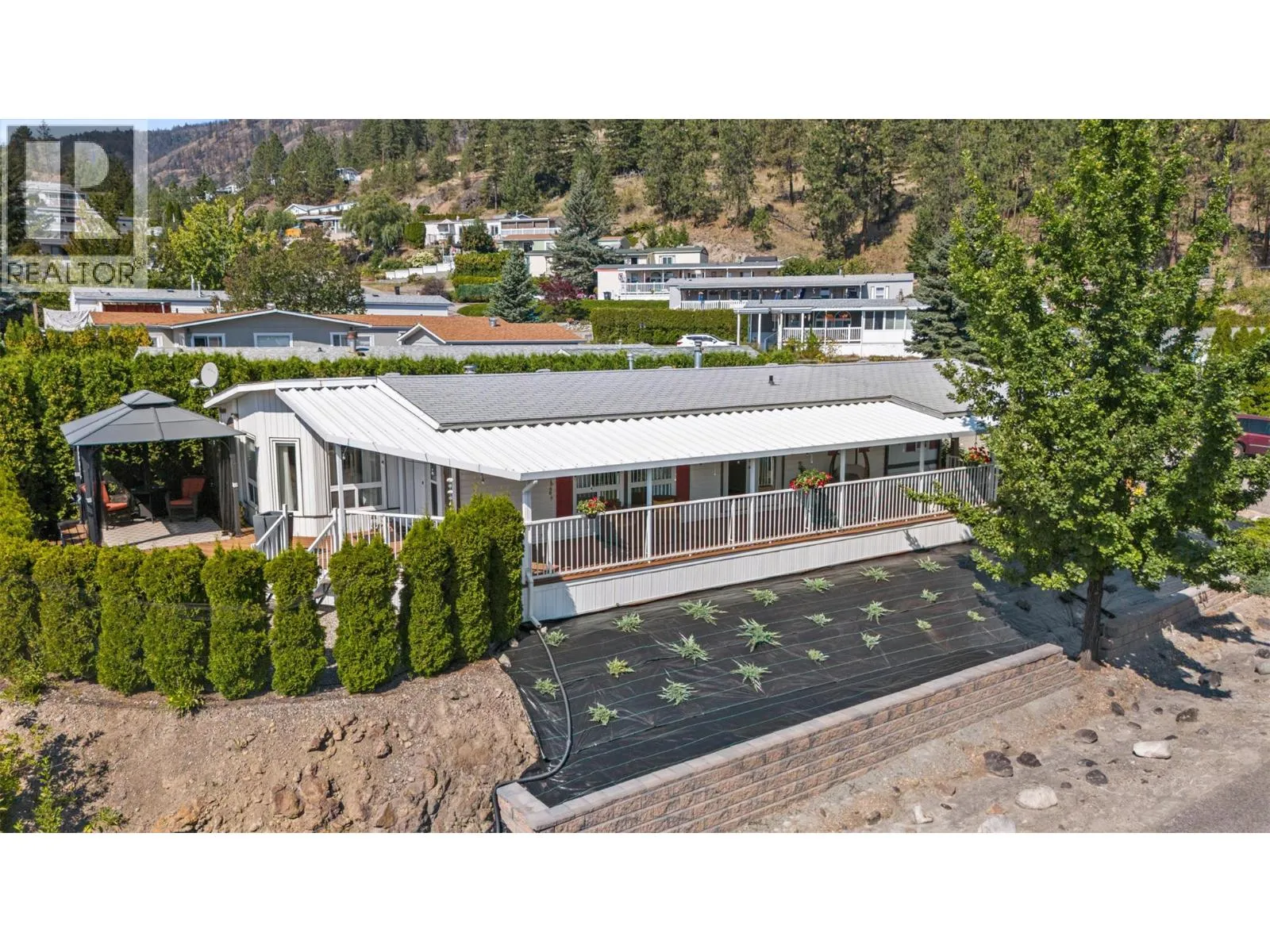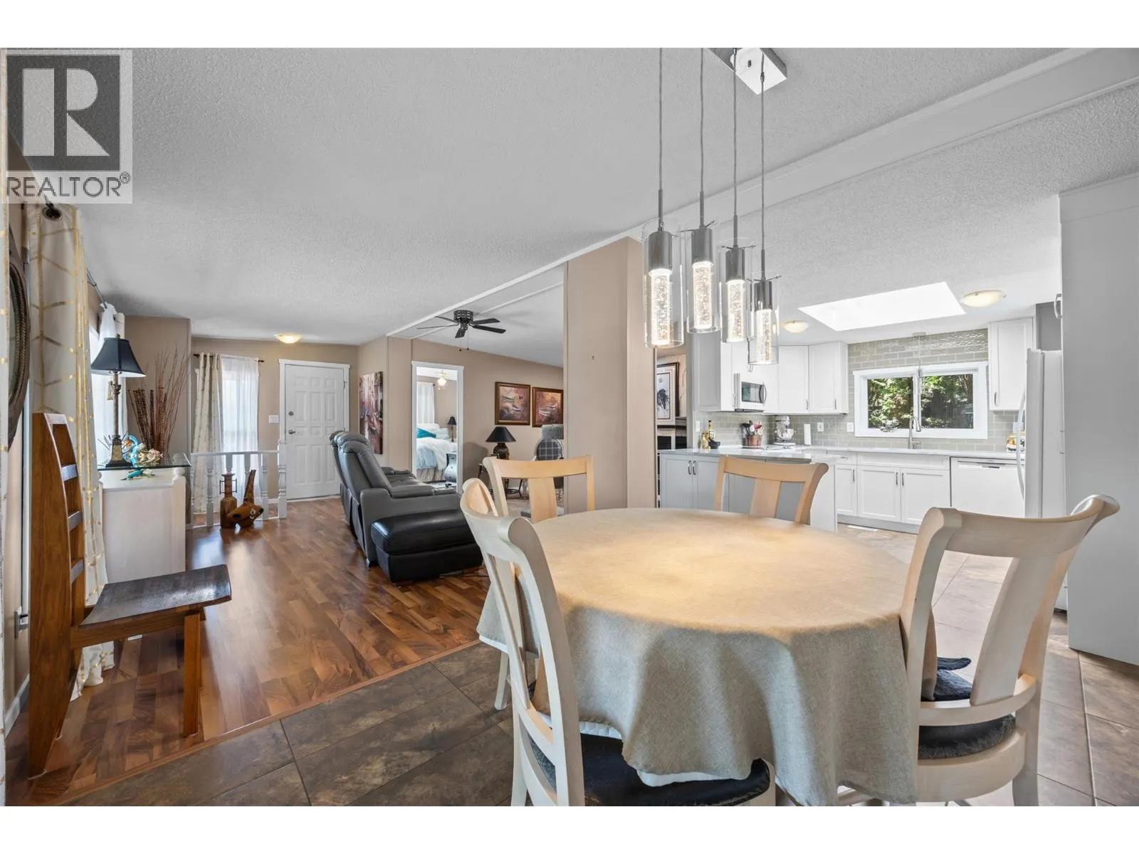 Welcome to Pinewoods Villa, a desirable 55+ manufactured home park where you own your land and enjoy a low $85/month strata fee. This well-maintained home sits on a corner lot and offers excellent outdoor living with a carport, covered wrap-around deck, and beautifully landscaped yard with irrigation for the cedars. Inside, youâll find numerous updates throughout, including newer skirting, conversion from Poly-B to PEX, freshly painted interior, new drapes and sheers, some updated light fixtures, and replaced window handles. The kitchen and dining areas feature modern cabinetry, while all appliances have been replaced for peace of mind. Both bathrooms include updated toilets, and the primary bedroom boasts new carpet for added comfort. Additional improvements include a rebuilt back deck, offering a perfect space to relax and entertain. With thoughtful upgrades inside and out, this move-in ready home combines convenience, style, and the peace of mind that comes with owning your own freehold land. (id:27476)