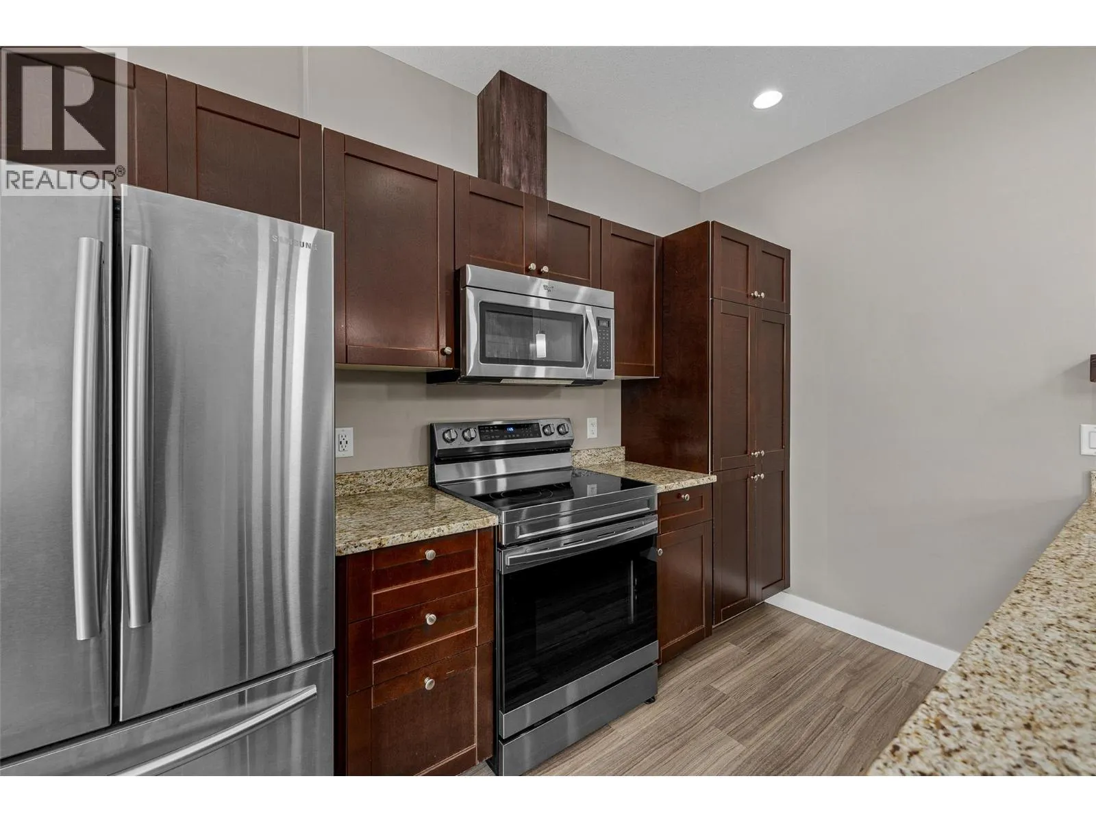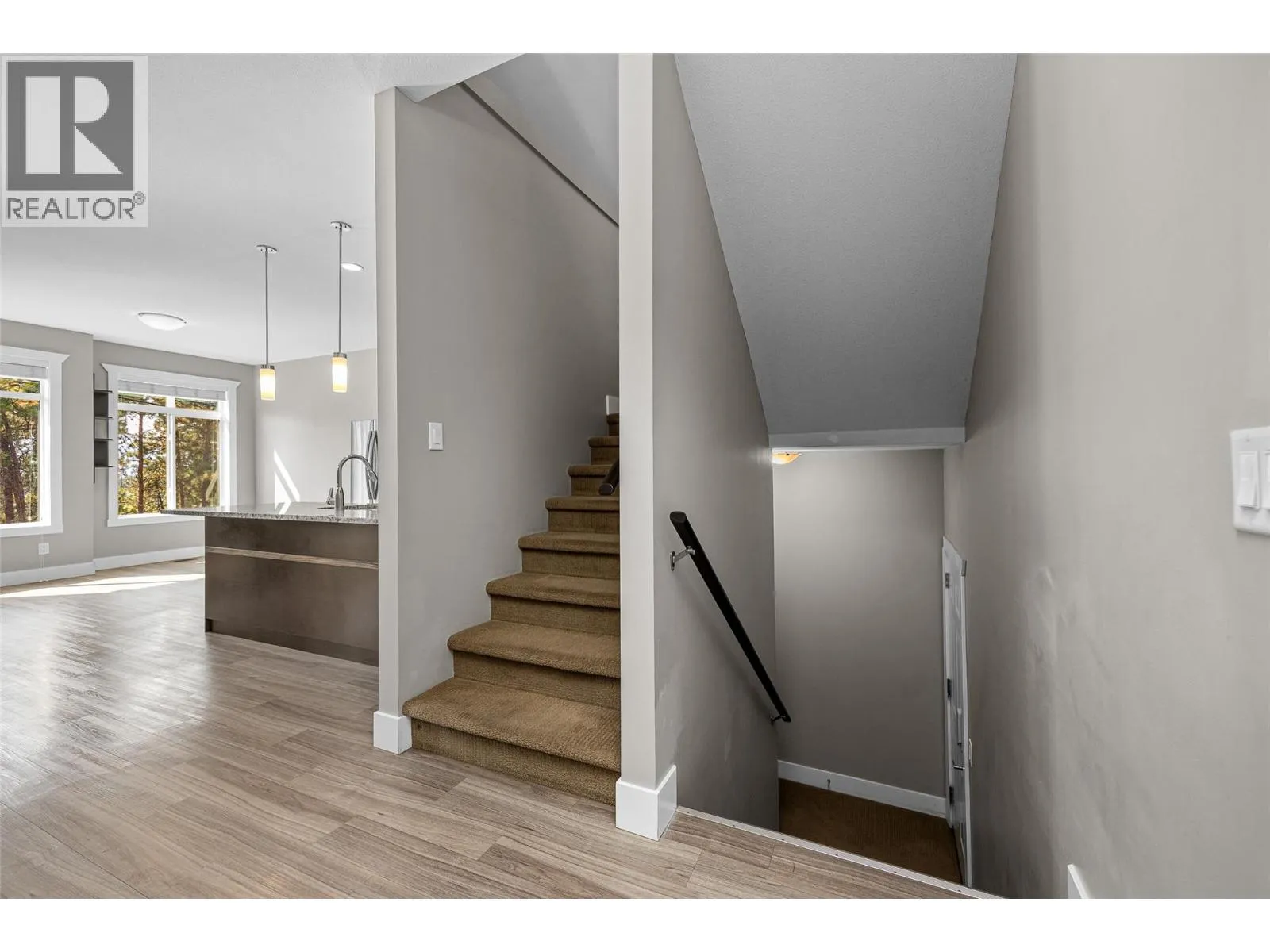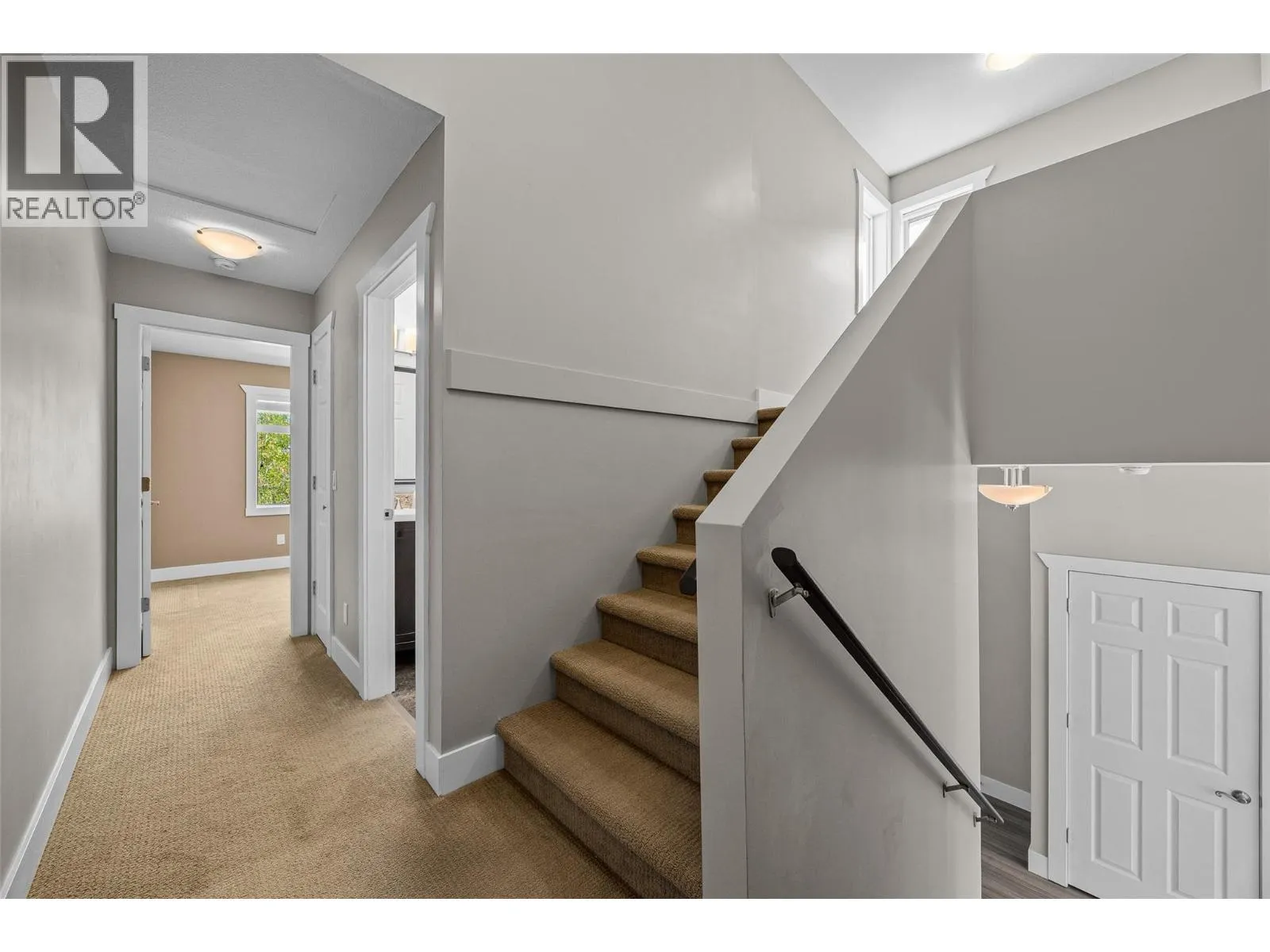 Quick Possession and Move In Ready! Located in the popular Talons community, this affordable 3-bedroom, 2-bathroom townhome (with a roughed-in 3rd bathroom downstairs!) offers a super functional 4-level split layout. Itâs the perfect mix of style, space, and convenience. The main floor is bright and open, featuring a modern kitchen with stainless steel appliances, granite countertops, a large island with a double sink, perfect for meal prep or hanging out with friends - and bonus pantry storage for extra organization. The living and dining areas flow right out to a covered patio where you can kick back and enjoy! Upstairs, youâll find a spacious bedroom and a full bathroom, while the top floor is dedicated to the primary suite, featuring plenty of closet space and a private 4-piece ensuite, offering great separation and privacy. The lower level features a spacious room that can be used as a third bedroom or flex space, with its own entrance to a covered patio and roughed-in plumbing for a third bathroom - perfect for families with kids, guests, in-laws, or a home office. Extras include central A/C, laundry room with sink, central vac, an over-length single garage, and room for two more cars in the driveway. Thereâs even a nice bit of green space- Pets welcome ( 2 dogs or 2 cats - any size) Just minutes from golf, beaches, wineries, restaurants, and shopping, this home makes it easy to enjoy everything the Okanagan has to offer - without breaking the bank. (id:27476)