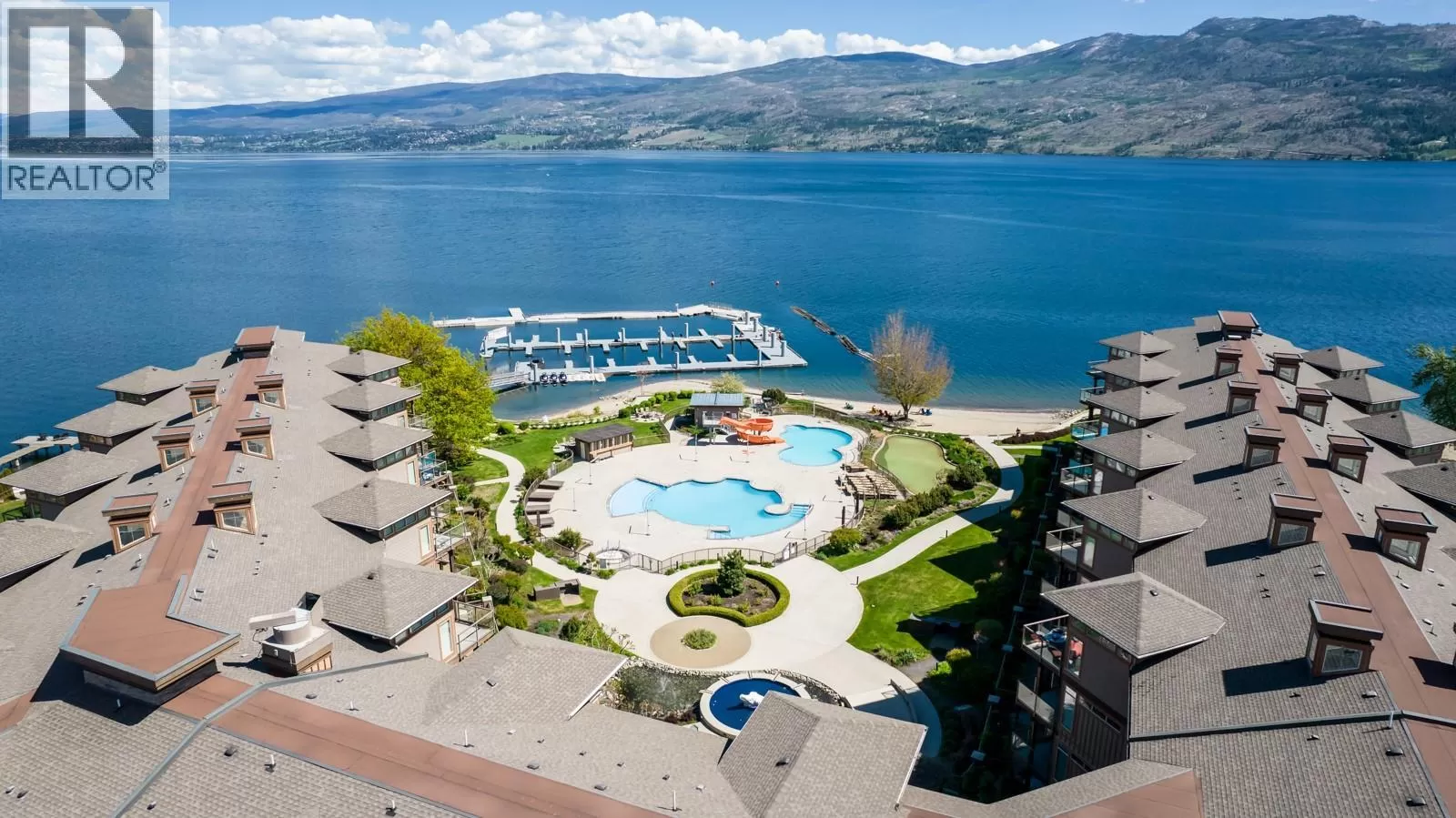 Indulge in the ultimate lifestyle with this extraordinary opportunity to claim your oasis at the finest Lakefront Resort in the Okanagan! Picture yourself waking up to a breathtaking sunrise as you sip your morning coffee on your expansive covered balcony, all while soaking in the stunning views of the LAKE. Marvel at the panoramic scenery, featuring horse pastures, Mt. Boucherie, and the picturesque Gellatly Bay. This rare floor plan offers a thoughtfully designed split bedroom layout, with a spacious primary bedroom featuring its own private deck. The second bedroom comes with a convenient cheater 5pc ensuite. The open concept living space encompasses a full kitchen, dining area, and living room, creating the perfect setting for entertainment. Step through French double doors that lead to a second covered deck, enhancing the indoor-outdoor living experience. The kitchen is a chef's delight, boasting granite countertops, maple cabinetry, and NEWER appliances. #304 participates in the professionally managed rental pool, offering you an opportunity to generate revenue and offset carrying costs! Enjoy access to world-class amenities such as pools, hot tubs, a sandy beach, marina, community park, spa, the acclaimed Landing Restaurant, wineries, lake activities, tennis, golf, and more. Situated on irreplaceable Lakefront acreage, this property includes a private beach adjacent to a historic nut farm. Your rare chance to own an upscale fully furnished condo in the Cove. (id:27476)