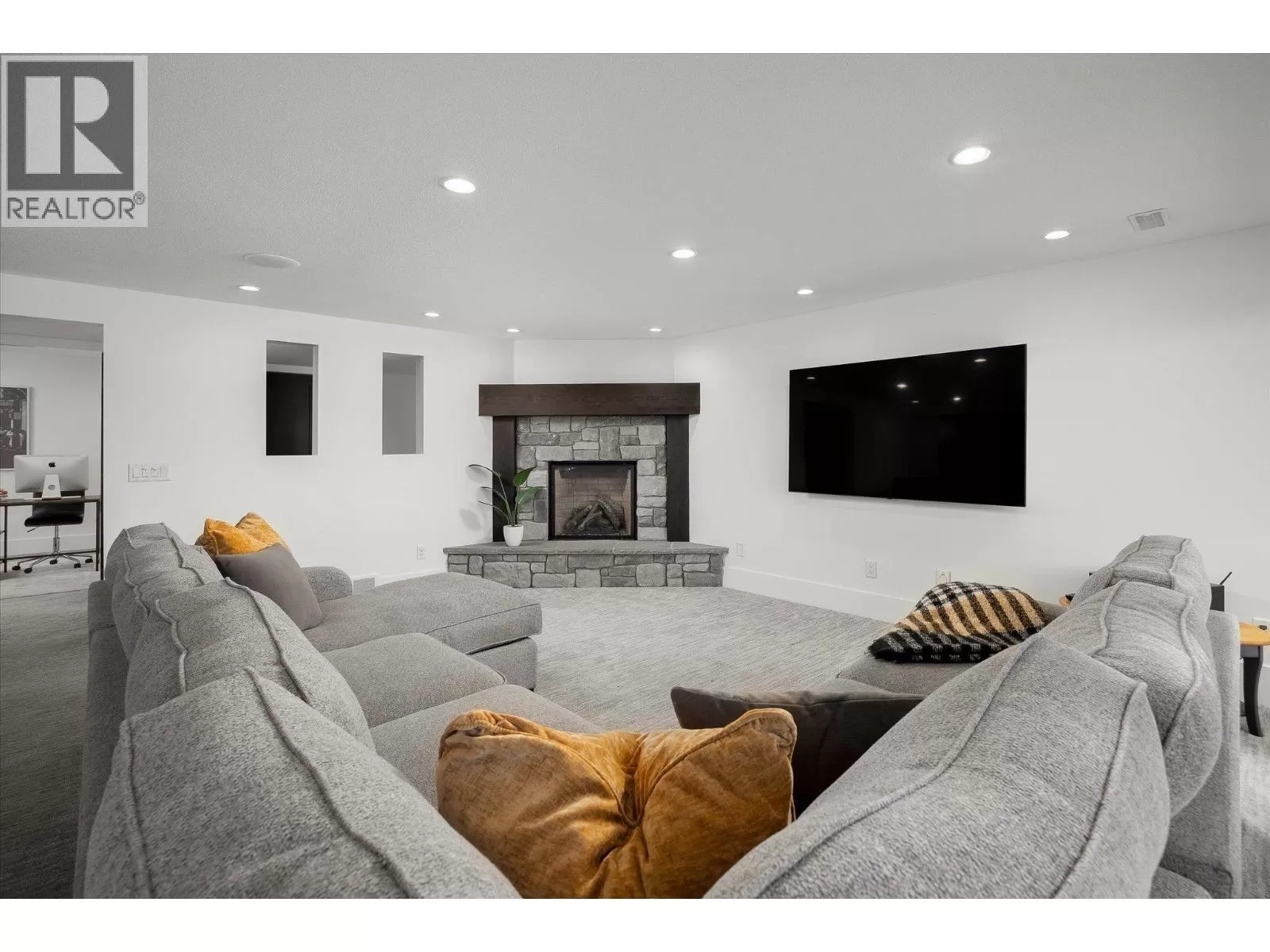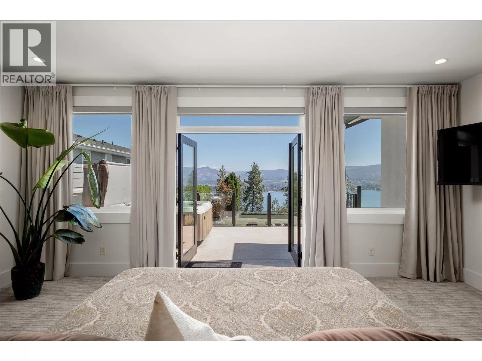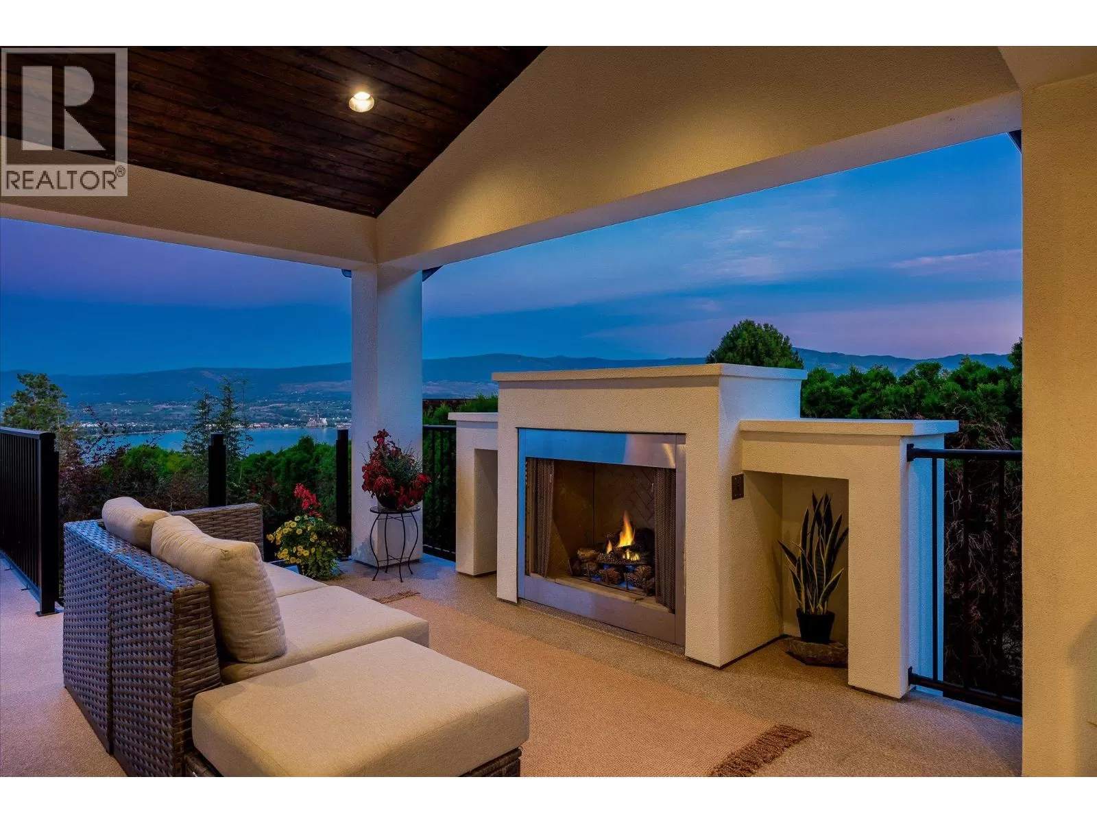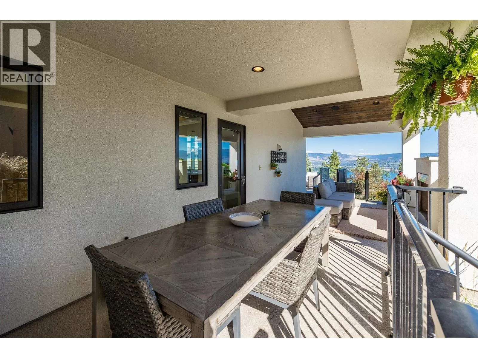 This modern home sits on a gated .75-acre private lot in a quiet, sought-after community in Lakeview Heights. Surrounded by mature, easy-to-maintain gardens and backing onto nature, the property offers stunning panoramic views of the lake, mountains, and city skyline. The expansive, well-established gardens create a tranquil setting perfect for relaxation and outdoor enjoyment. The home boasts numerous recent upgrades, including the addition of a 4th bedroom, a new furnace, a new high-efficiency heat pump, a twelve kilowatt solar panel system, EV charger and a Powerwall 3 energy storage battery. These energy-efficient features significantly reduce utility bills and contribute to a sustainable lifestyle. Inside, enjoy a warm and welcoming ambiance highlighted by an impressive fireplace and floor-to-ceiling windows framing picturesque lake, mountain, and city views. The gourmet kitchen features an oversized granite island, a butlerâs pantry, and immediate access to a covered deck ideal for al fresco dining or relaxing around a natural gas fireplace. Outdoor amenities are equally impressive, including a hot tub off the primary suite, a heated 14 foot by 36 foot pool, and a private outdoor cabana bar with fridge, sink, and surround sound. Located just minutes from downtown Kelowna, golf courses, schools, and city parks, this home is ideally situated for outdoor enthusiasts with nearby hiking and biking trails in Kalamoir Park. Short walks lead to wineries, shops, pubs, cafes, and the new community centre with recreational facilities - such as tennis, pickleball, basketball courts, and a playground. Additional features include a new fourth bedroom with lakeview, private entrance lower level one-bedroom Airbnb, ideal for generating extra income, and room for a potential carriage house, perfect for multi-generational living or additional rental opportunities. (id:27476)
