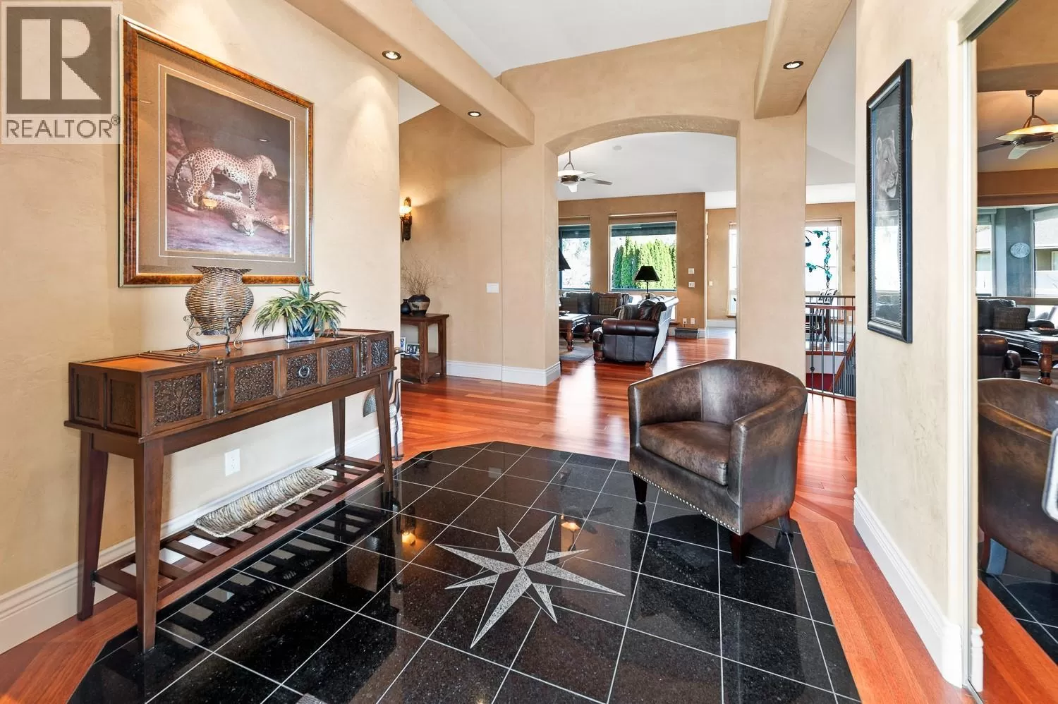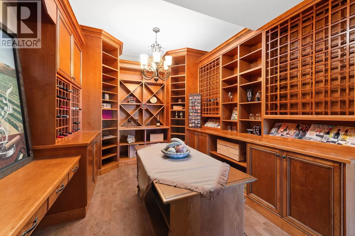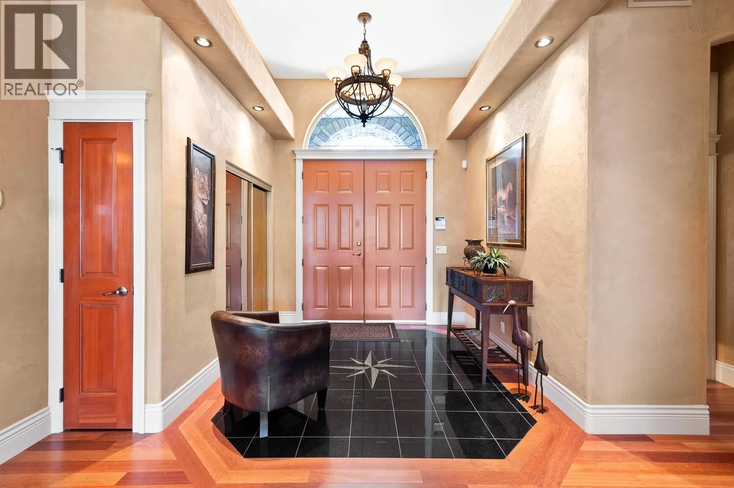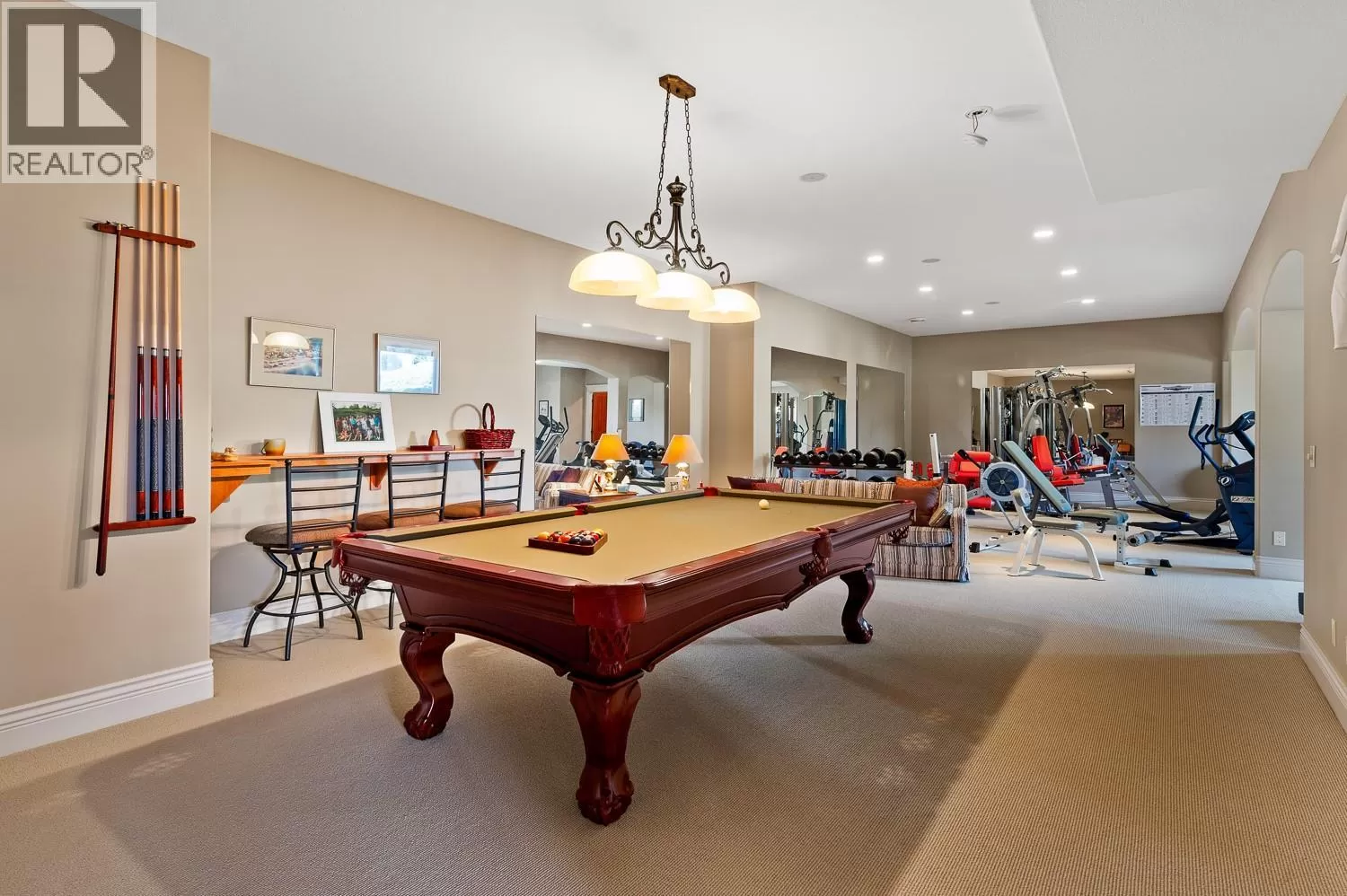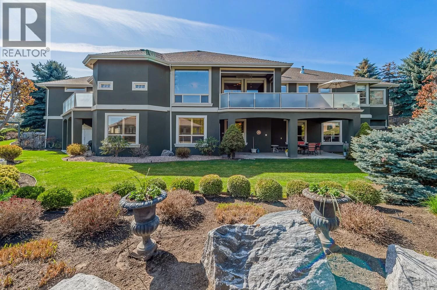 Discover unmatched luxury in this custom-built executive home by K West Builders, located within the exclusive gated community of Huntsfield Greenâjust minutes from downtown Kelowna. Situated on over 1/3 of an acre, this 5,389sqft. residence showcases exceptional craftsmanship, with vaulted ceilings, hardwood floors, American Clay finished walls, rich custom maple cabinetry, and so much more. Designed for both comfort and entertaining, it features a chefâs kitchen with double wall ovens, a gas cooktop, warming drawer plus a formal dining area and a mudroom complete with its own doggy bath. The primary suite is a spacious sanctuary offering serenity and elegance. On the lower level, enjoy 10-foot ceilings, a stunning custom wine room sure to impress any connoisseur, a fully equipped gym, a pool table area, and walkout access to beautiful outdoor living spaces. With retractable blinds and an overhead heater, the expansive upper deck offers year-round outdoor comfort while overlooking your beautifully landscaped yard. Additionally, youâll find three cozy fireplaces, a peekaboo lake view, and to complete the packageâa huge four-car garage with room for all your toys. This is unparalleled luxury with the ultimate in custom finishes, built exclusively for the original owner. (id:27476)