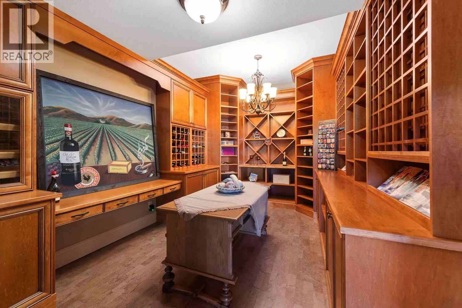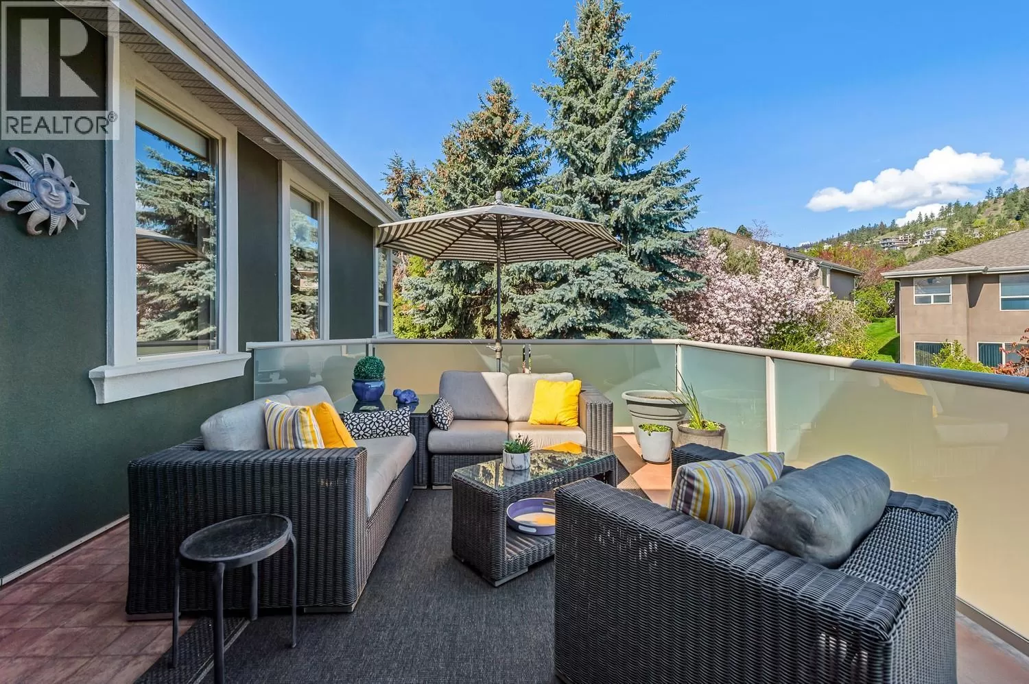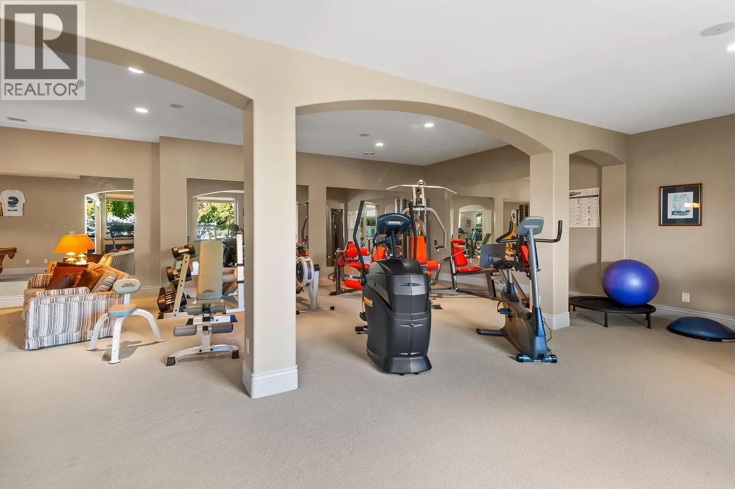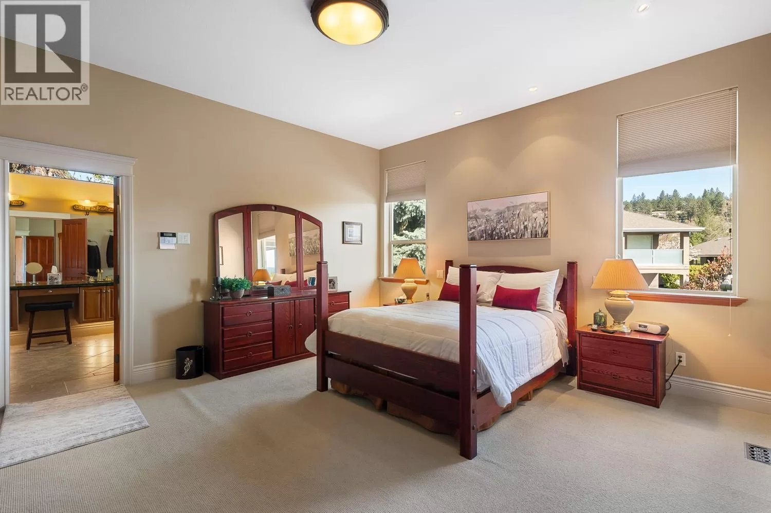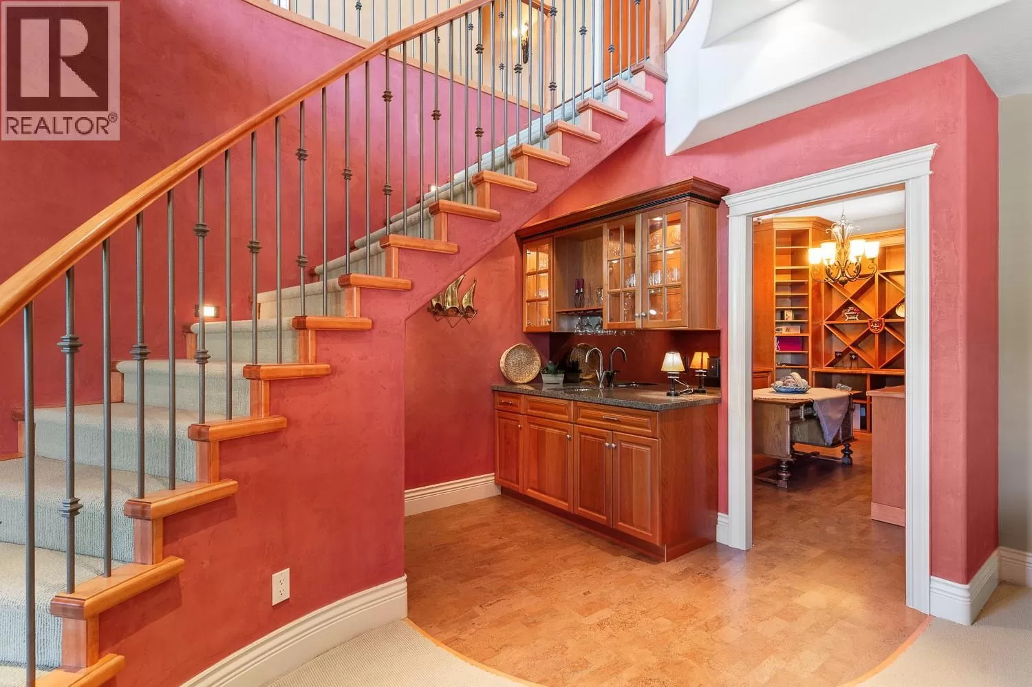 Discover unmatched luxury in this custom-built executive home by K West Builders, located within the exclusive gated community of Huntsfield Greenâjust minutes from downtown Kelowna. Situated on over 1/3 of an acre, this 5,389sqft. residence showcases exceptional craftsmanship, with vaulted ceilings, hardwood floors, American Clay finished walls, rich custom maple cabinetry, and so much more. Designed for both comfort and entertaining, it features a chefâs kitchen with double wall ovens, a gas cooktop, warming drawer plus a formal dining area and a mudroom complete with its own doggy bath. The primary suite is a spacious sanctuary offering serenity and elegance. On the lower level, enjoy 10-foot ceilings, a stunning custom wine room sure to impress any connoisseur, a fully equipped gym, a pool table area, and walkout access to beautiful outdoor living spaces. With retractable blinds and an overhead heater, the expansive upper deck offers year-round outdoor comfort while overlooking your beautifully landscaped yard. Additionally, youâll find three cozy fireplaces, a peekaboo lake view, and to complete the packageâa huge four-car garage with room for all your toys. This is unparalleled luxury with the ultimate in custom finishes, built exclusively for the original owner. (id:27476)