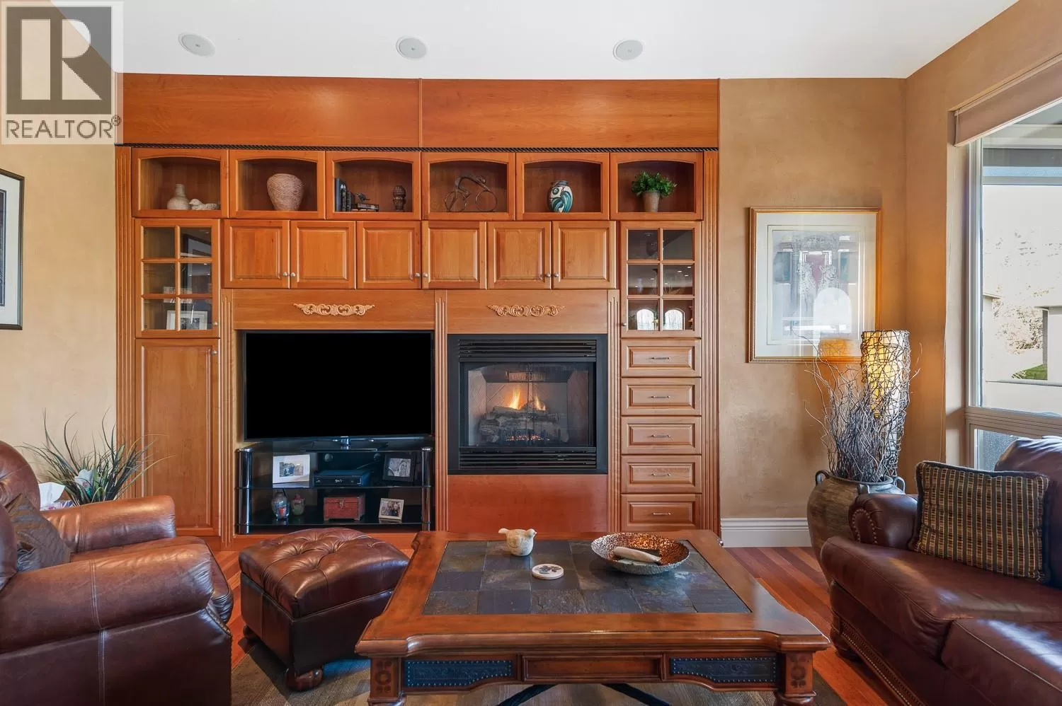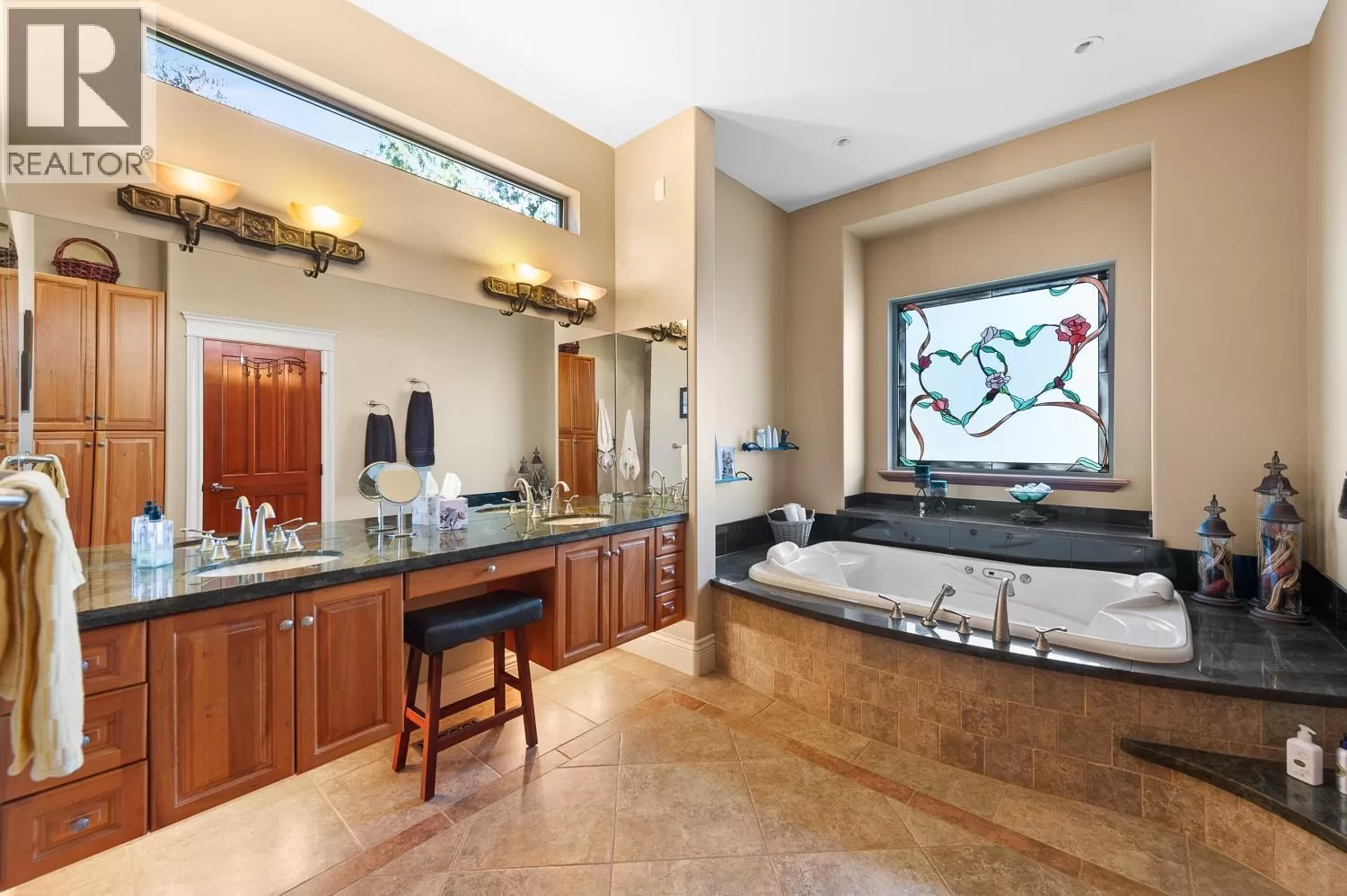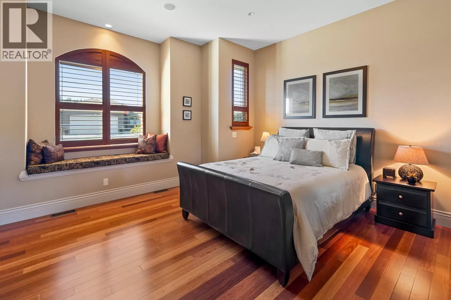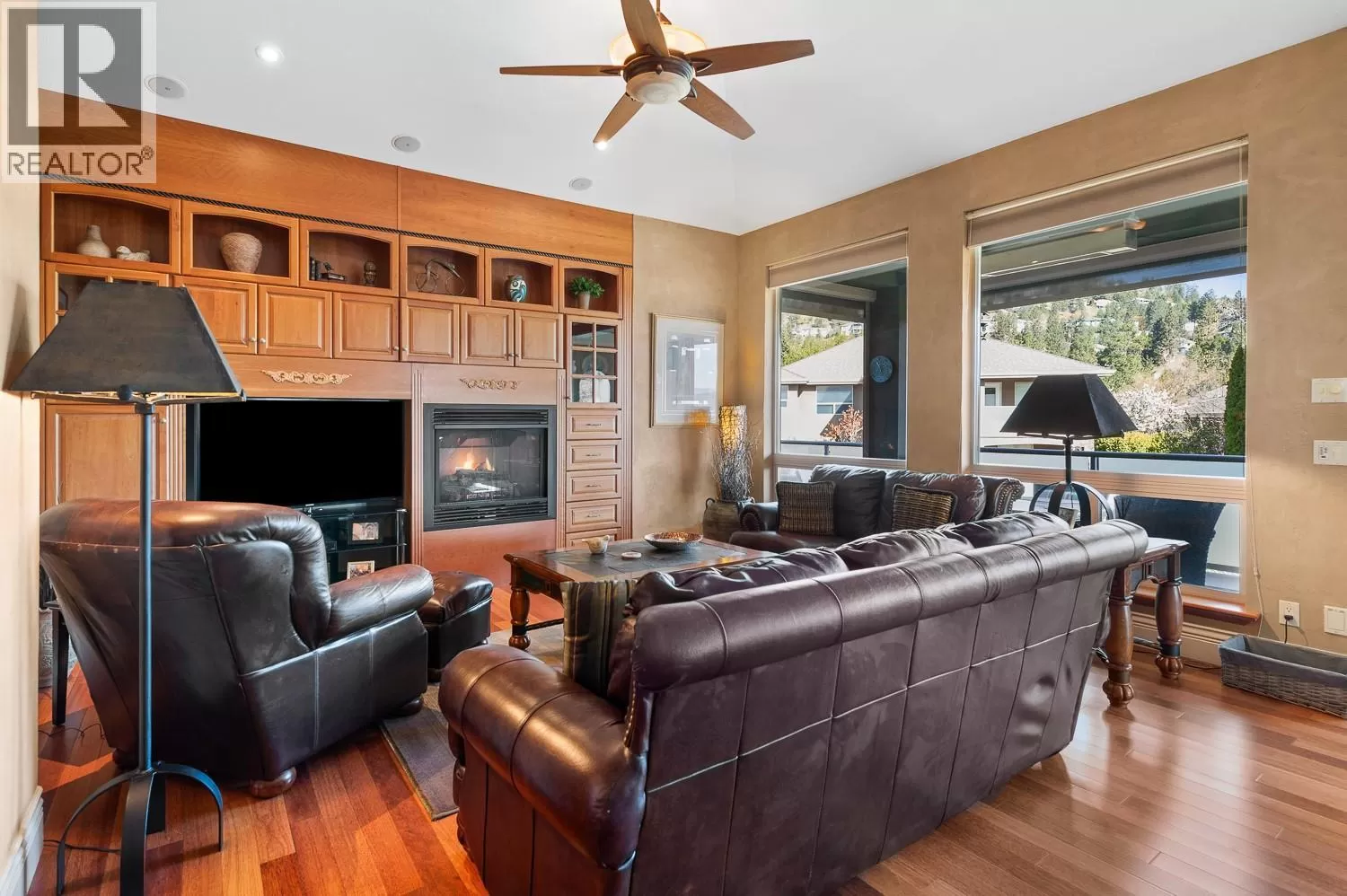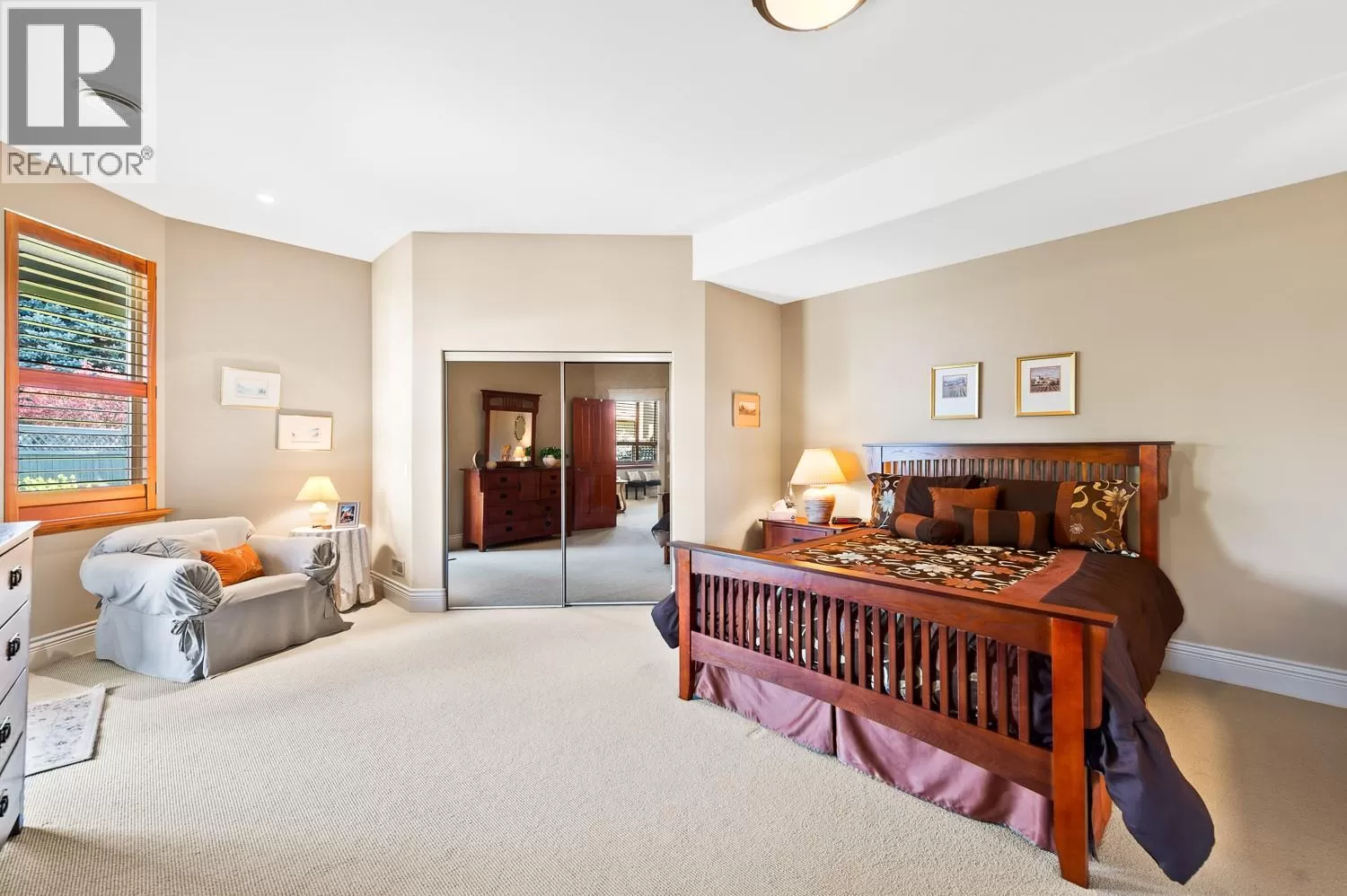 Discover unmatched luxury in this custom-built executive home by K West Builders, located within the exclusive gated community of Huntsfield Greenâjust minutes from downtown Kelowna. Situated on over 1/3 of an acre, this 5,389sqft. residence showcases exceptional craftsmanship, with vaulted ceilings, hardwood floors, American Clay finished walls, rich custom maple cabinetry, and so much more. Designed for both comfort and entertaining, it features a chefâs kitchen with double wall ovens, a gas cooktop, warming drawer plus a formal dining area and a mudroom complete with its own doggy bath. The primary suite is a spacious sanctuary offering serenity and elegance. On the lower level, enjoy 10-foot ceilings, a stunning custom wine room sure to impress any connoisseur, a fully equipped gym, a pool table area, and walkout access to beautiful outdoor living spaces. With retractable blinds and an overhead heater, the expansive upper deck offers year-round outdoor comfort while overlooking your beautifully landscaped yard. Additionally, youâll find three cozy fireplaces, a peekaboo lake view, and to complete the packageâa huge four-car garage with room for all your toys. This is unparalleled luxury with the ultimate in custom finishes, built exclusively for the original owner. (id:27476)
