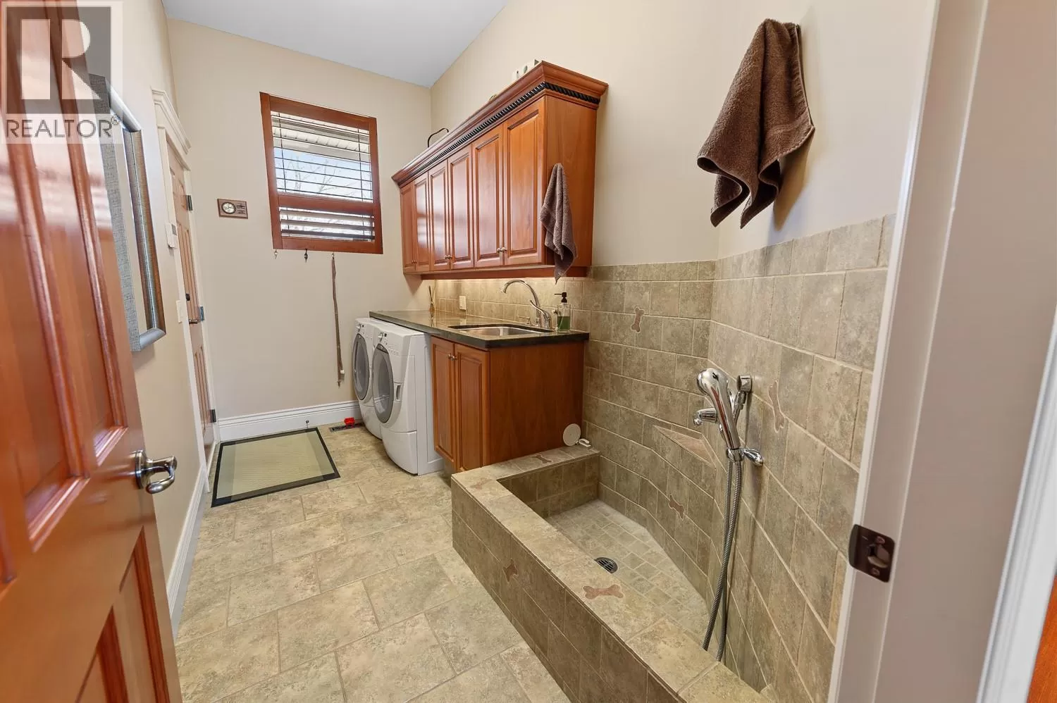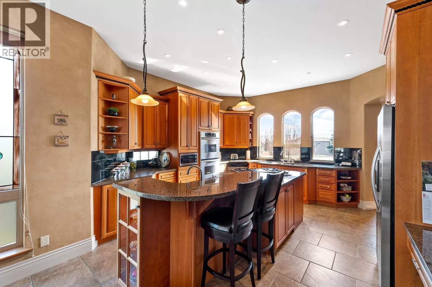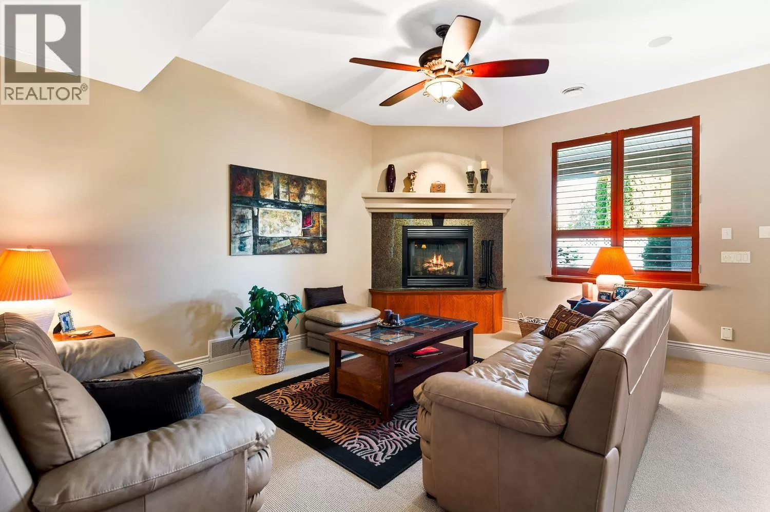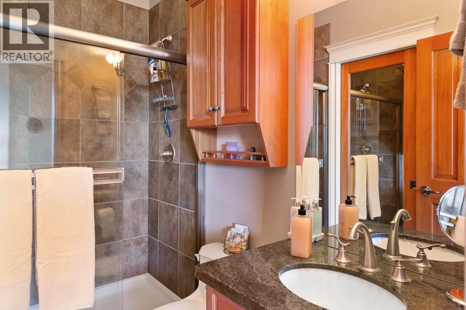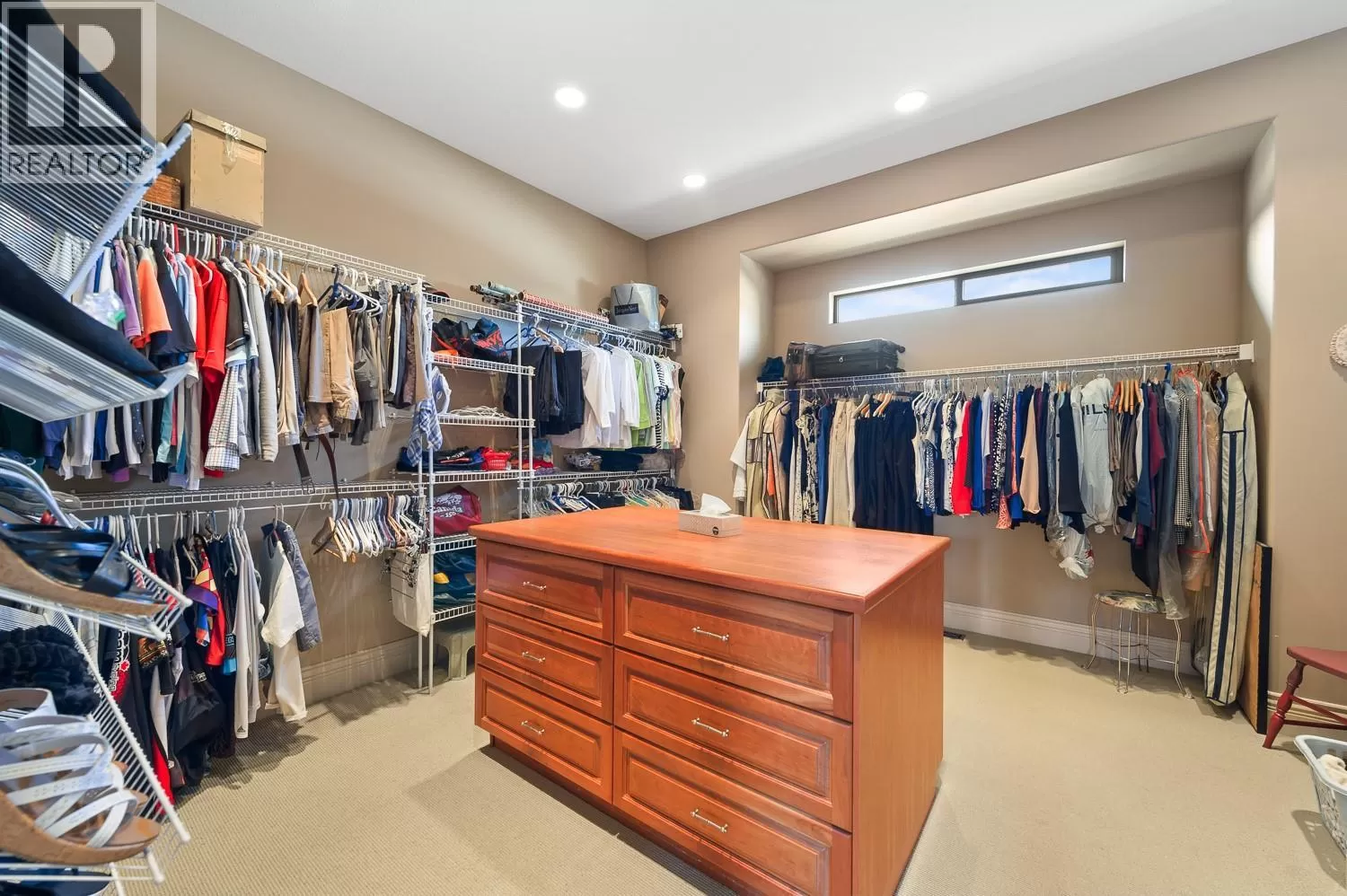 Discover unmatched luxury in this custom-built executive home by K West Builders, located within the exclusive gated community of Huntsfield Greenâjust minutes from downtown Kelowna. Situated on over 1/3 of an acre, this 5,389sqft. residence showcases exceptional craftsmanship, with vaulted ceilings, hardwood floors, American Clay finished walls, rich custom maple cabinetry, and so much more. Designed for both comfort and entertaining, it features a chefâs kitchen with double wall ovens, a gas cooktop, warming drawer plus a formal dining area and a mudroom complete with its own doggy bath. The primary suite is a spacious sanctuary offering serenity and elegance. On the lower level, enjoy 10-foot ceilings, a stunning custom wine room sure to impress any connoisseur, a fully equipped gym, a pool table area, and walkout access to beautiful outdoor living spaces. With retractable blinds and an overhead heater, the expansive upper deck offers year-round outdoor comfort while overlooking your beautifully landscaped yard. Additionally, youâll find three cozy fireplaces, a peekaboo lake view, and to complete the packageâa huge four-car garage with room for all your toys. This is unparalleled luxury with the ultimate in custom finishes, built exclusively for the original owner. (id:27476)