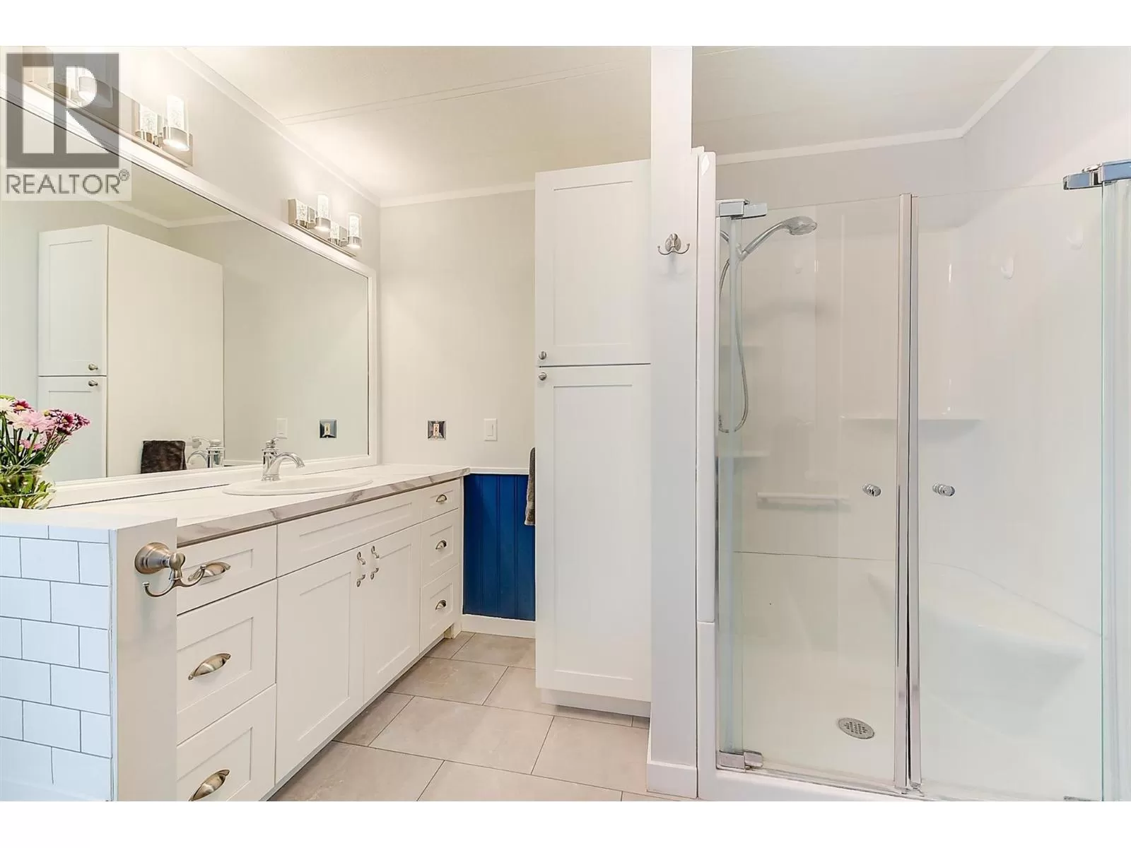 Enjoy that ""New Home Feeling"" when you walk into this fully renovated 3 bedroom home at McDougall Creek Estates â nothing to do but move in and enjoy! Beautifully updated throughout in a contemporary colour palette â kitchen has white shaker cabinets with soft-close, subway tile, and newer appliances including gas stove. AC and furnace replaced in 2021, hot water tank in 2023, lovely electric fireplace, vinyl windows, premium vinyl plank/tile flooring throughout, updated bathroom vanity and glass shower. Covered deck, storage shed and low maintenance yard with car port and ample parking. McDougall Creek Estates is a sought after 45+ community. Pad fees include well water and community septic system. Minutes to parks, restaurants, shopping, and all amenities as well as hiking/biking trails, cross-country skiing, snowshoeing and so much more. Schedule your showing before itâs gone! (id:27476)