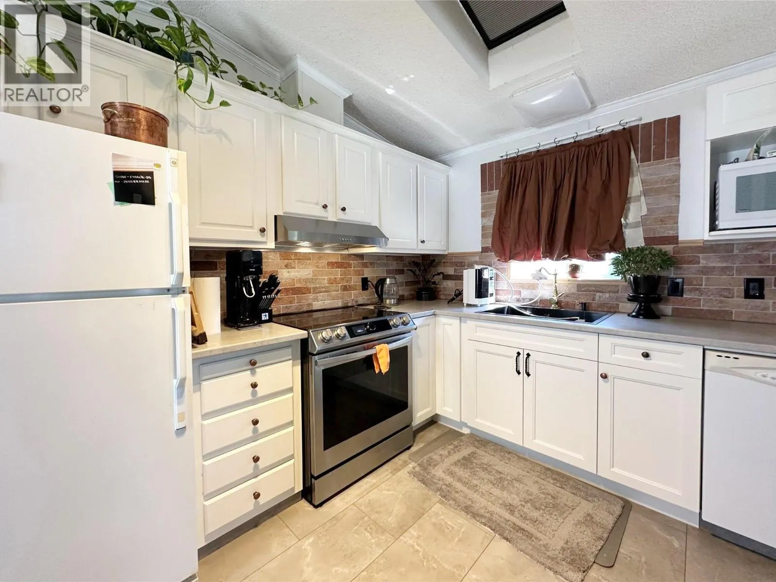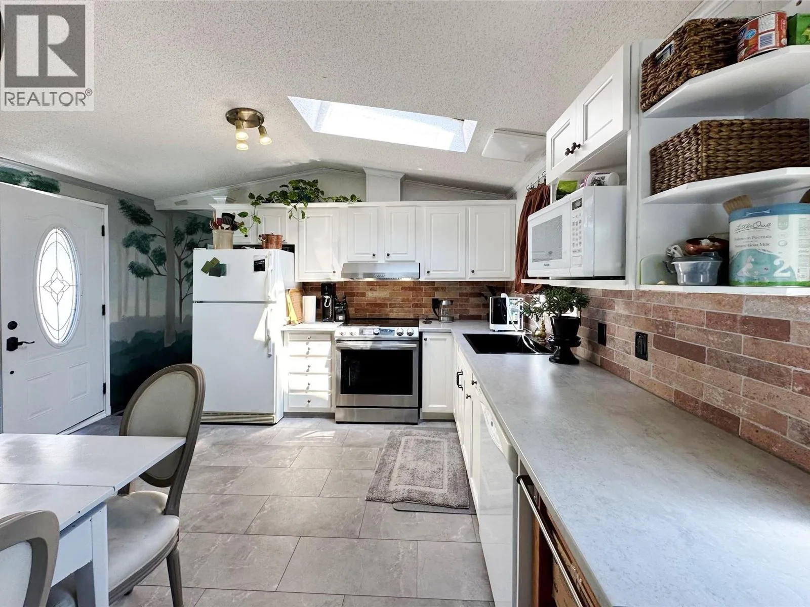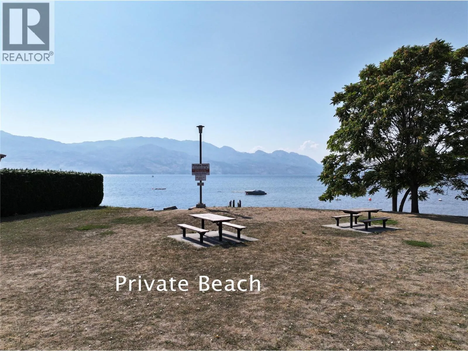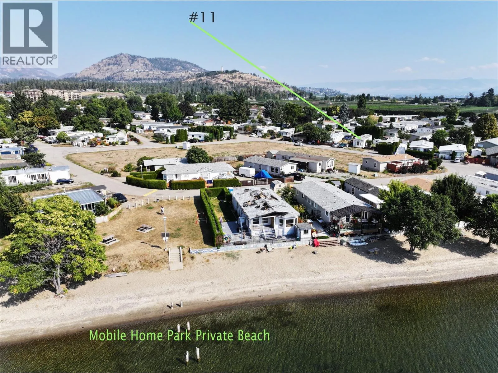 NEW ROOF â October 2025 ($5,439 value)! Plus a brand-new John Wood 50 USG electric hot water tank ($1,766 value) recently installed â giving you peace of mind for years to come. Located just steps from the parkâs private sandy beach and directly across from open green space, this well-designed 2-bedroom home offers a bright, spacious layout on one of the larger pads along the beautiful shoreline of Okanagan Lake. Enjoy a relaxed, quiet, lakeside lifestyle with convenient access to wineries, hiking trails, shops, restaurants, schools, public transit, and golf courses â everything the Okanagan has to offer is right at your doorstep. Youâll appreciate the friendly, welcoming community and the pet-friendly policy (up to 2 indoor cats, with park approval). Financing is available exclusively through Peace Hill Trust (recommended credit score approx. 730 for park approval). Pad rent $725/month includes water, sewer, and garbage services. (id:27476)