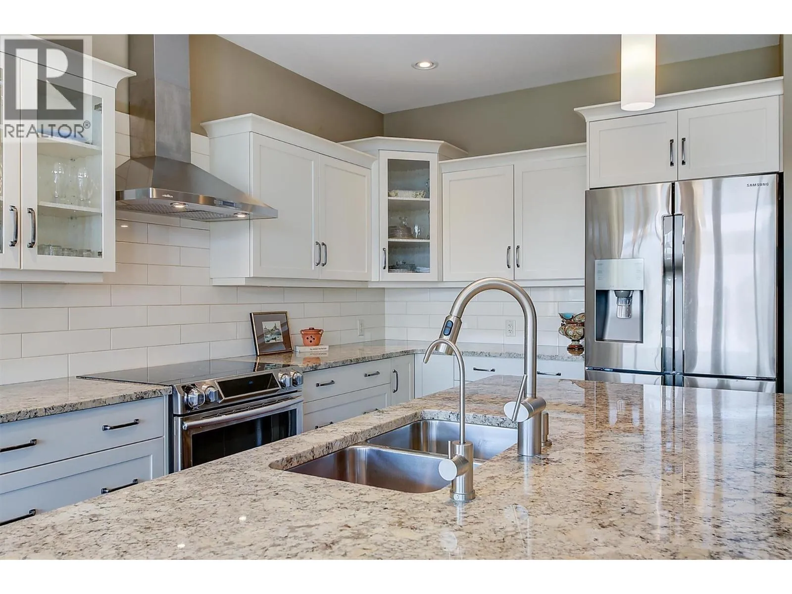 ARGUABLY ONE OF THE BEST LOCATIONS IN SONOMA PINES. YOU CAN HAVE IT ALL â spectacular lakeview and privacy, while experiencing the comforts of a meticulously manicured and secure gated community. Enjoy a peaceful morning coffee or long Okanagan evening as you overlook a huge green space from your deckâ¦perfect! Step inside to this spacious 3 bedroom walkout rancher offering comfortable main floor living including a luxurious primary bedroom with lakeview, 4 piece ensuite and walk in closet, a second bedroom or office, laundry, contemporary white kitchen cabinets with large island, separate pantry, and stone countertops, and the perfect living and dining area to take in your fantastic views. Premium engineered hardwood and tile and expansive ceiling heights complement the high end finishing throughout. The lower level offers a terrific and cozy space for guests â they may not want to leave! There is a large bedroom, full bathroom, a huge rec room allowing for many options to entertain, a wet bar with beverage fridge, additional flex space for a gym or office, media room and plenty of storage. Sonoma Pines is truly a first class community, close to shopping, restaurants, wineries, beaches, hiking trails, and of course golf. The amenity center is well equipped with a gym, billiard room, library and can host larger gatherings. Large double garage and RV parking available on site. No PTT. Donât delay, book your showing before this gem is gone! (id:27476)