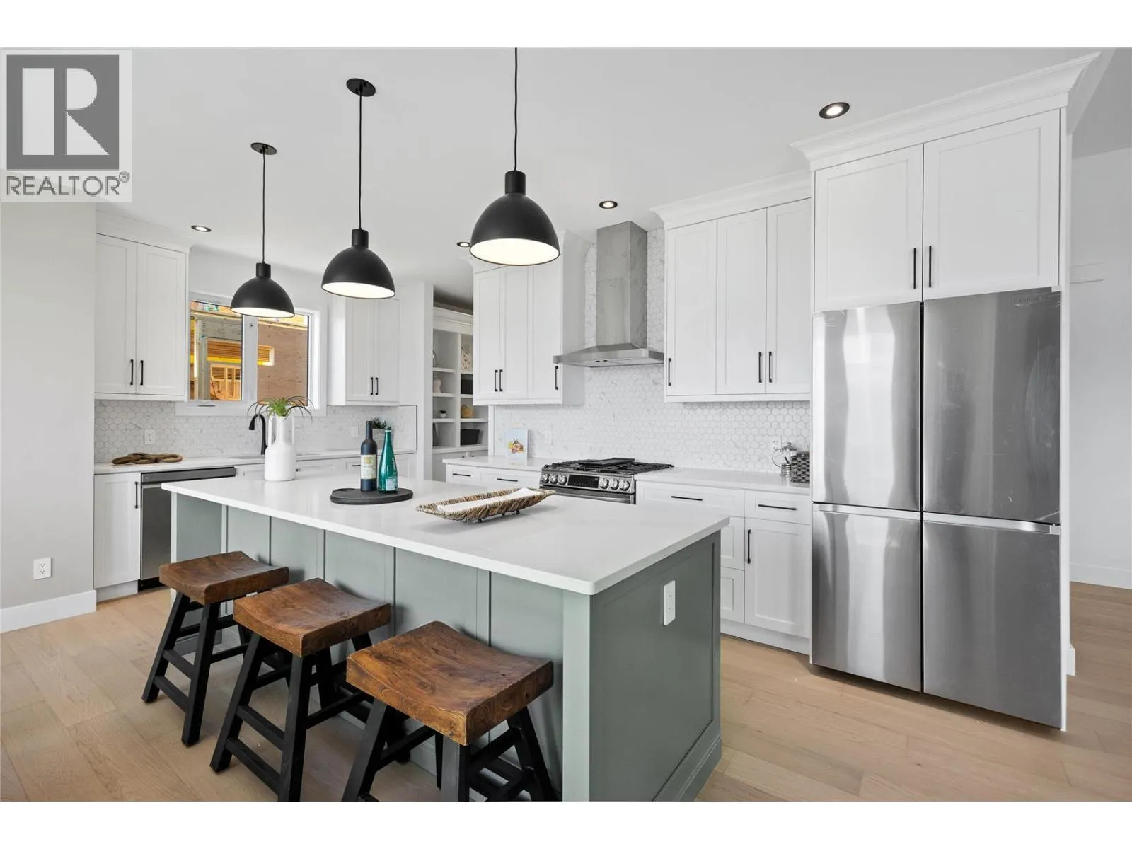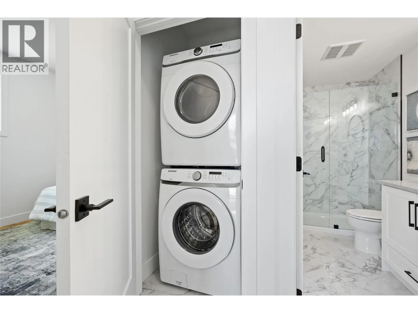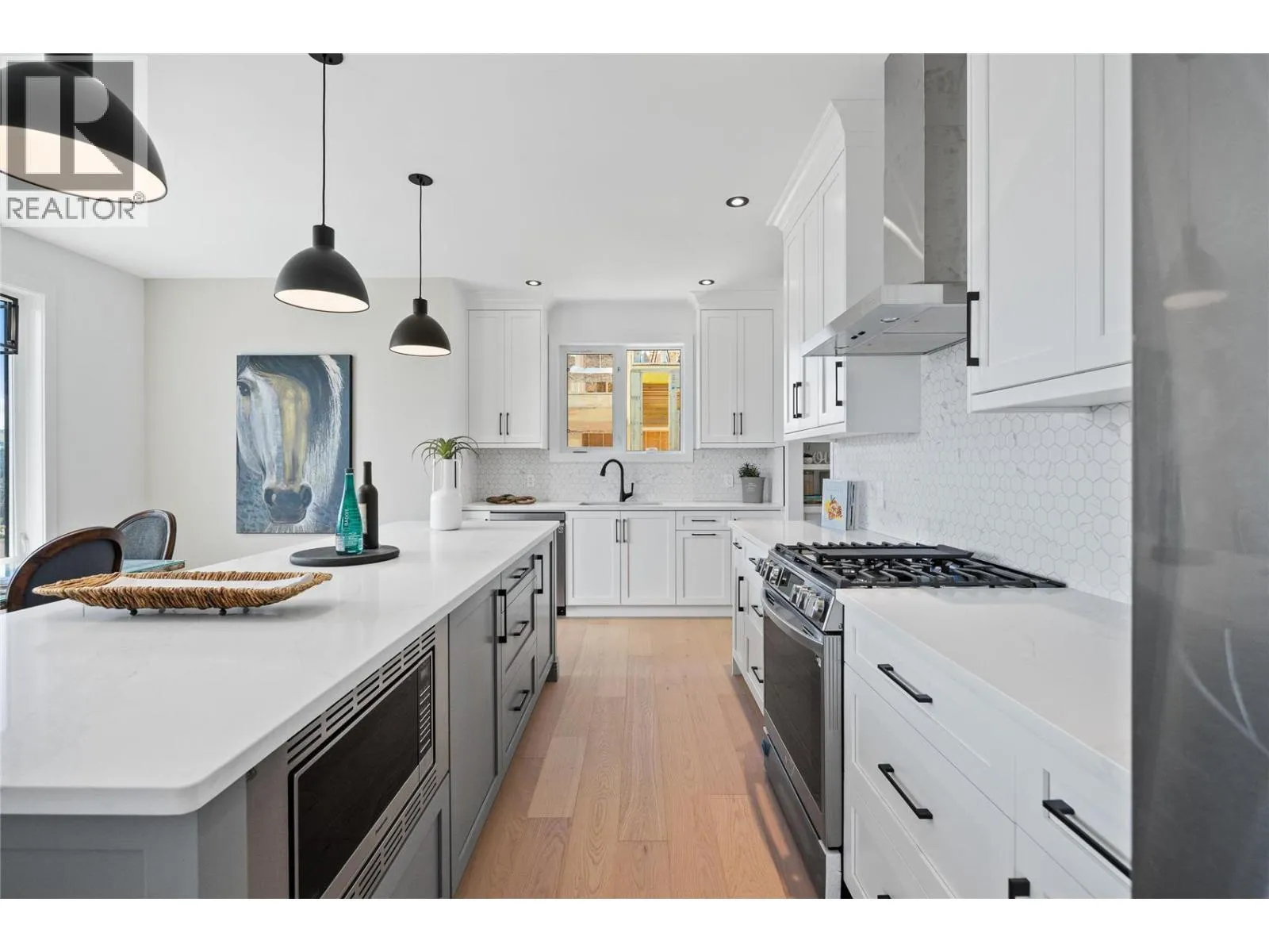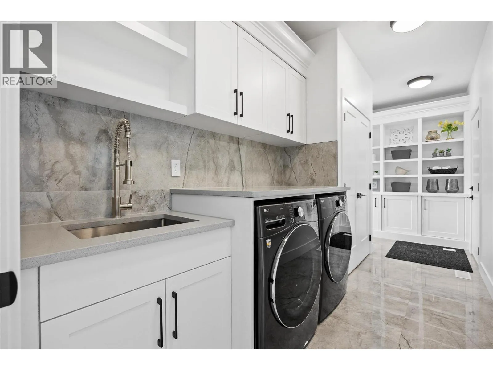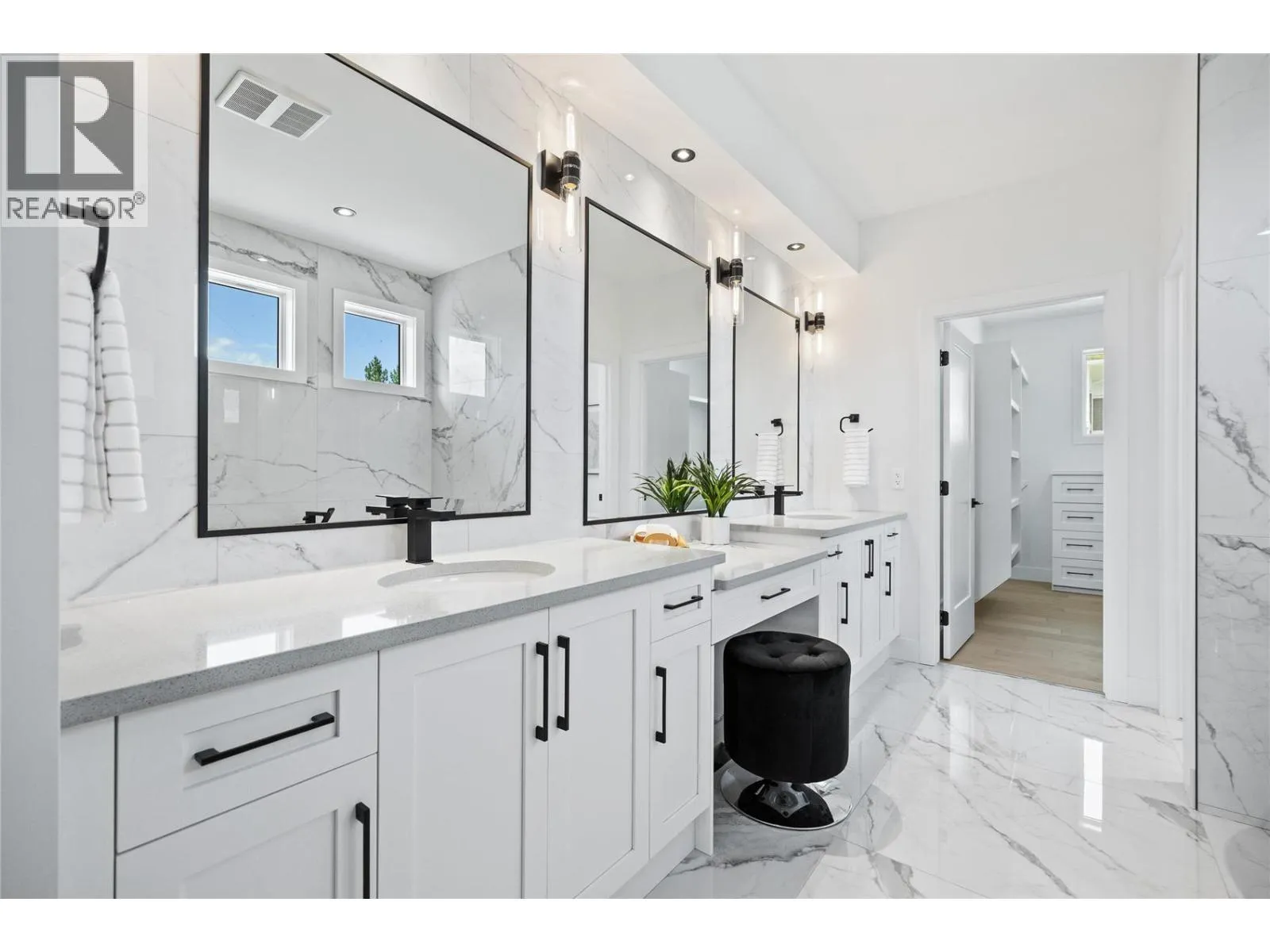 Stunning luxury walkout rancher with unobstructed lake views and a 2-bedroom executive legal suite! Beautifully landscaped with a tiered side yard, retaining walls, and a stamped concrete patio. This incredible home is designed to capture the captivating views and showcases superior finishes throughout. The main level features an open, airy living area with an inviting fireplace with a mantel, custom built-ins, and oversized sliding glass doors that extend seamlessly to the deck. The gourmet kitchen boasts white cabinetry, quartz countertops, and high-end appliances, while gorgeous wide-plank engineered hardwood flooring adds warmth and elegance. The spacious primary suite offers breathtaking views, a walk-in closet, and a spa-inspired 6-piece en suite. A second bedroom, full bath, laundry, and mudroom complete the main floor. The lower level provides an additional bedroom, full bath, and family room for the main home, along with a luxurious 2-bedroom legal suite. The suite includes a modern kitchen, spacious living area, covered patio, and stunning lake views. Located in the new Smith Creek West subdivision, this property combines spectacular vistas with easy access to all the amenities of West Kelowna. (id:27476)