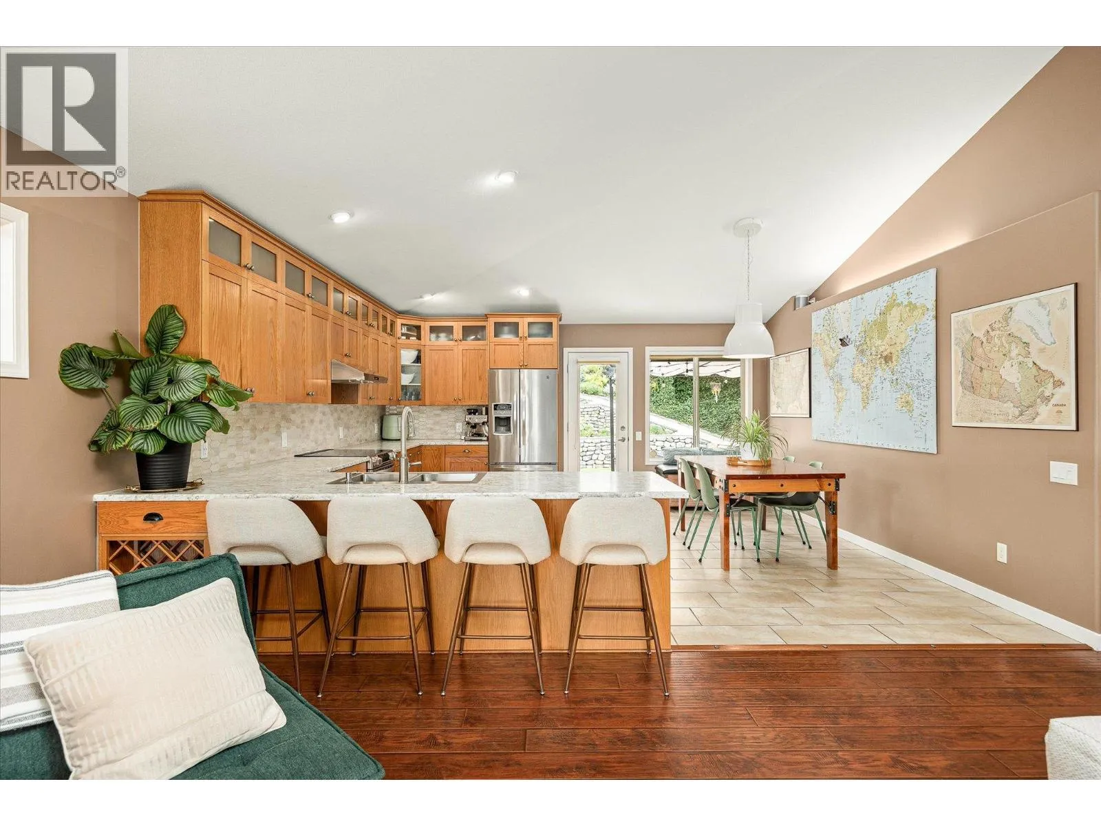 Welcome to this spacious 4 bedroom, 3 bath family home tucked away on a quiet cul-de-sac in a central yet peaceful neighborhood. Just MINUTES from schools, beaches, golf, West Kelowna grocery shopping, and only 12 minutes to Downtown Kelowna, this location blends convenience with serenity. Designed with families in mind, this home features oversized rooms throughoutâincluding a massive kitchen and dining area created by a custom 6 foot extension to the original floor plan. The kitchen offers rare space and functionality, while the large primary suite, generous bedrooms, and expansive rec room provide room for the entire family. A practical mudroom, well-planned laundry area, and abundant storage make day-to-day living easy. Outdoors, enjoy a private sun-filled backyard with no direct neighbors behind, perfect for kids to play or for quiet relaxation. Garden boxes, peach and apple trees, and raspberry and blackberry bushes add charm and seasonal harvests to your family life. Ample RV/boat parking completes the package. If youâre looking for a functional, family-friendly home with space to grow, storage that makes sense, and a location that keeps you close to everything while still offering peace and privacyâthis is it. (id:27476)